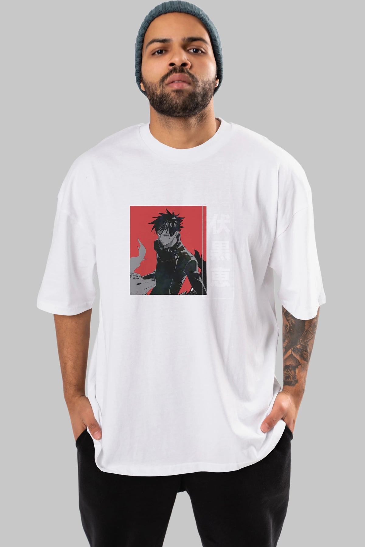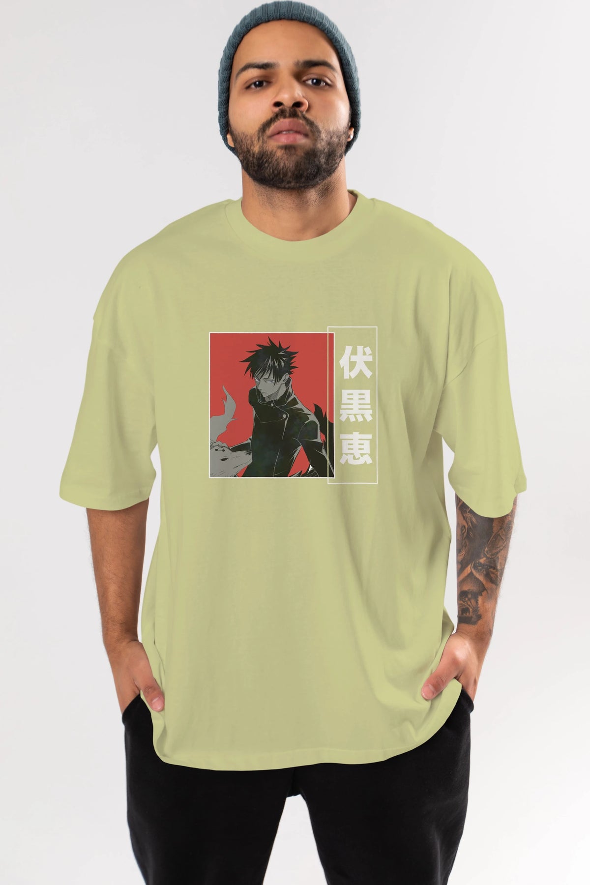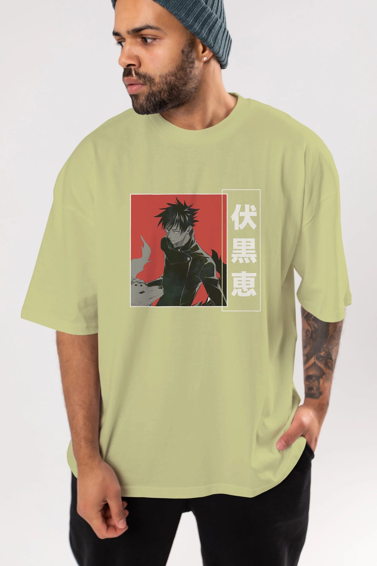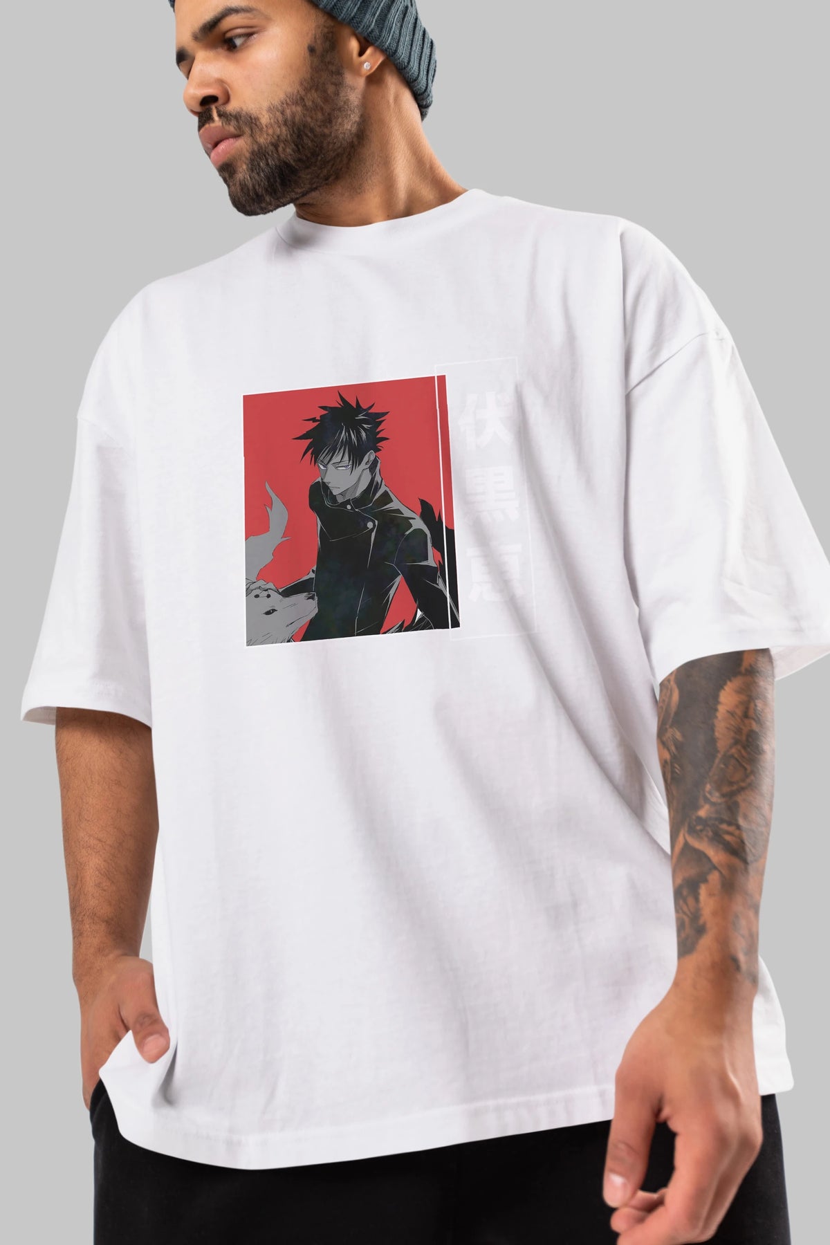 Megumi Fushiguro Anime Ön Baskılı Oversize t-shirt %100 pamuk Erkek Kadın Unisex