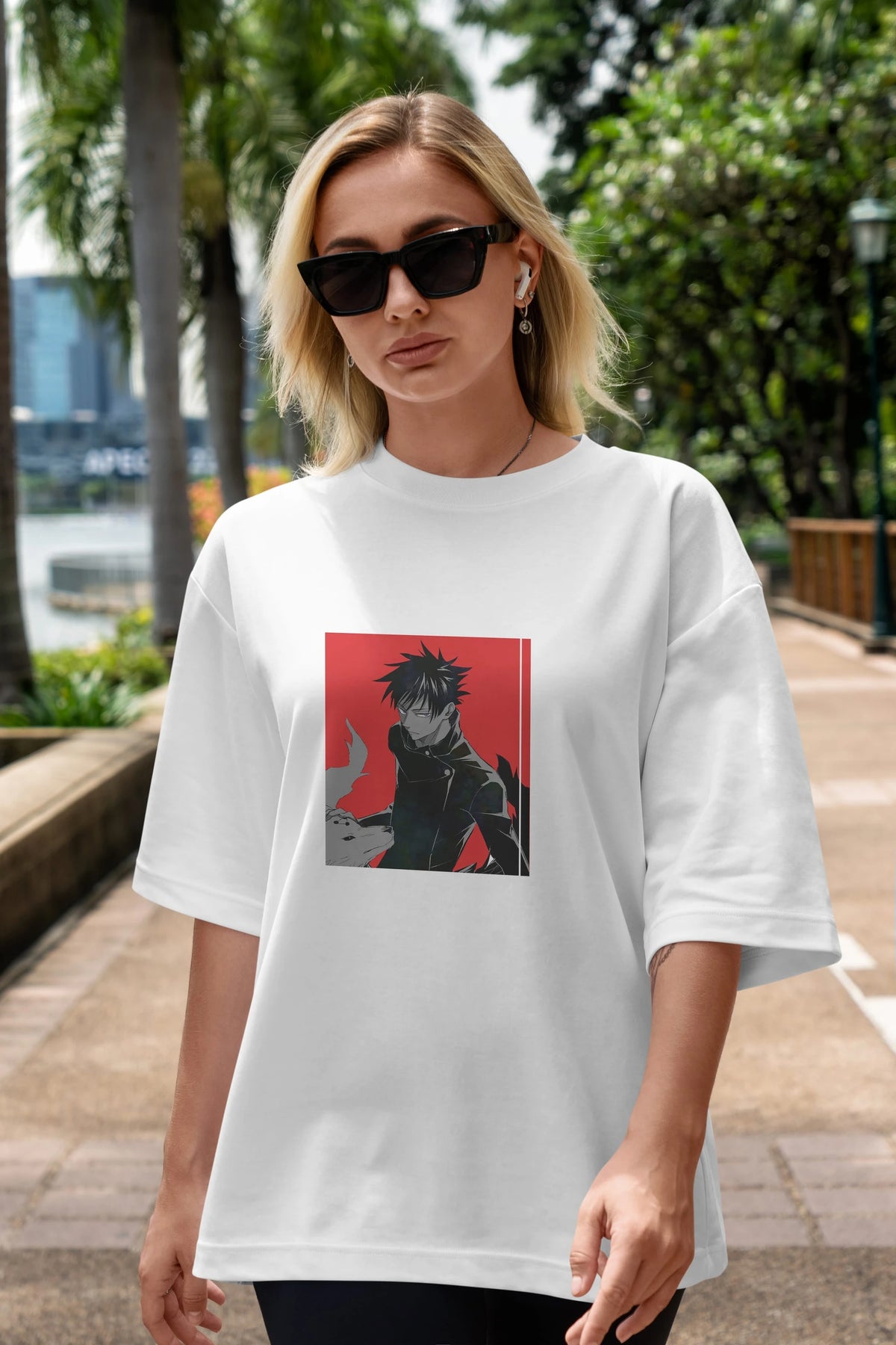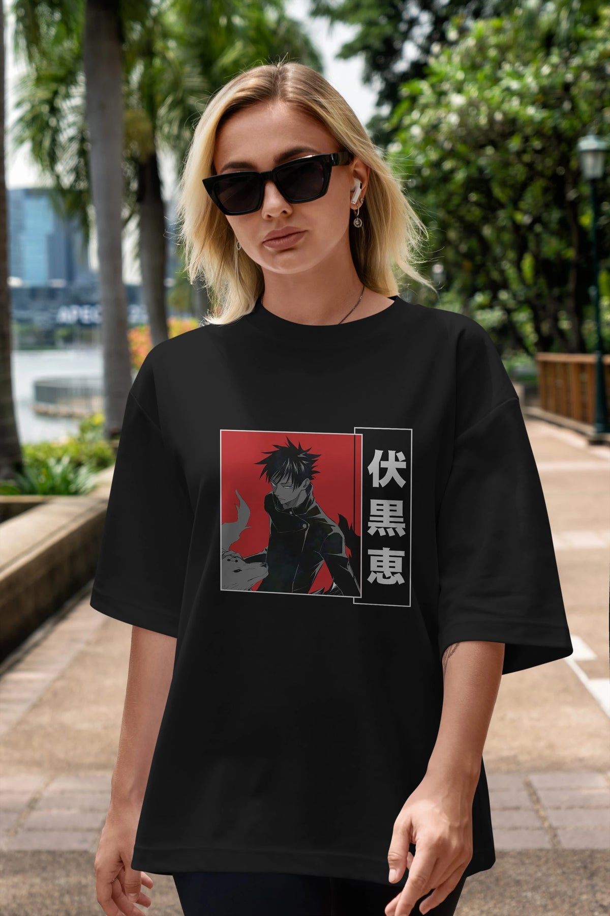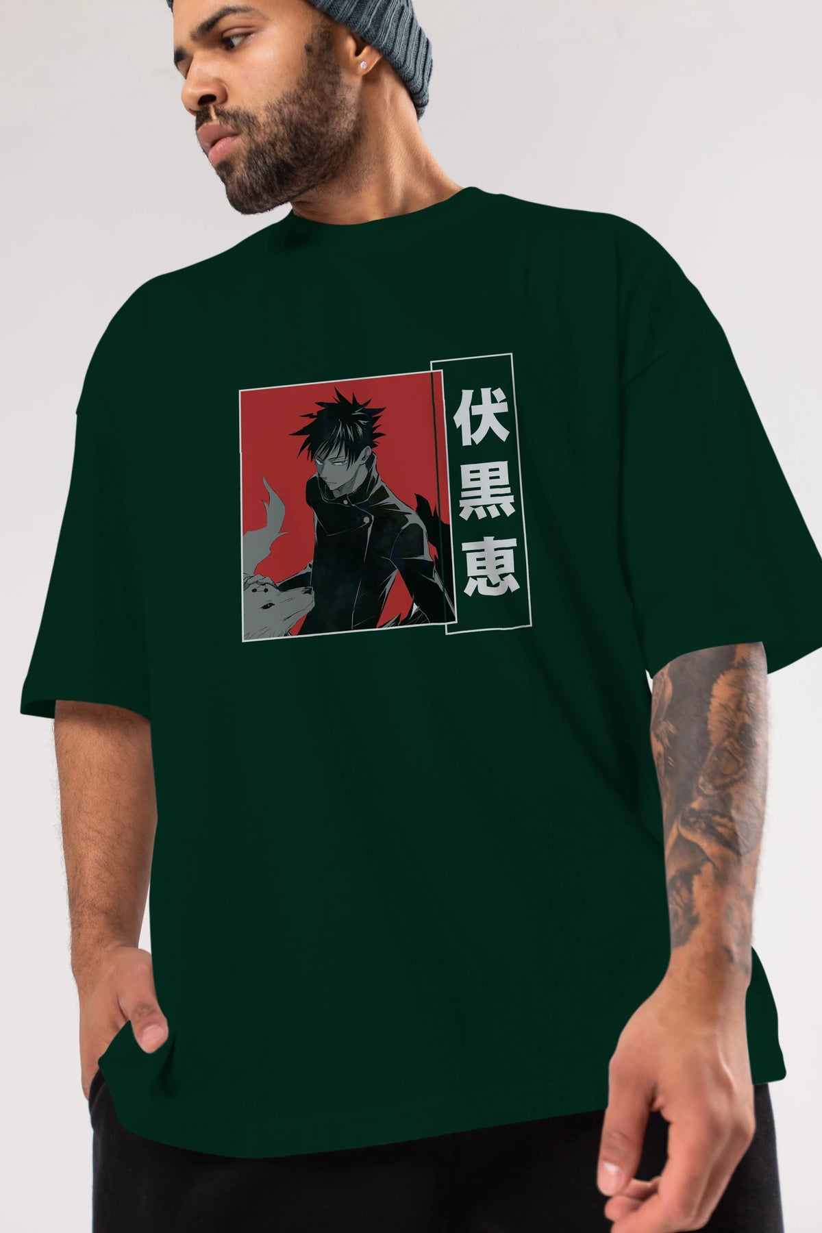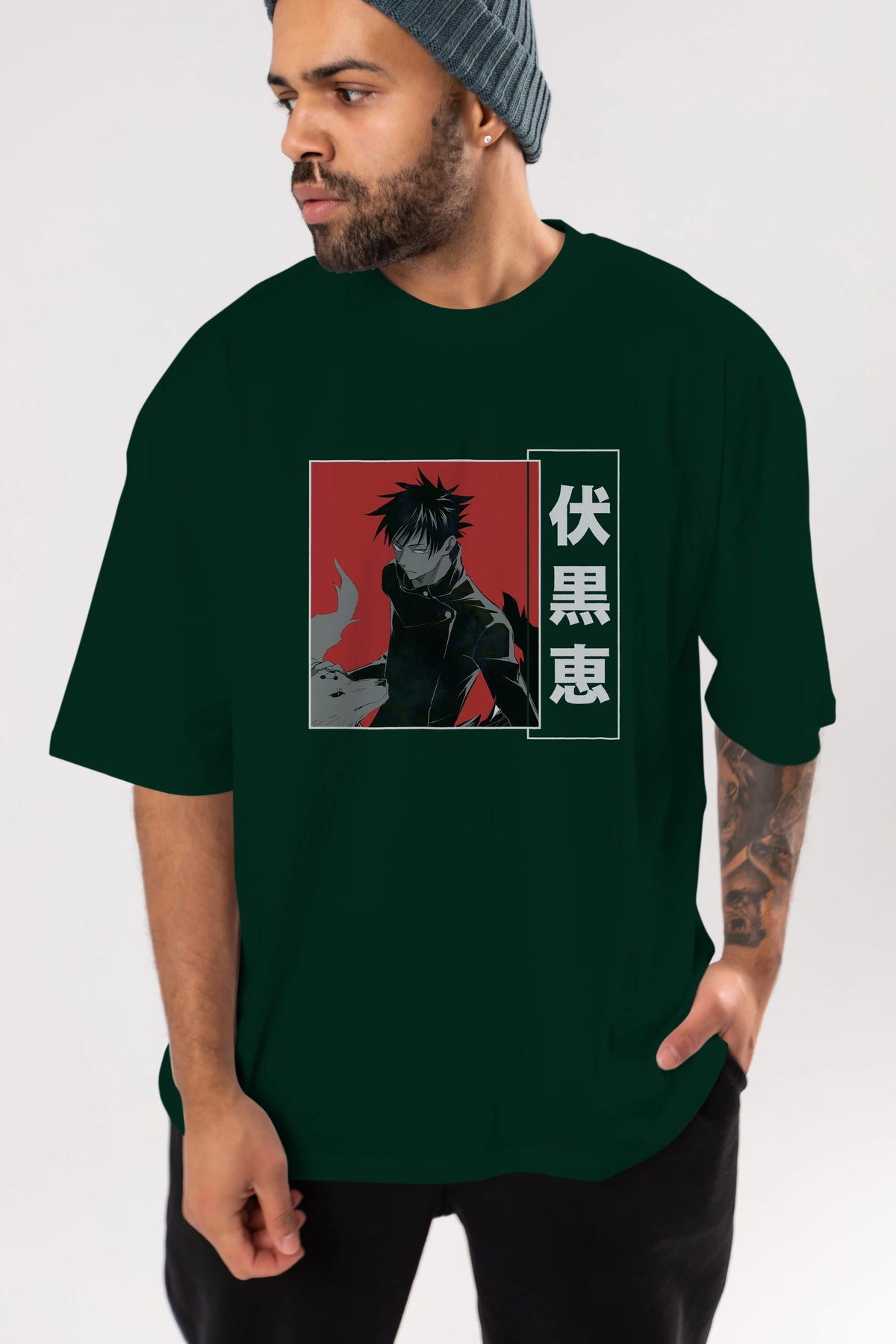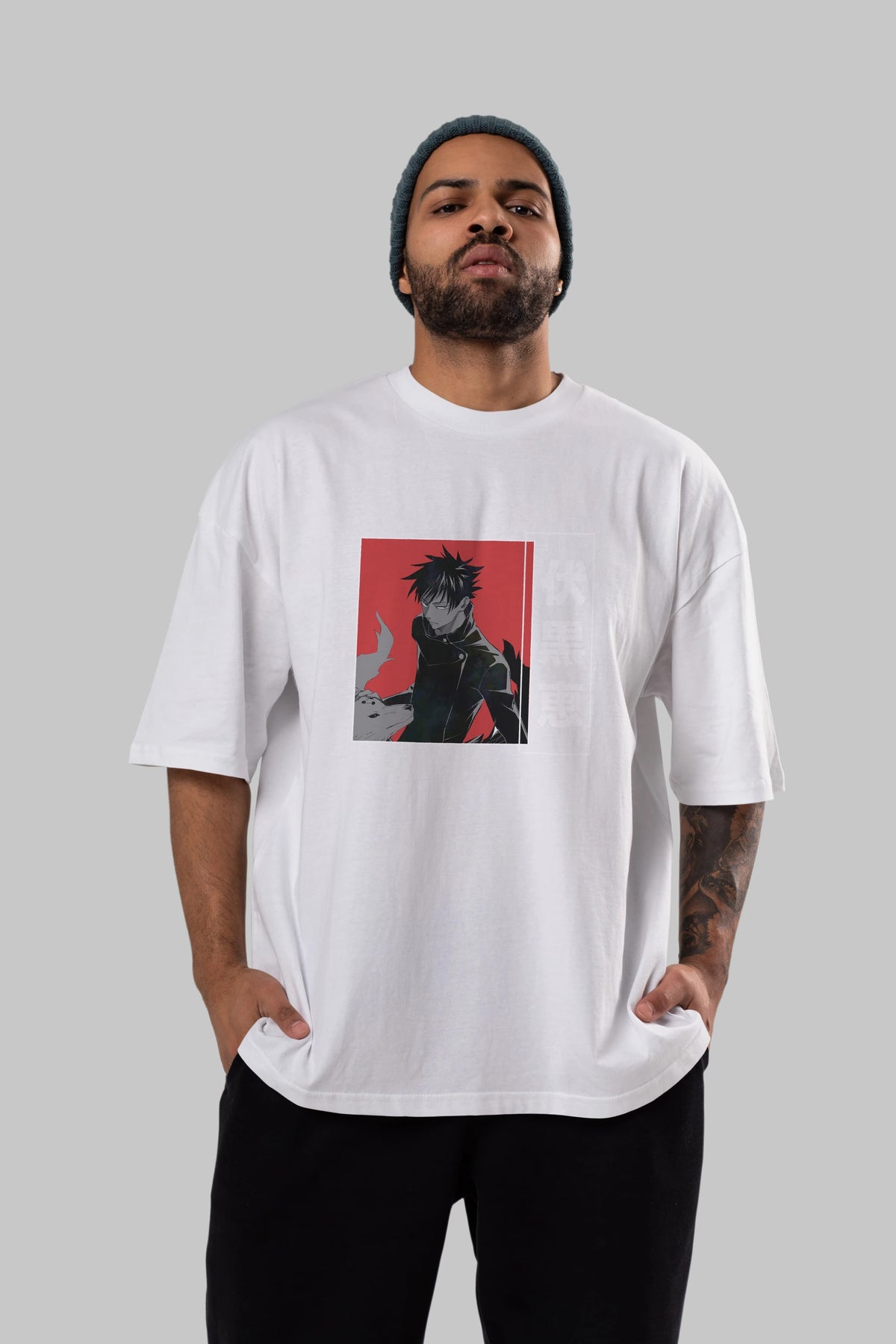 Megumi Fushiguro Anime Ön Baskılı Oversize t-shirt %100 pamuk Erkek Kadın Unisex