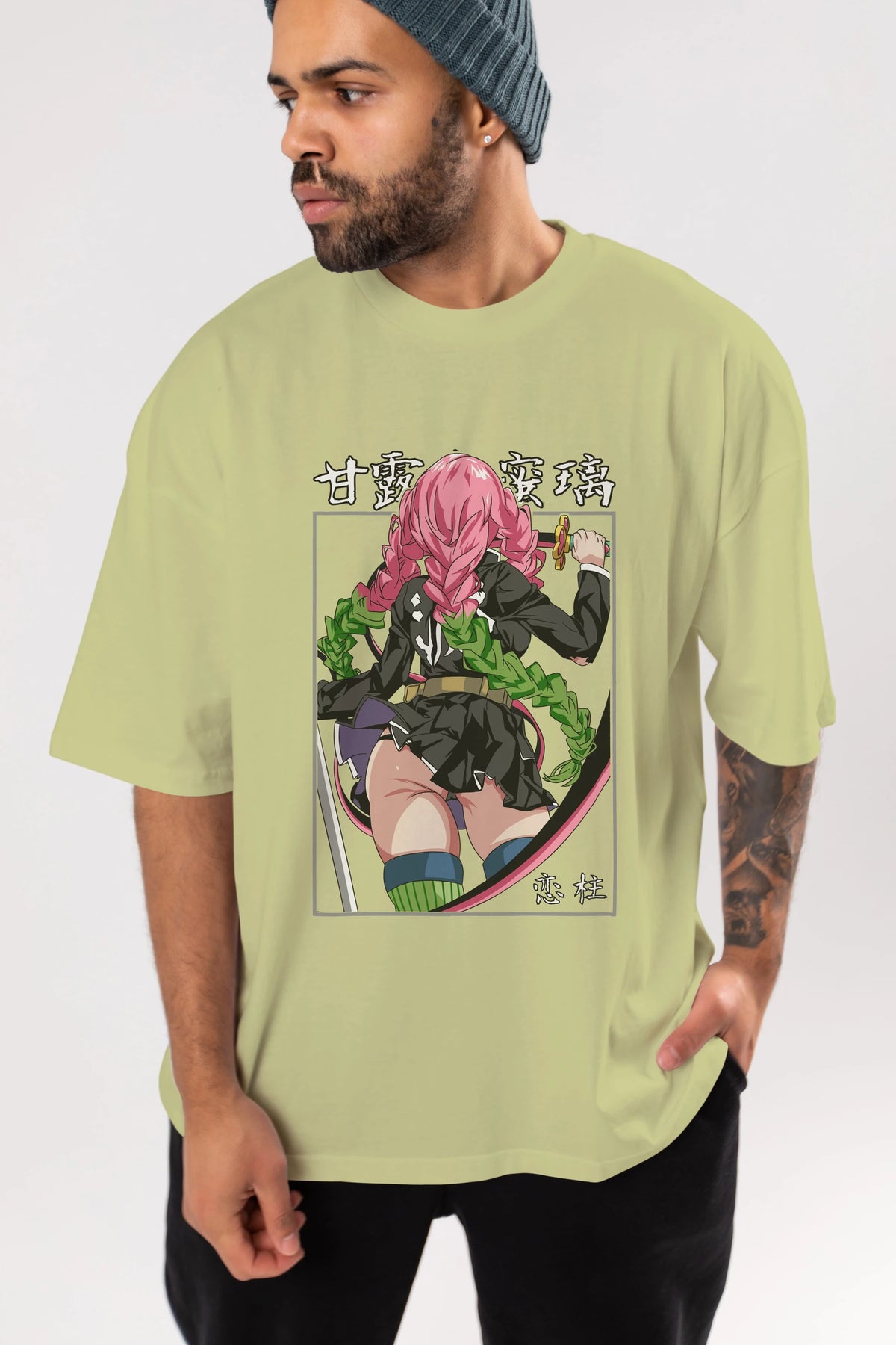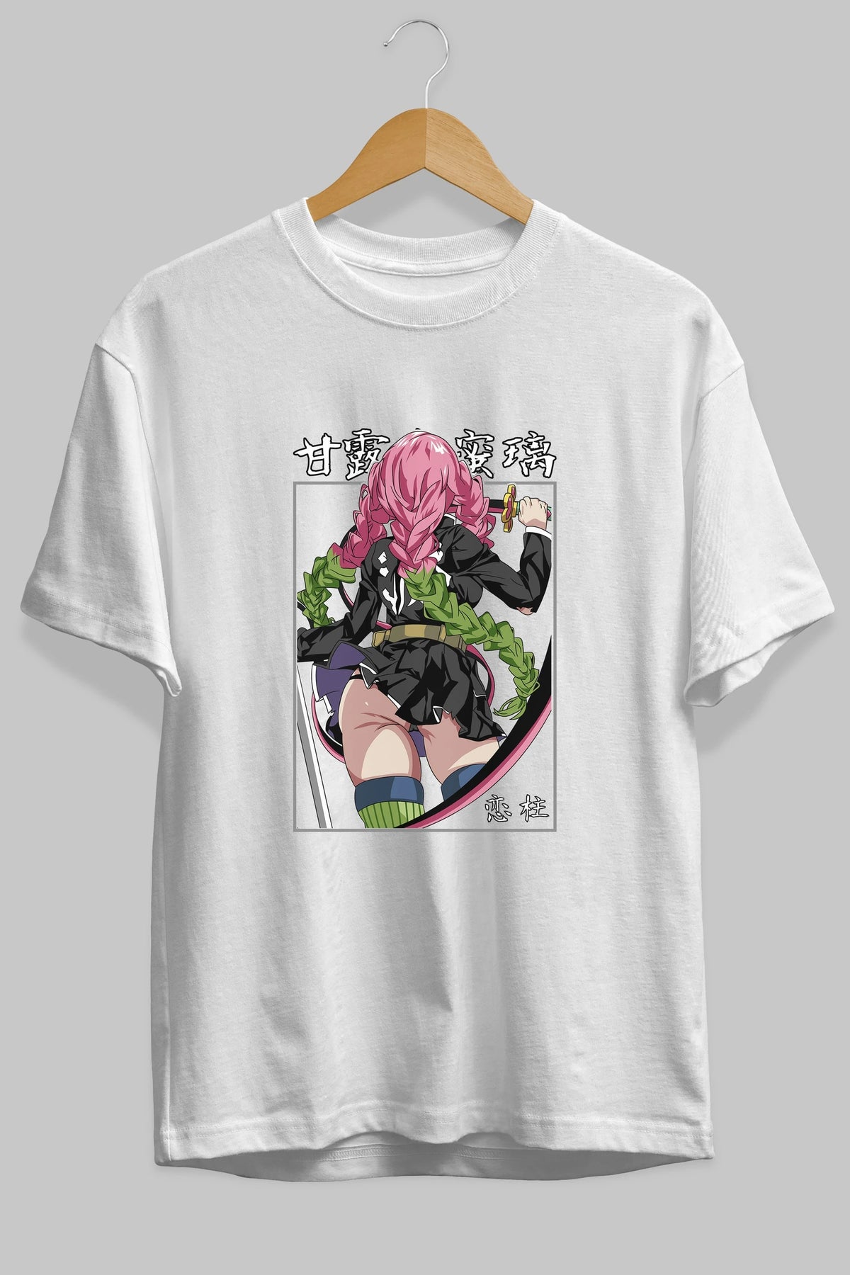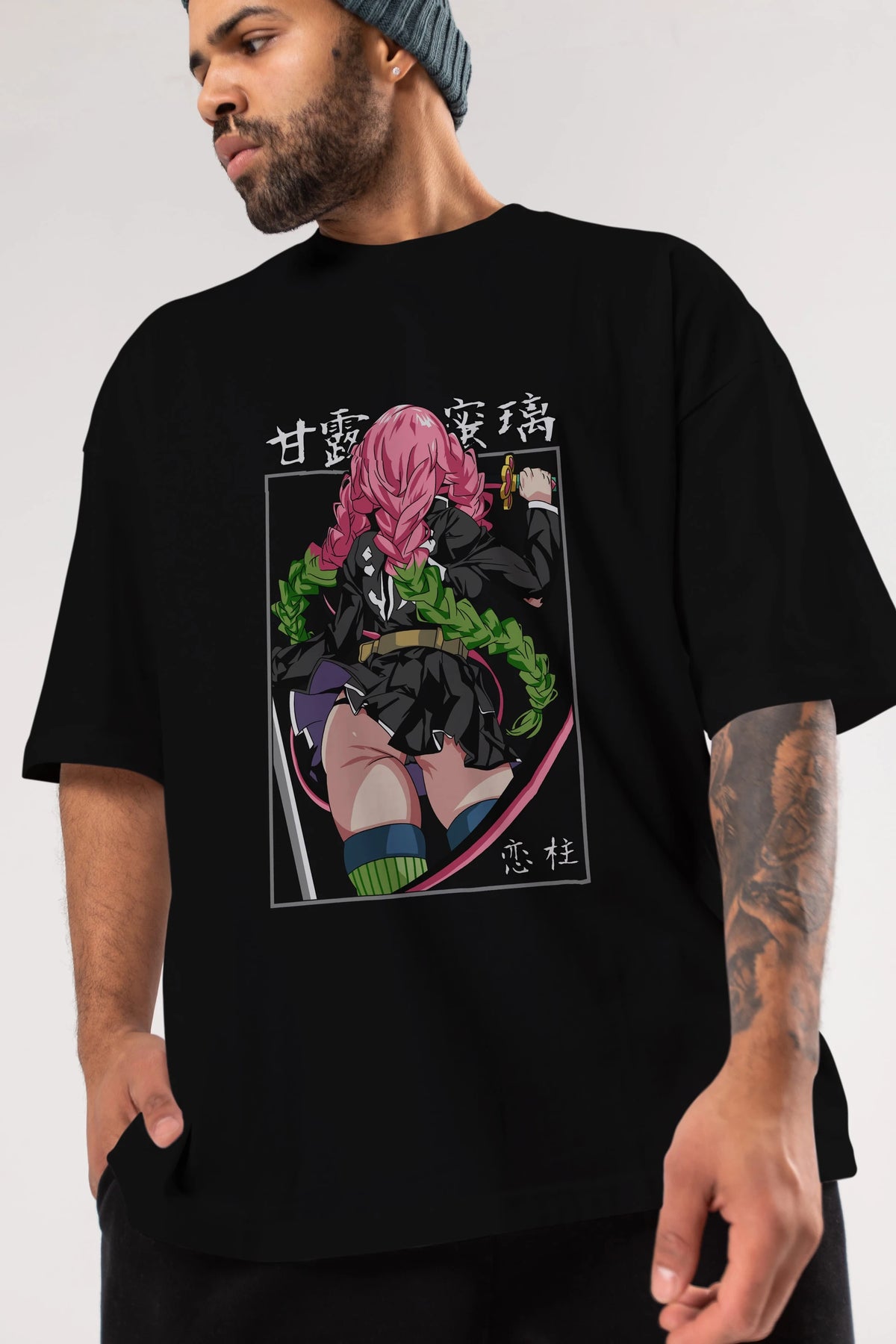 Mitsuri DEMONSLAYER Anime Ön Baskılı Oversize t-shirt %100 pamuk Erkek Kadın Unisex