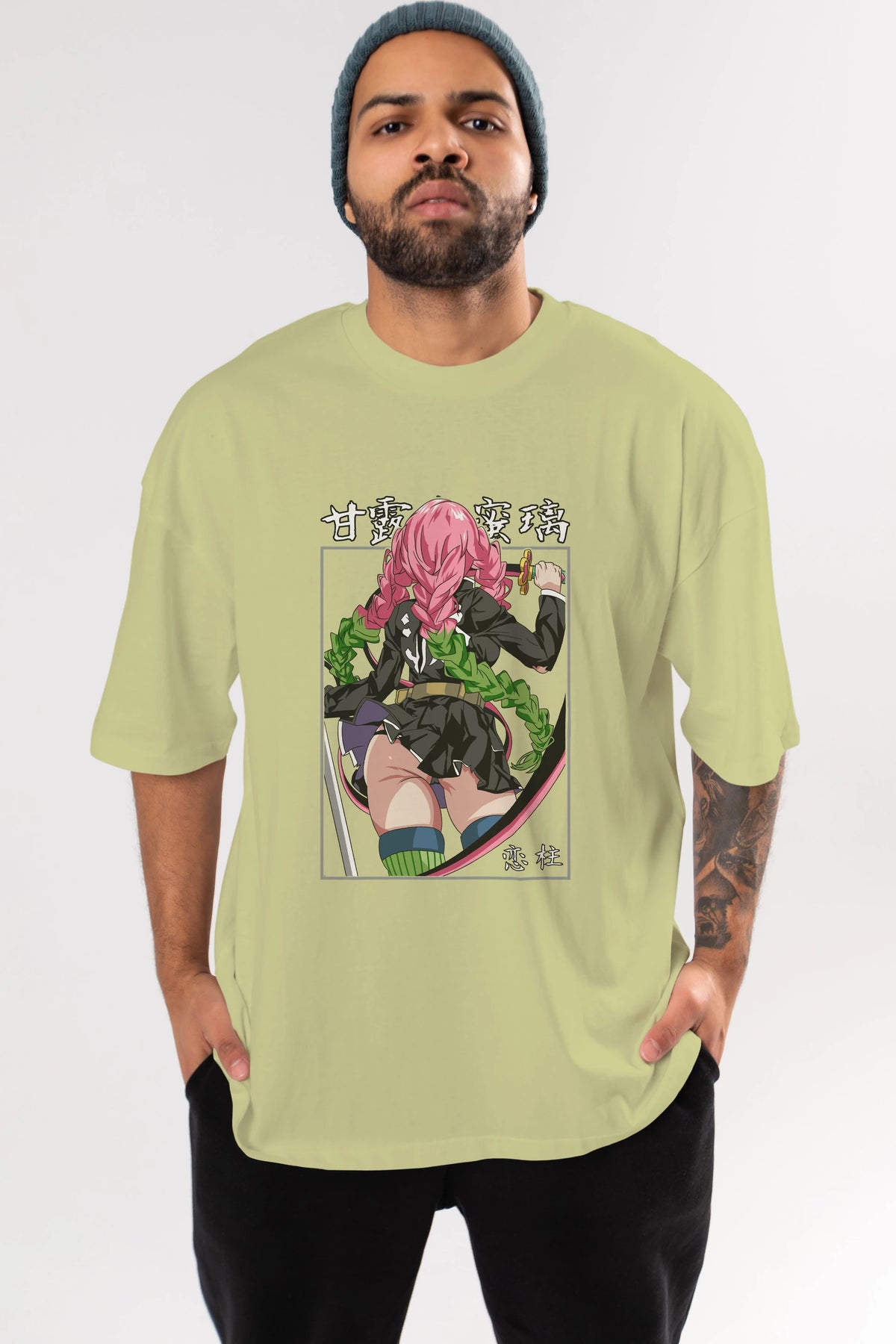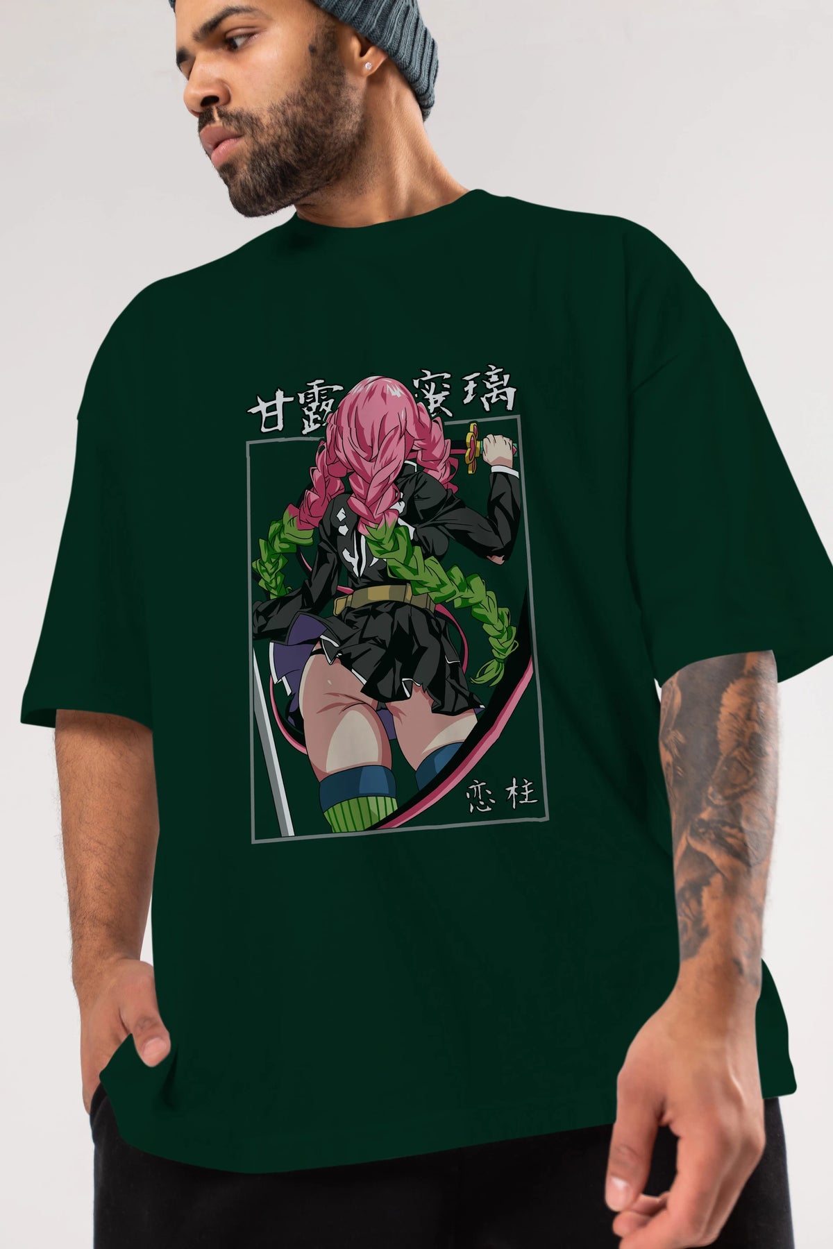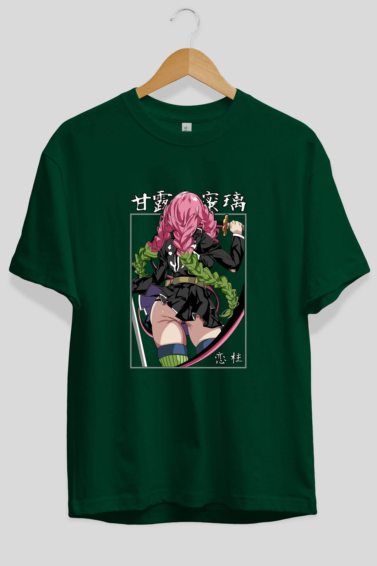 Mitsuri DEMONSLAYER Anime Ön Baskılı Oversize t-shirt %100 pamuk Erkek Kadın Unisex