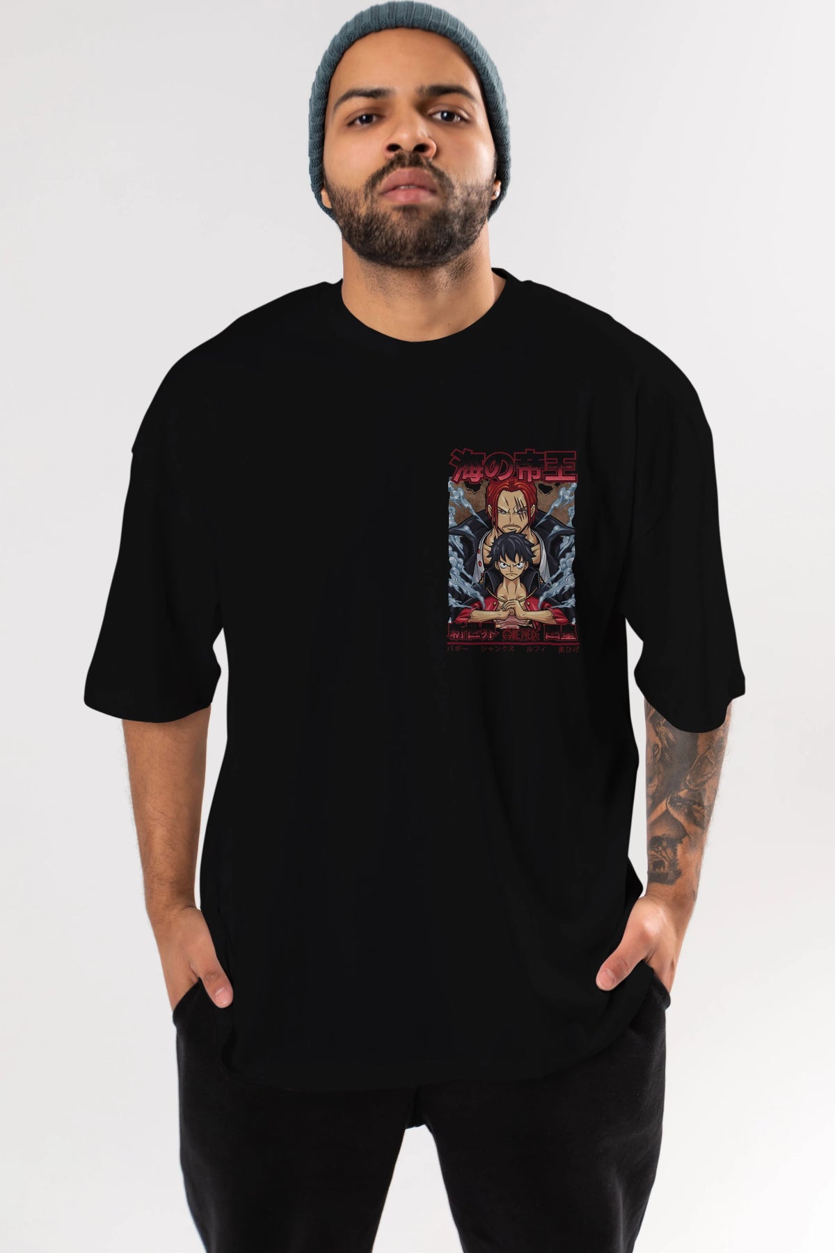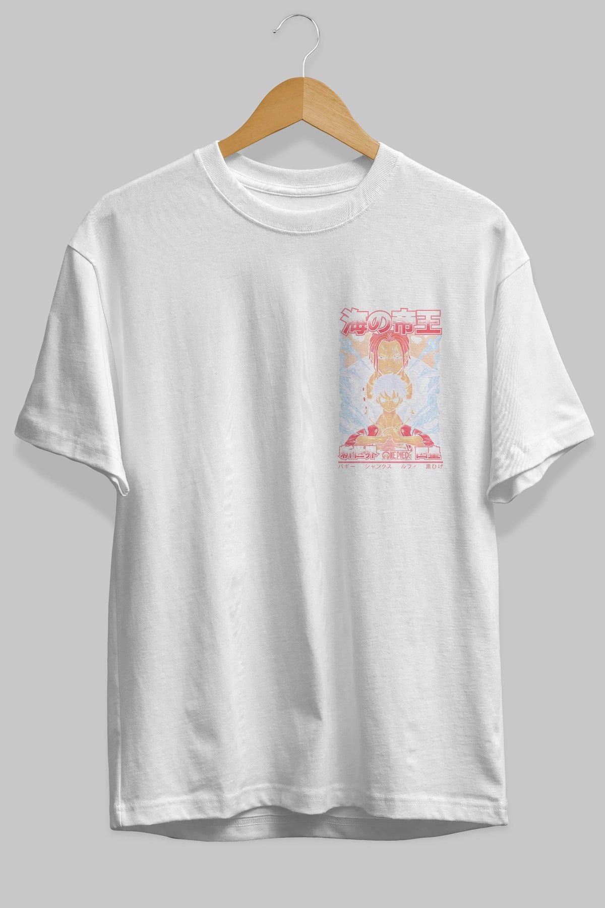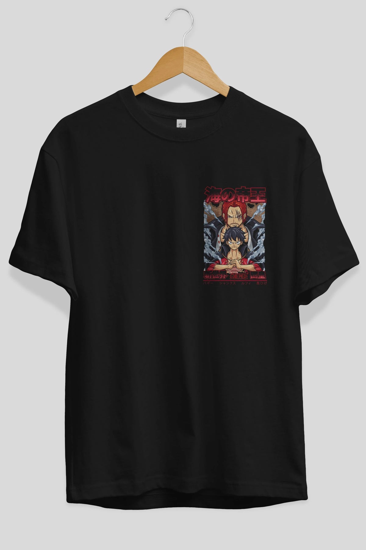 MONKEY D. LUFF and SHANKS Ön Sol Baskılı Oversize t-shirt Erkek Kadın Unisex %100 Pamuk Bisiklet Yaka tişort