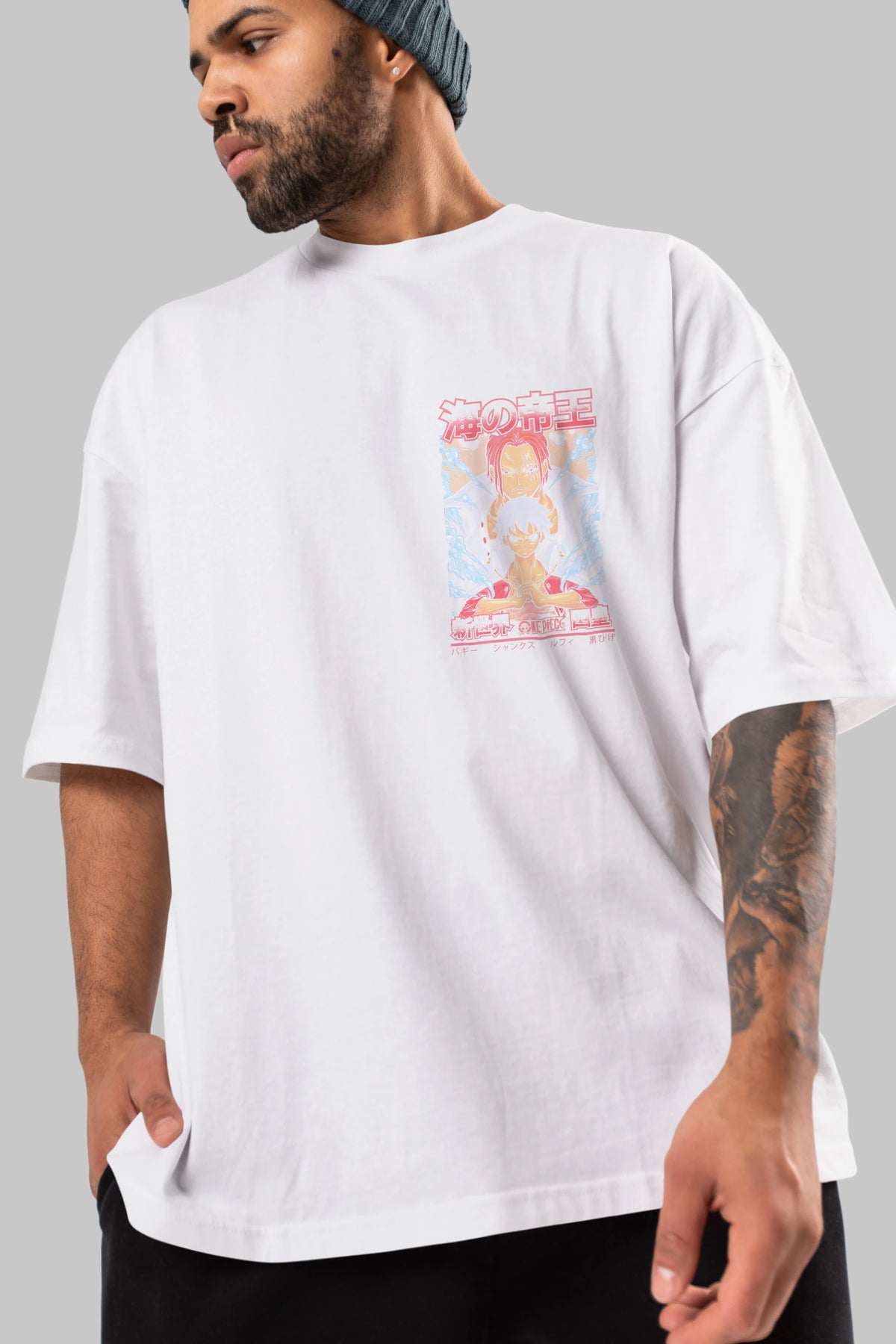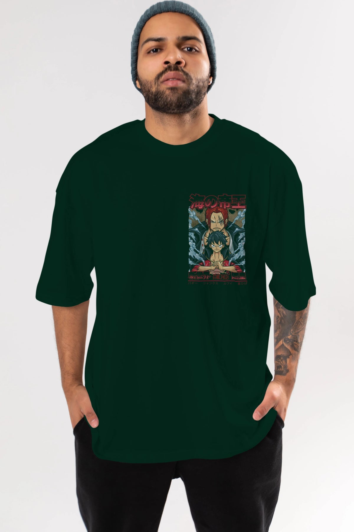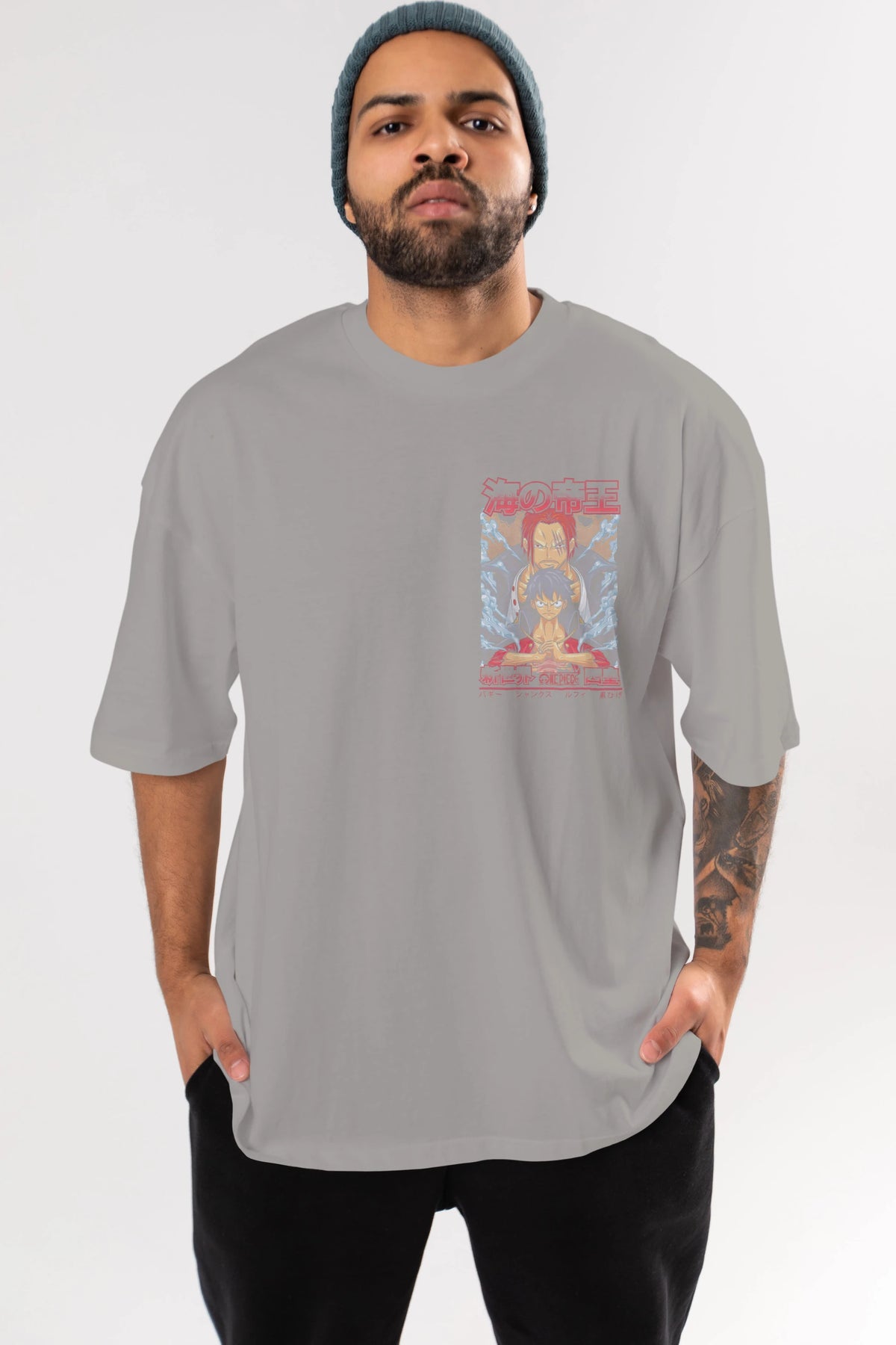 MONKEY D. LUFF and SHANKS Ön Sol Baskılı Oversize t-shirt Erkek Kadın Unisex %100 Pamuk Bisiklet Yaka tişort