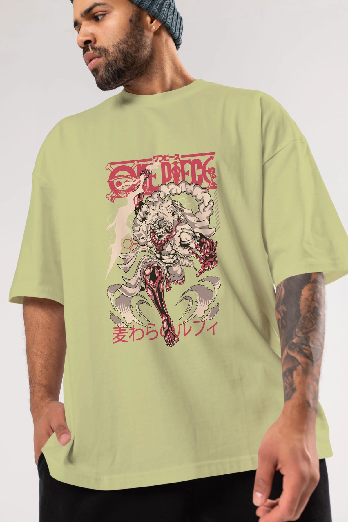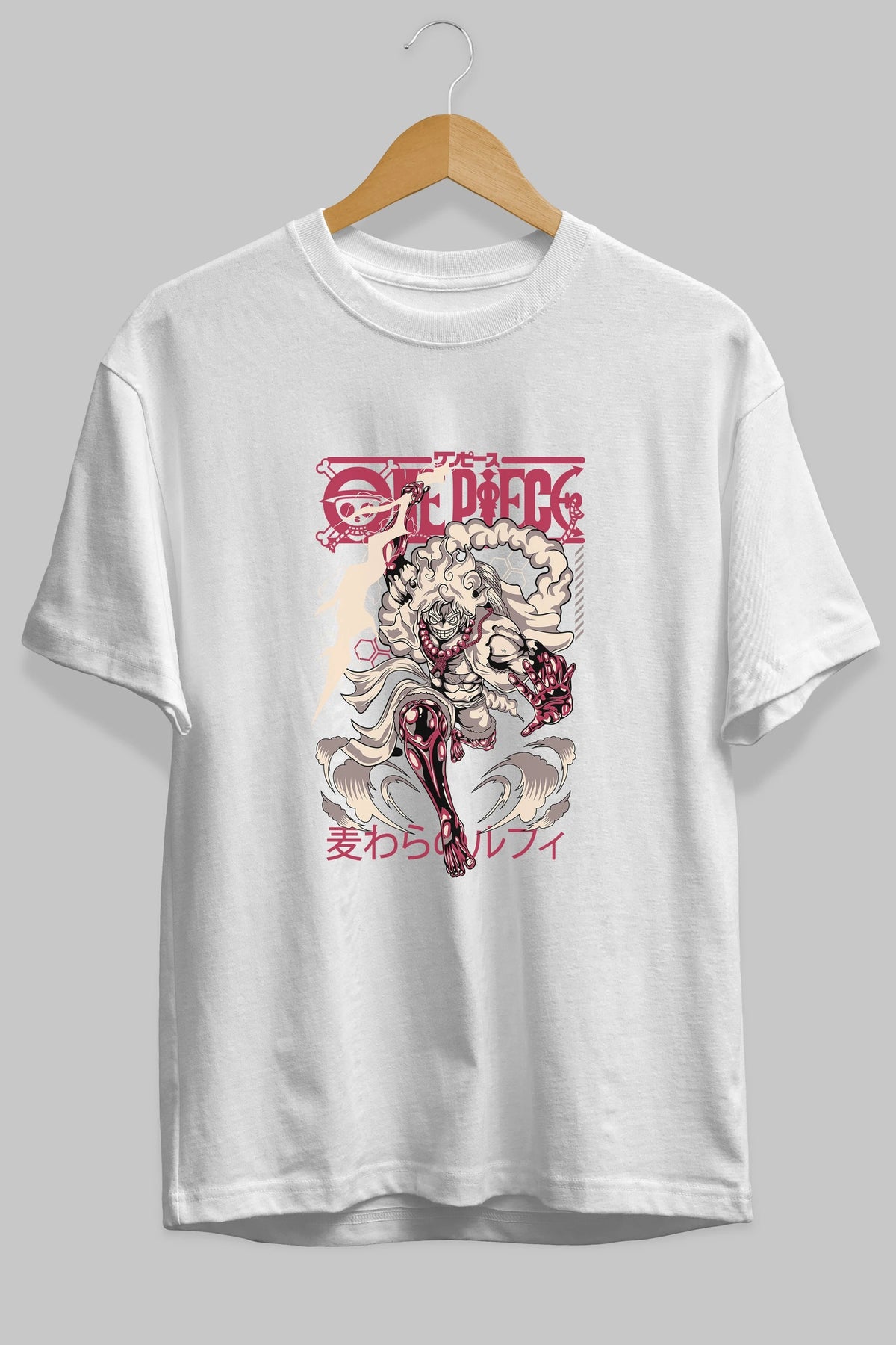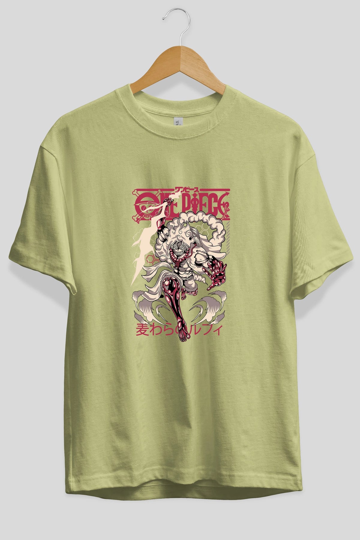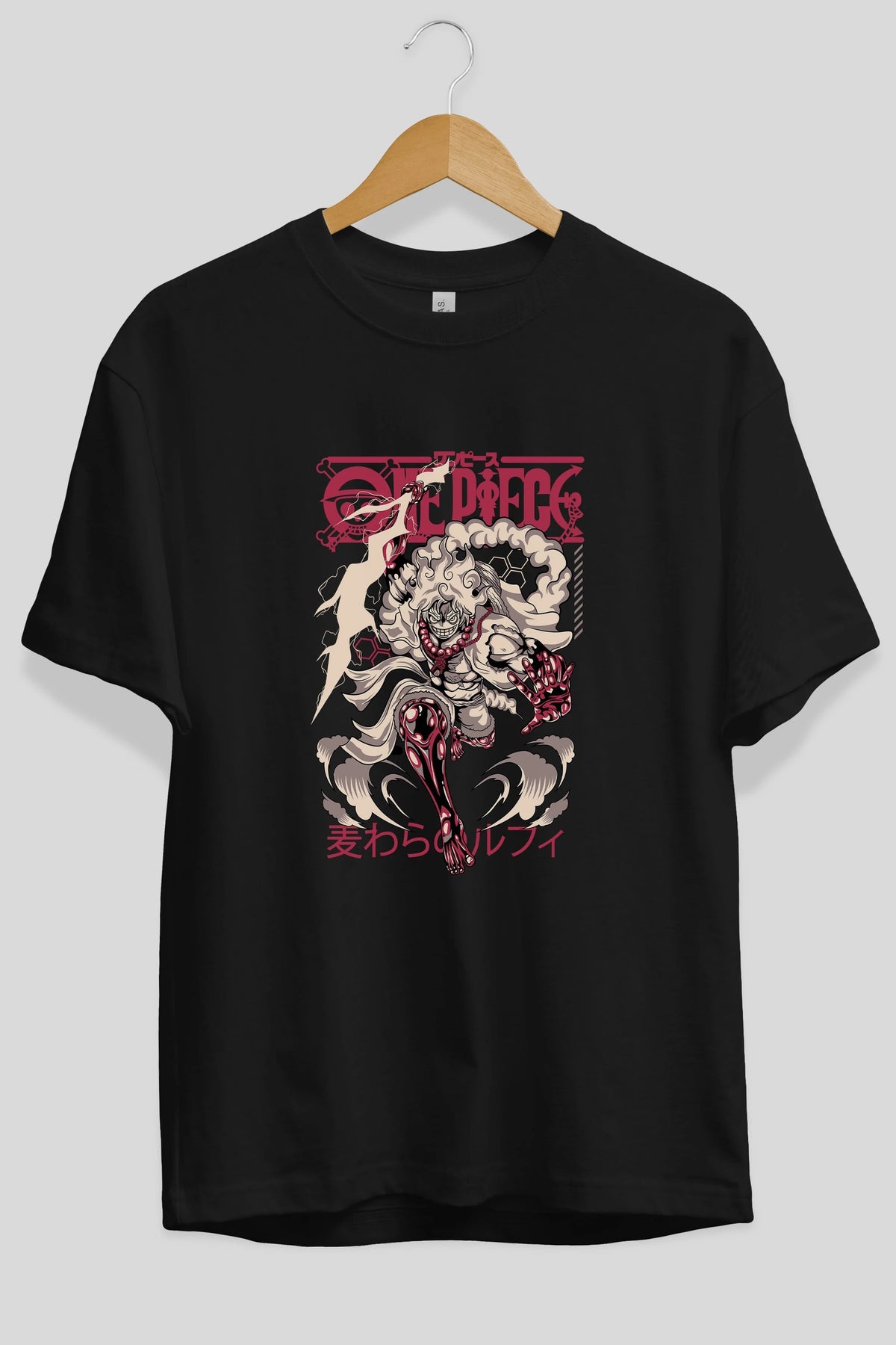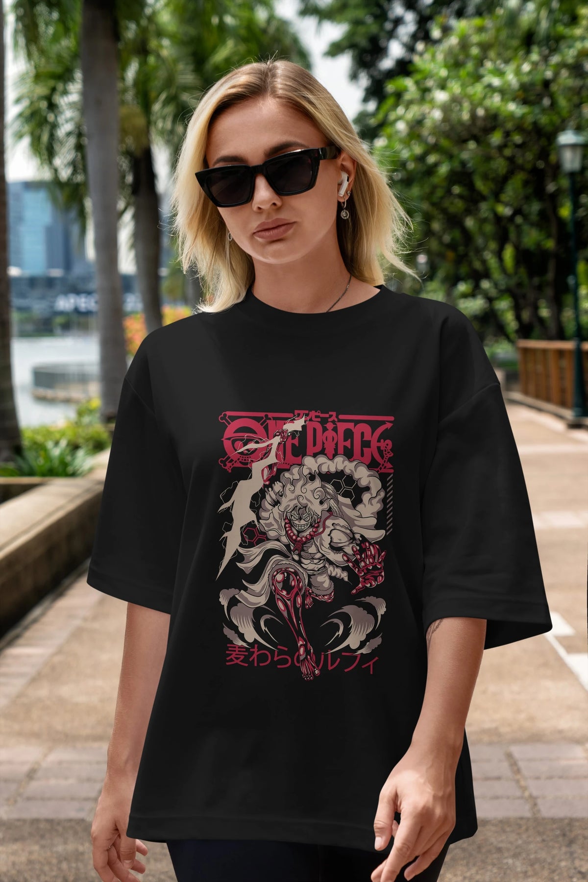 MONKEY D. LUFF-ONE PIECE 1 Anime Ön Baskılı Oversize t-shirt %100 pamuk Erkek Kadın Unisex