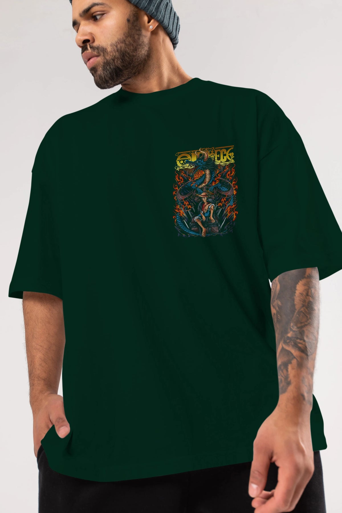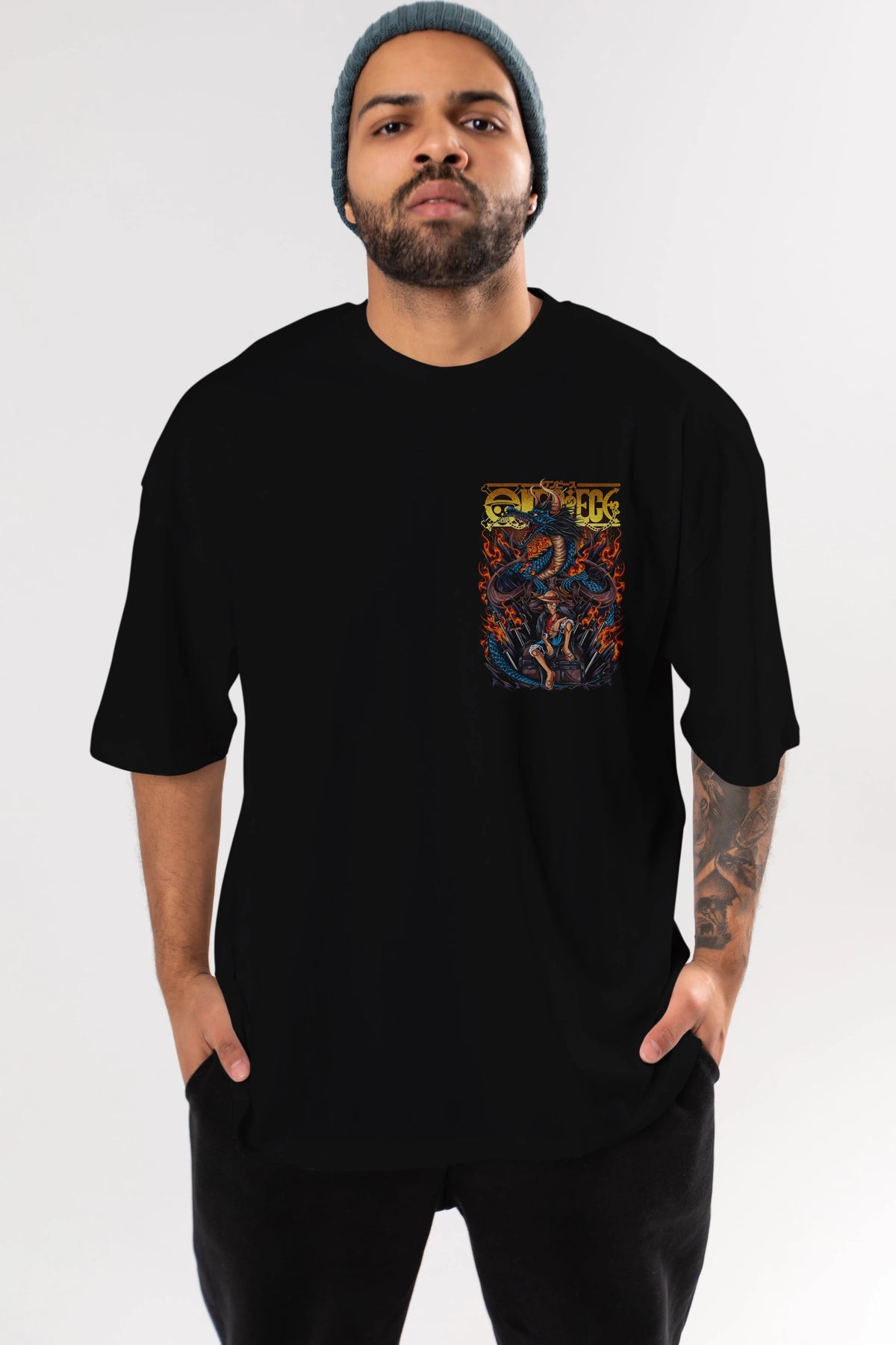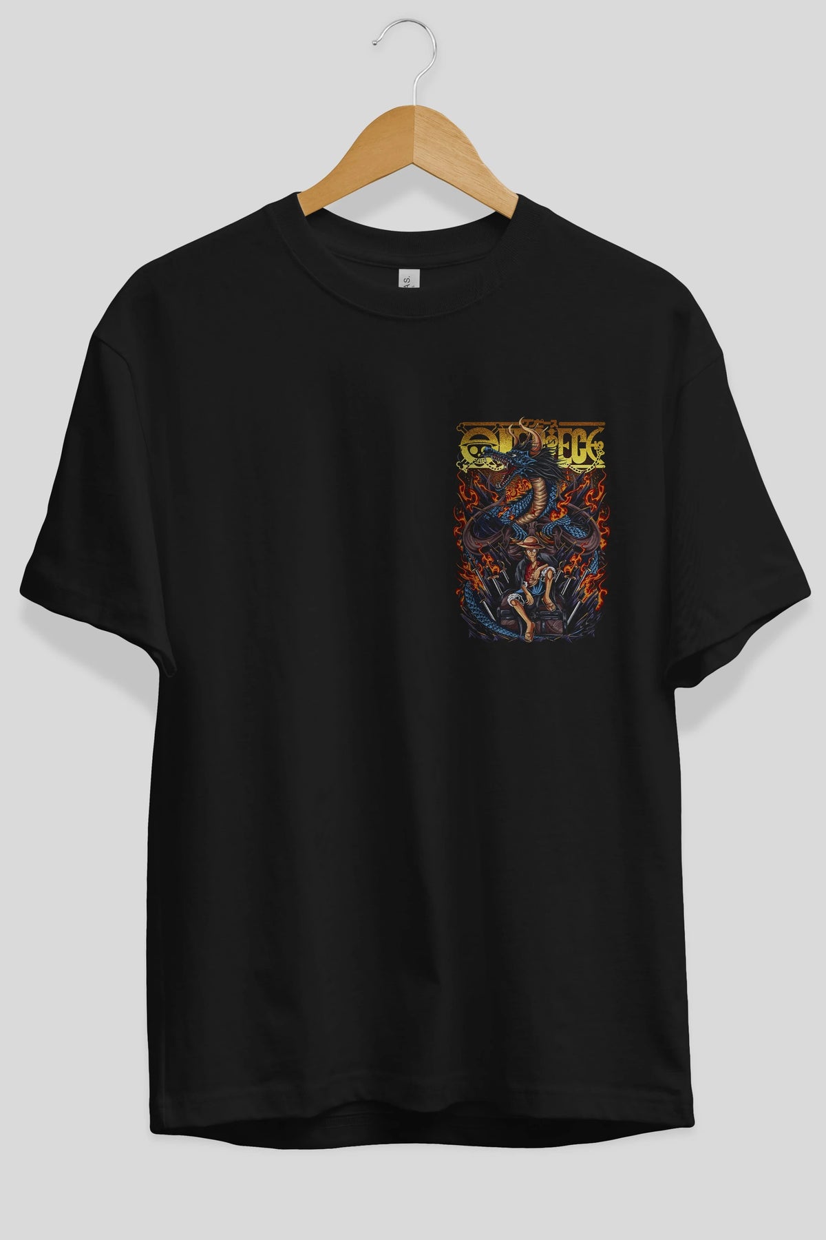 MONKEY D. LUFF-ONE PIECE Ön Sol Baskılı Oversize t-shirt Erkek Kadın Unisex %100 Pamuk Bisiklet Yaka tişort