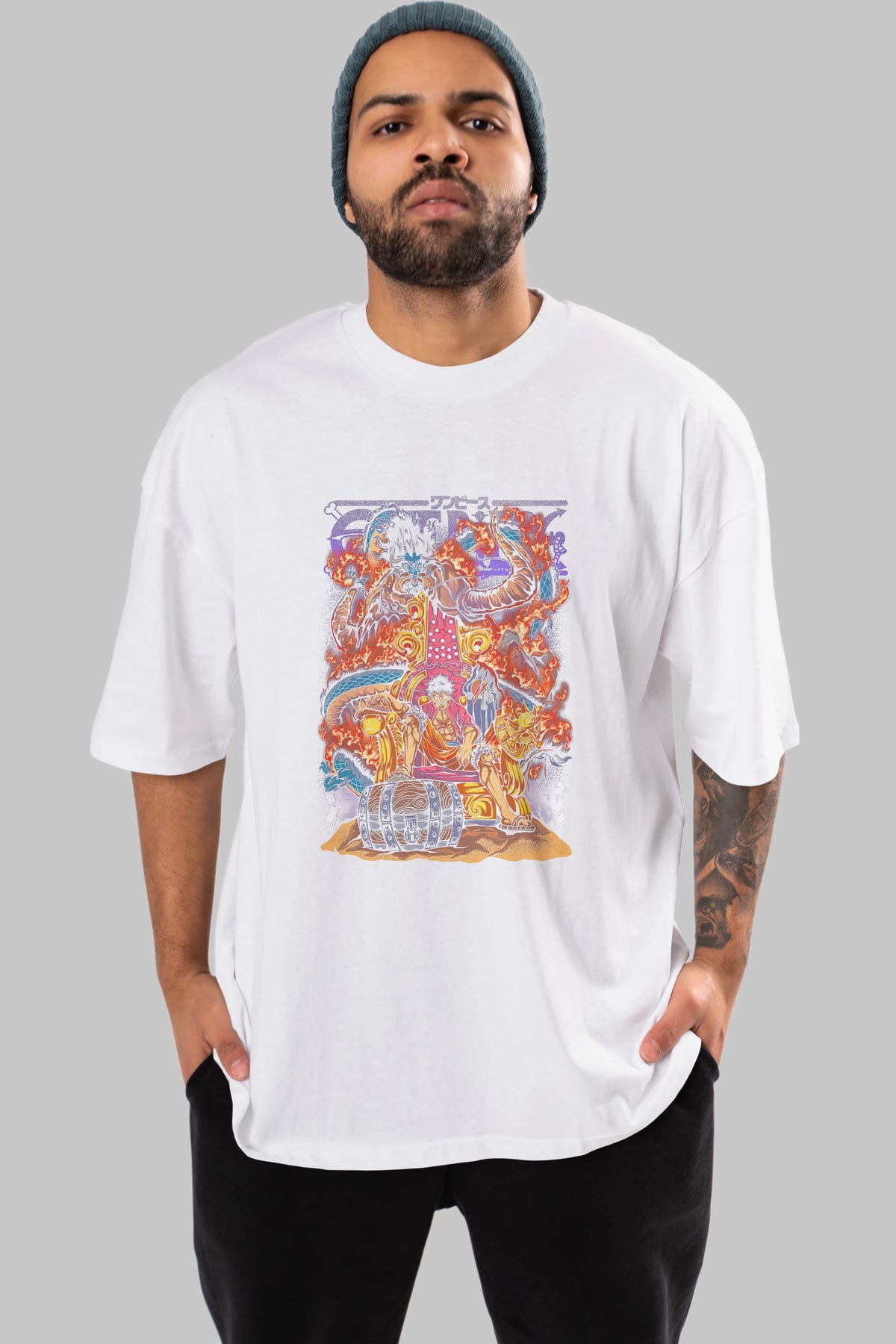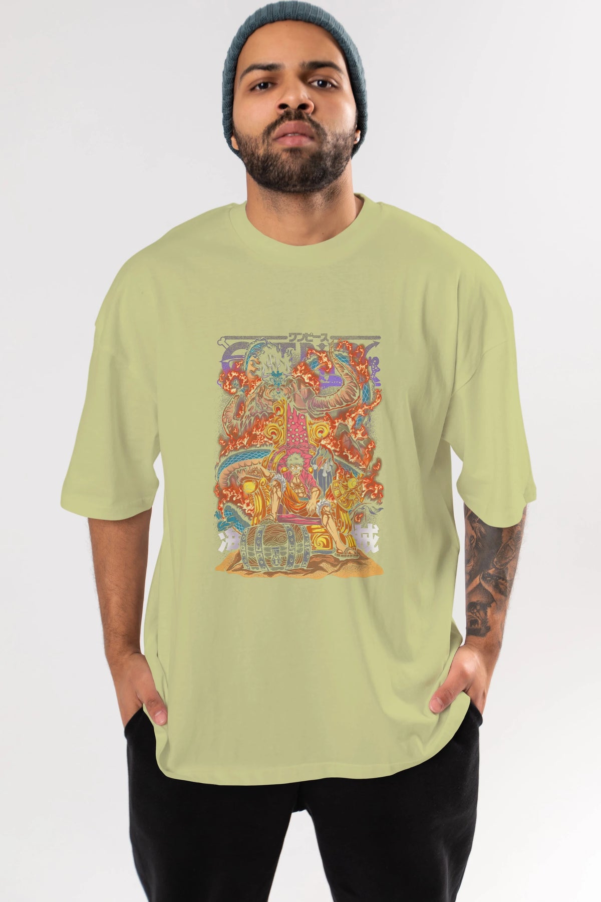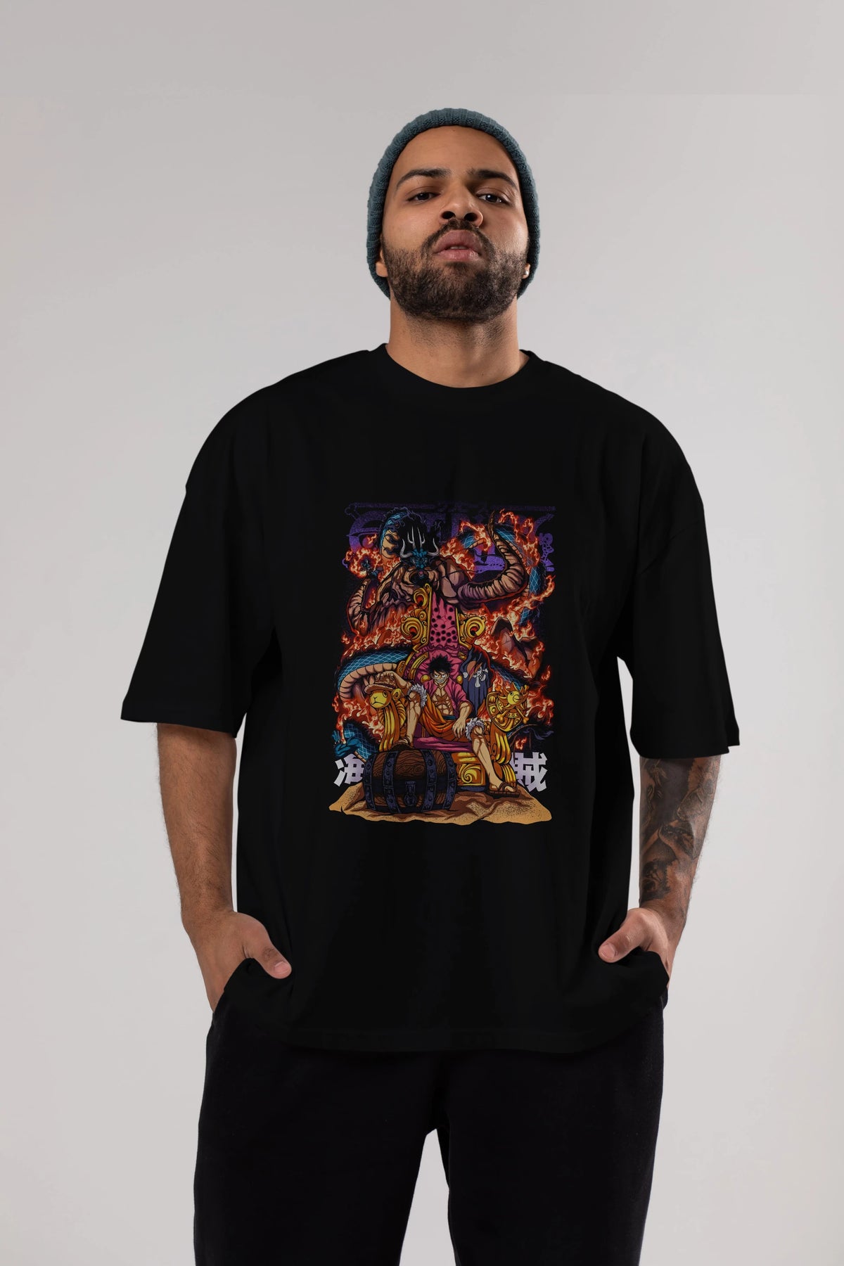 MONKEY D. LUFFY 1 Anime Ön Baskılı Oversize t-shirt %100 pamuk Erkek Kadın Unisex