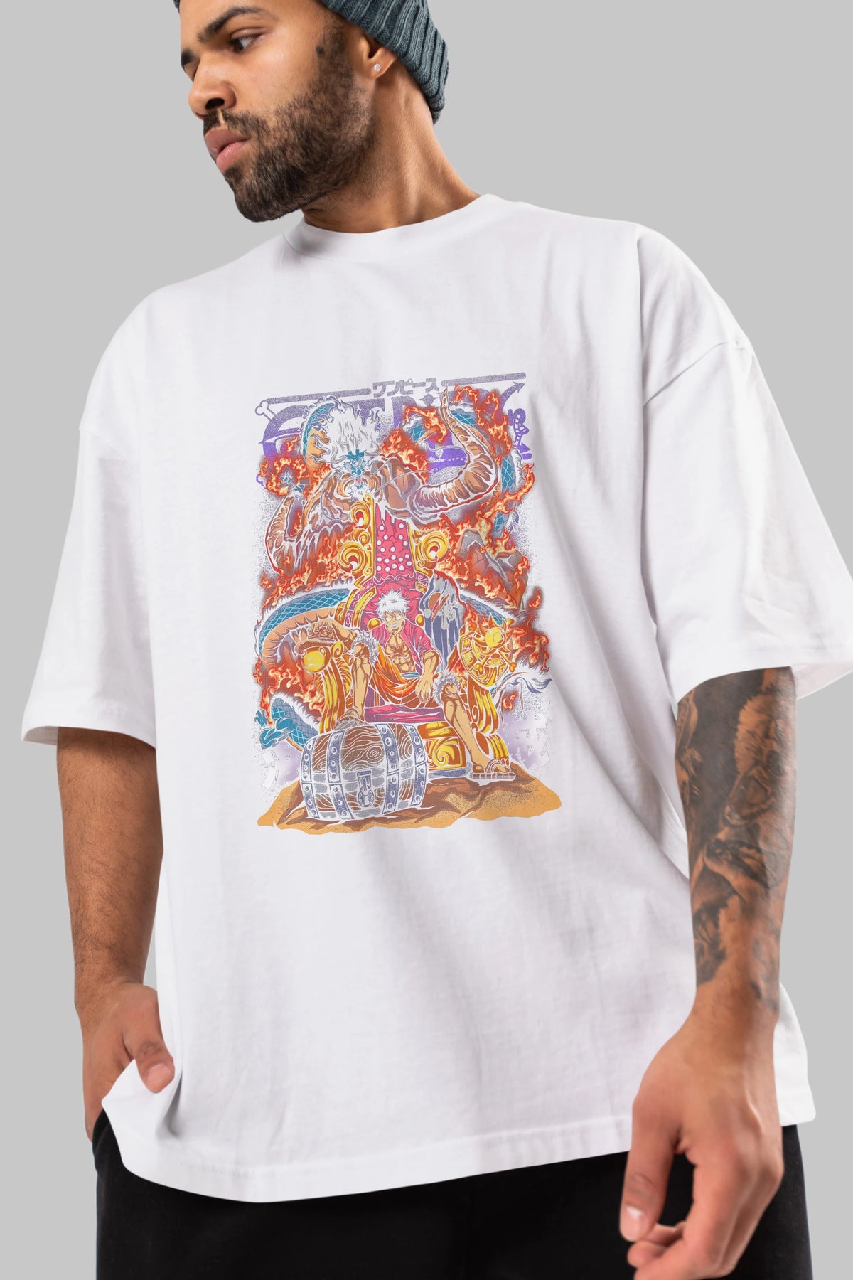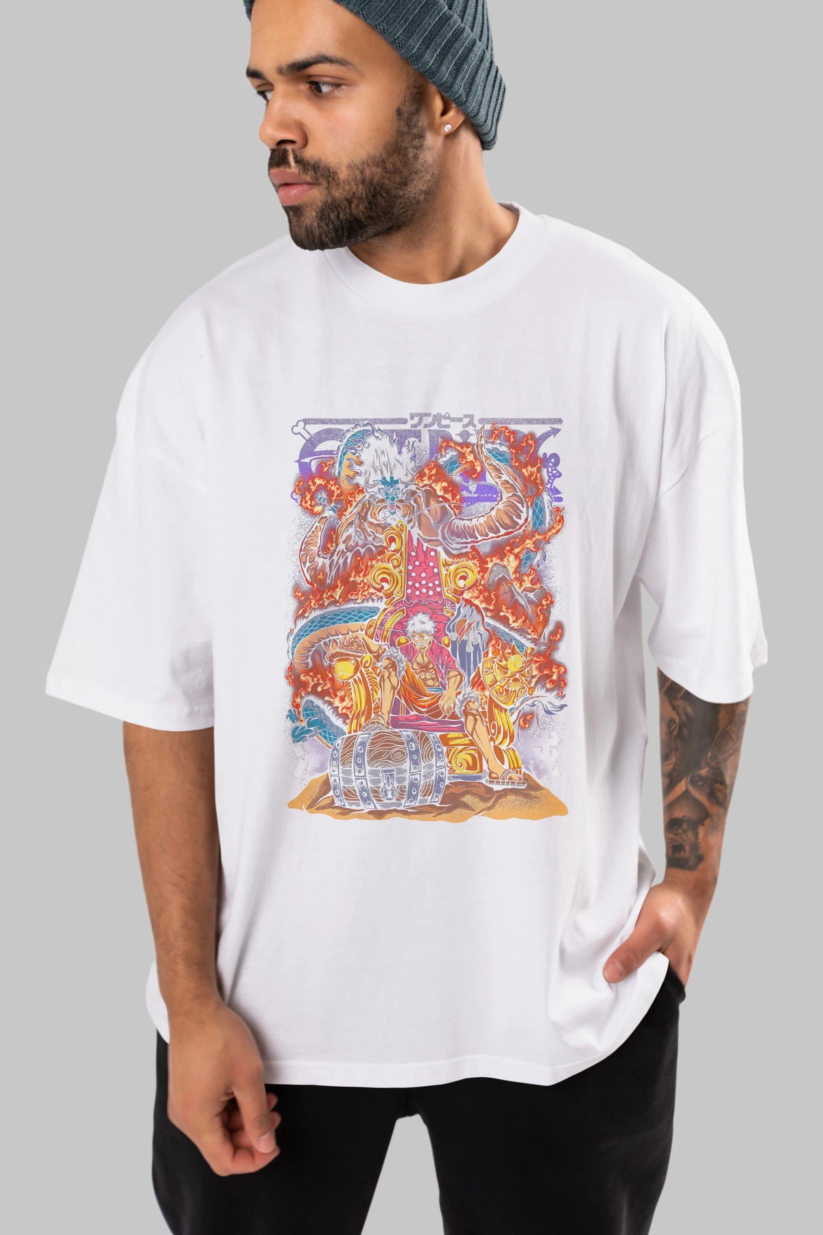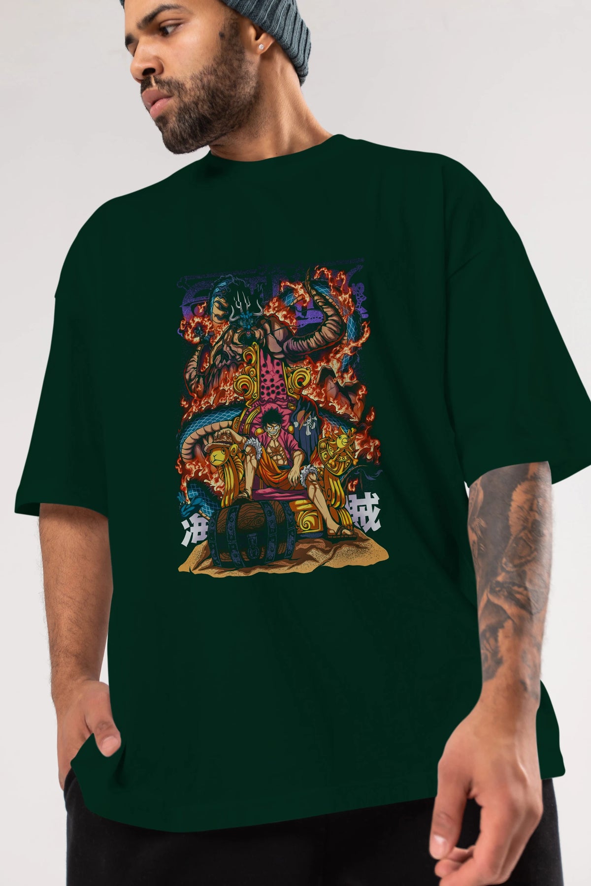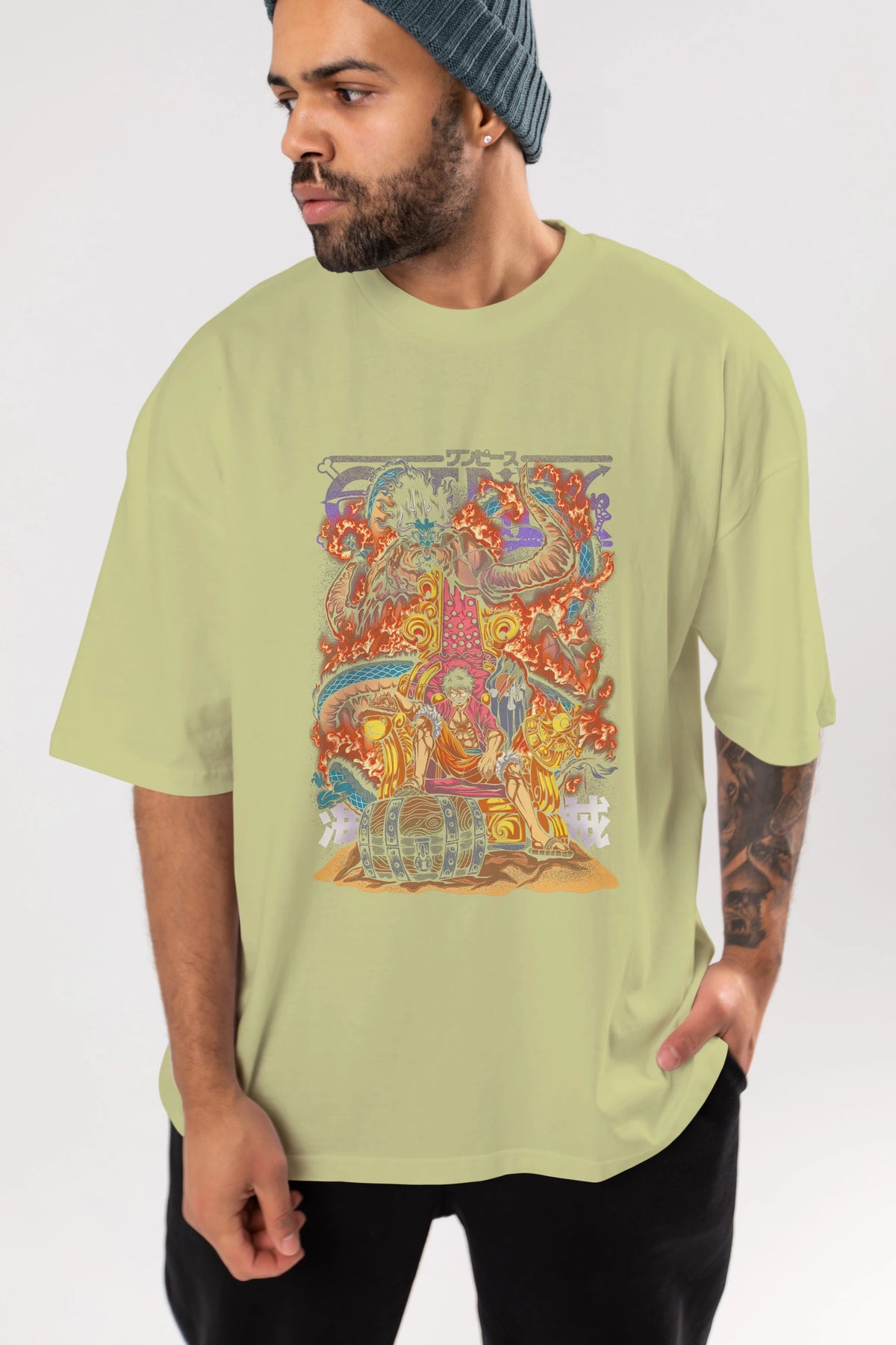 MONKEY D. LUFFY 1 Anime Ön Baskılı Oversize t-shirt %100 pamuk Erkek Kadın Unisex