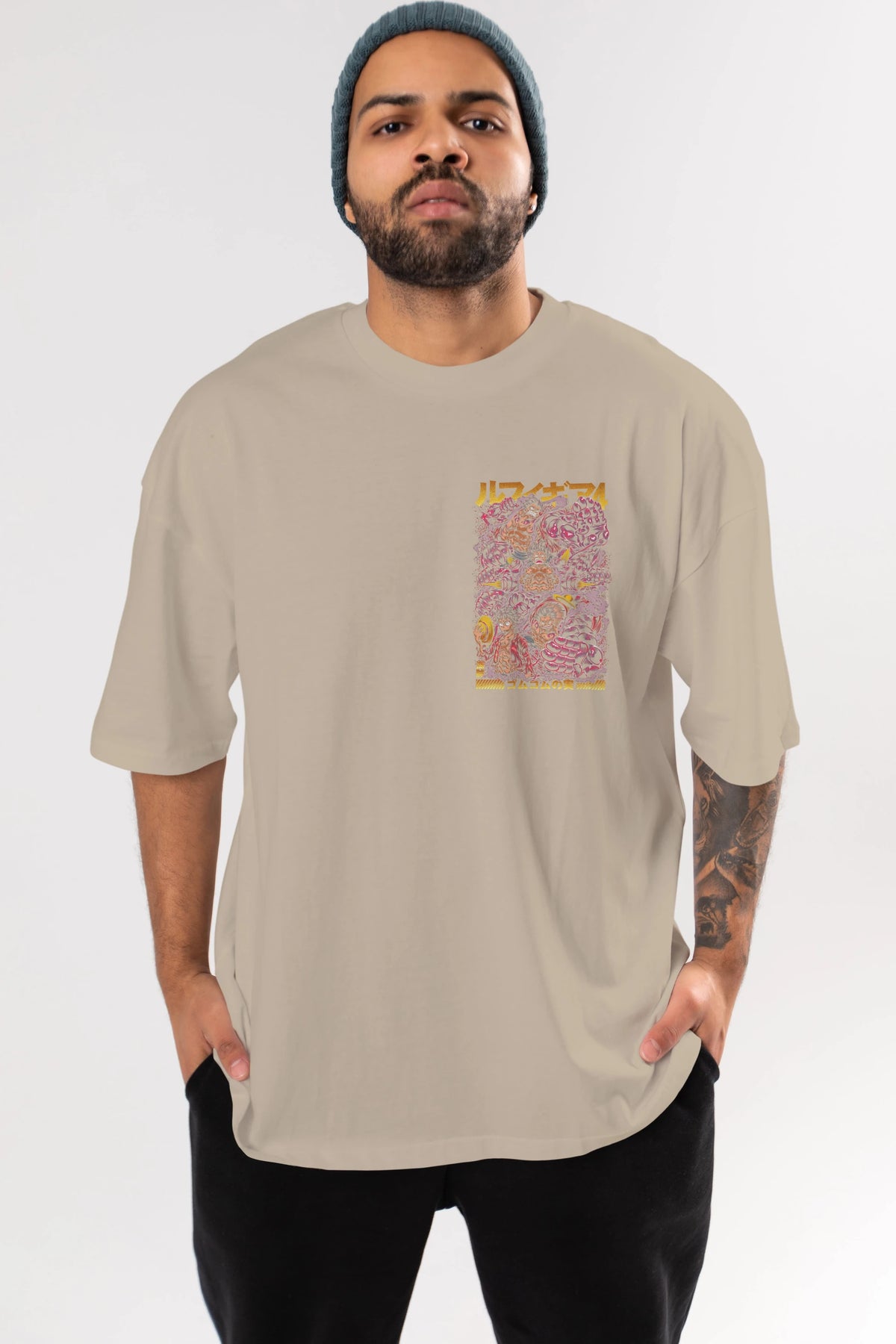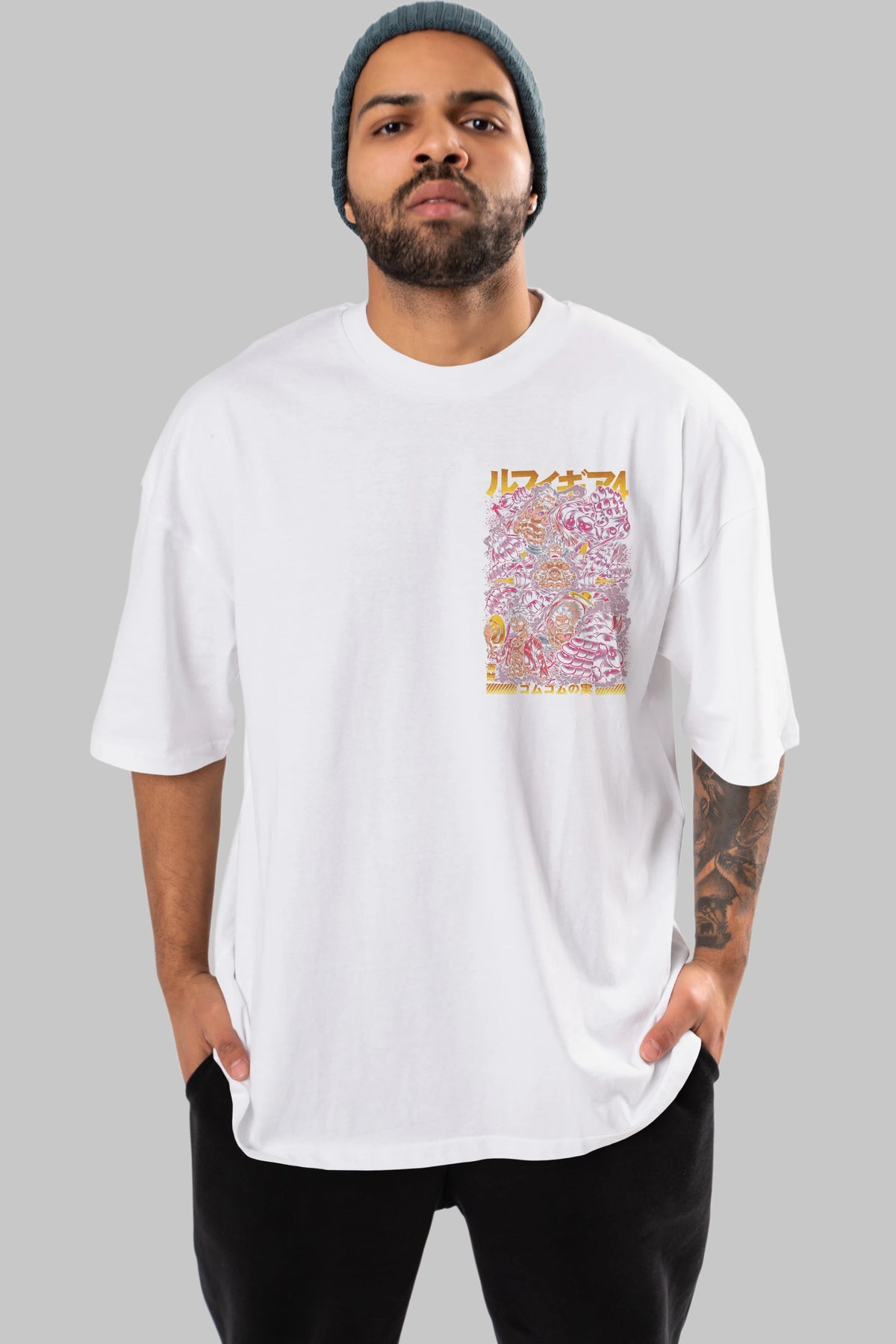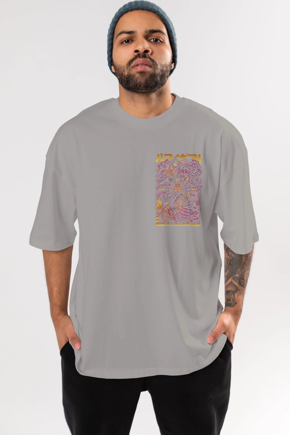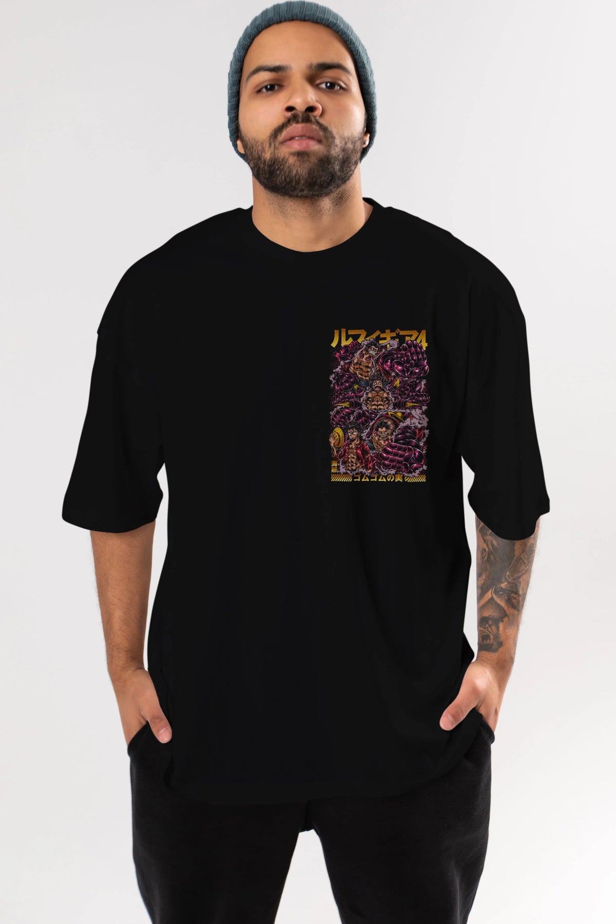 MONKEY D. LUFFY (2) Ön Sol Baskılı Oversize t-shirt Erkek Kadın Unisex %100 Pamuk Bisiklet Yaka tişort