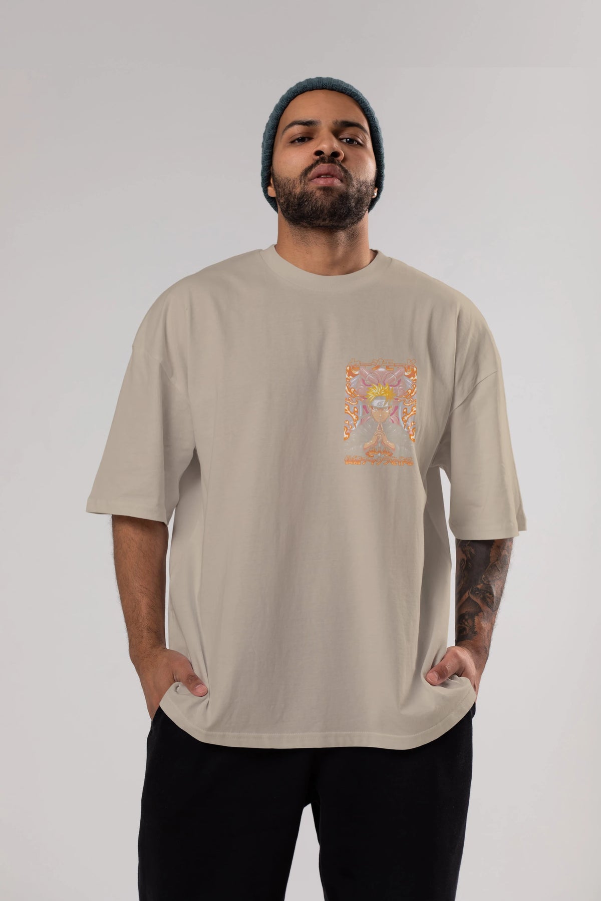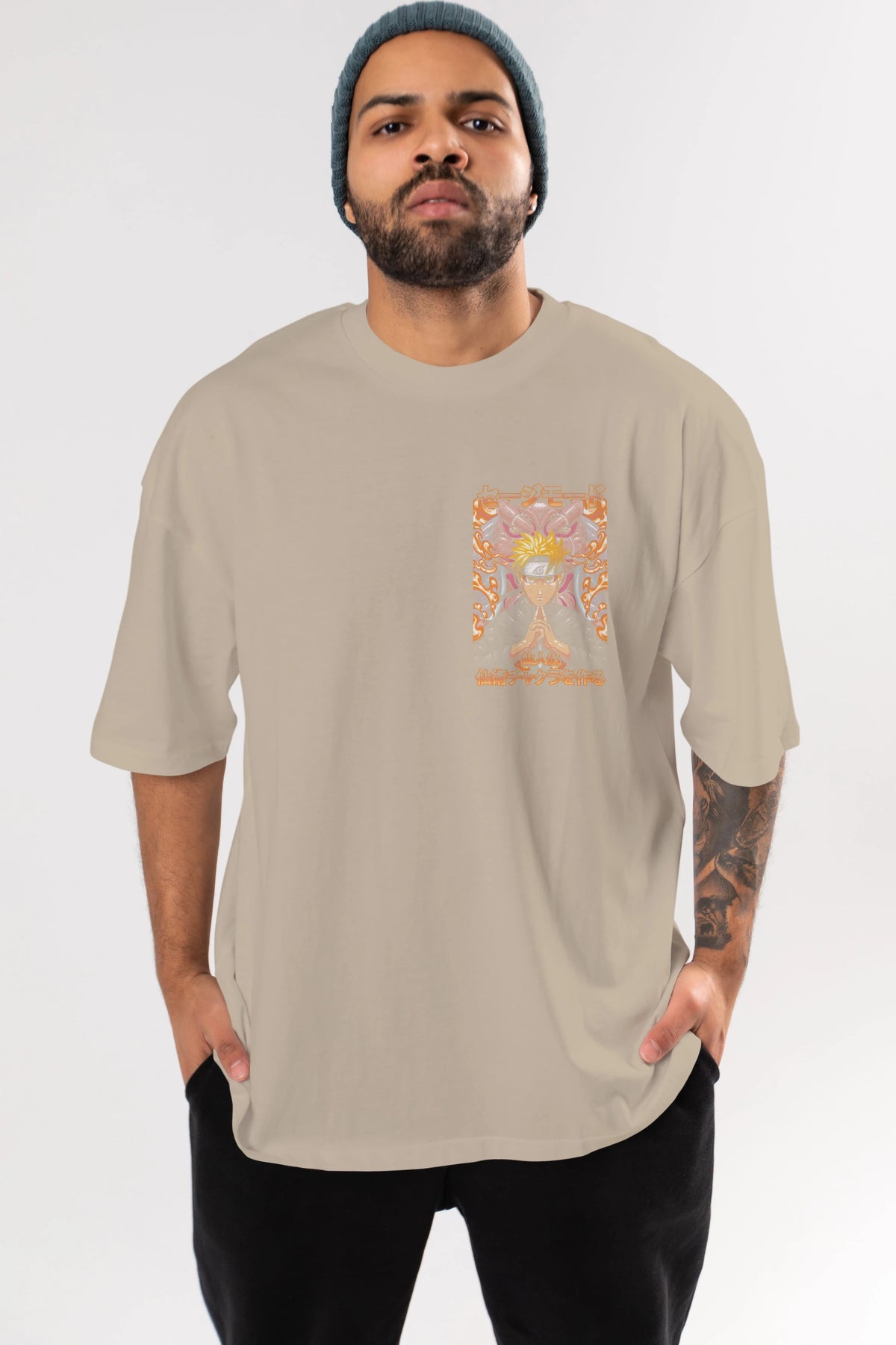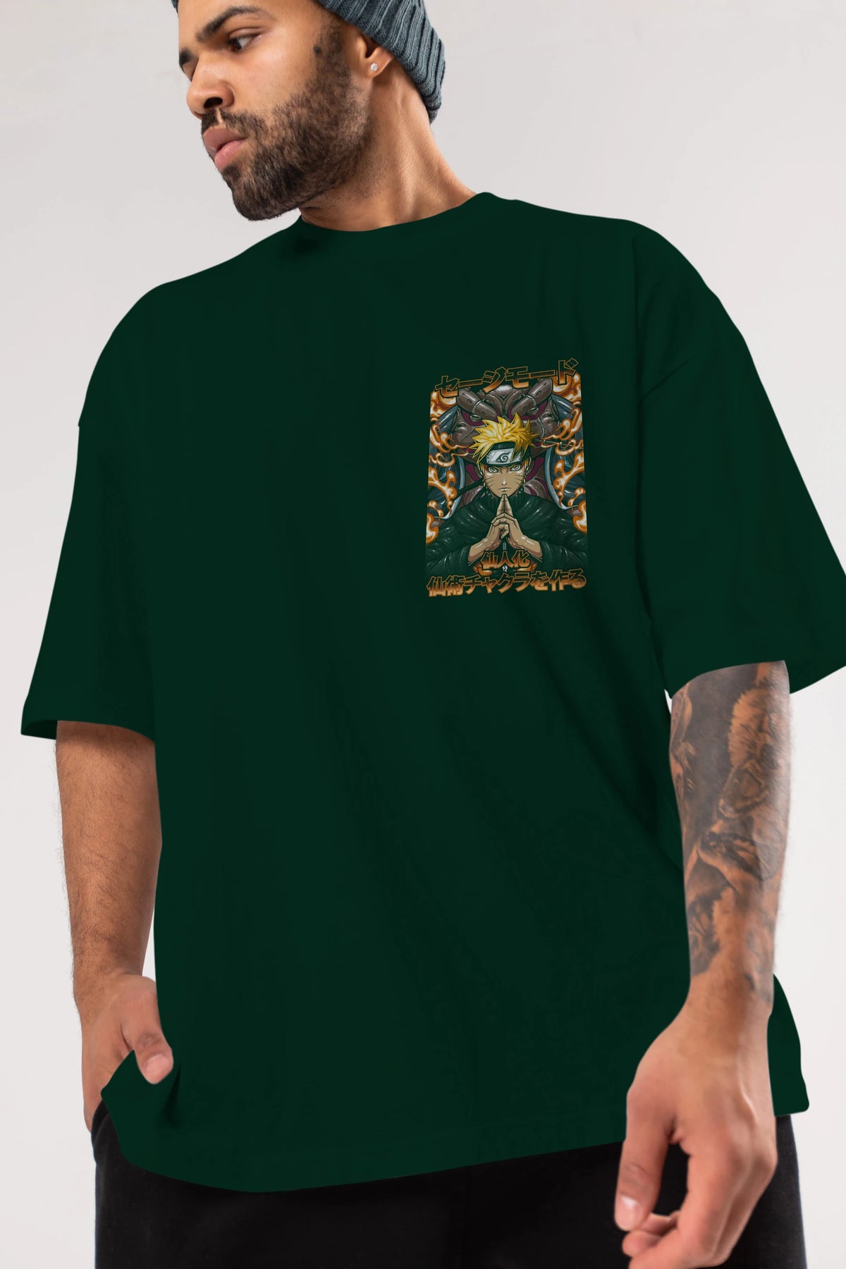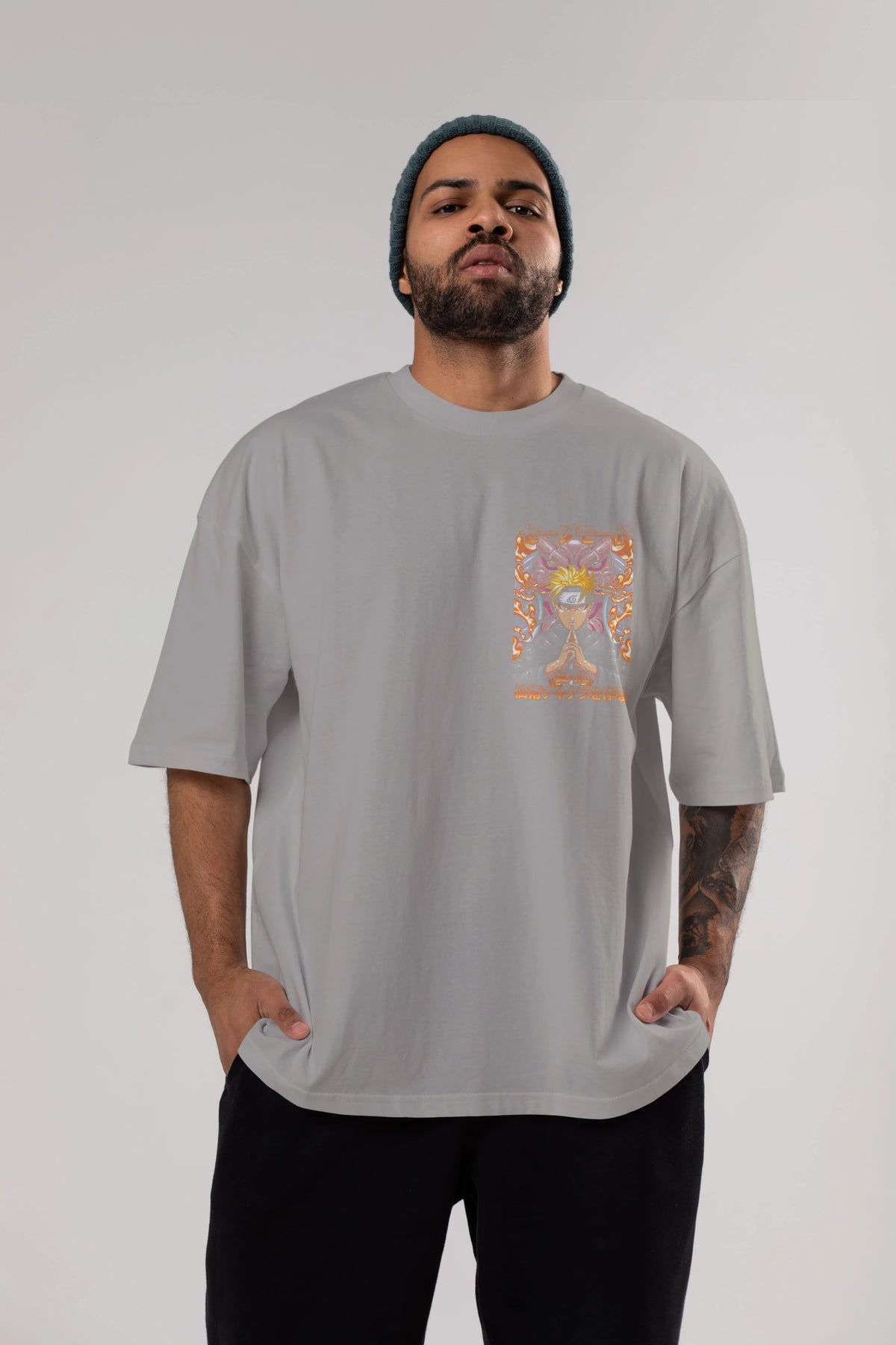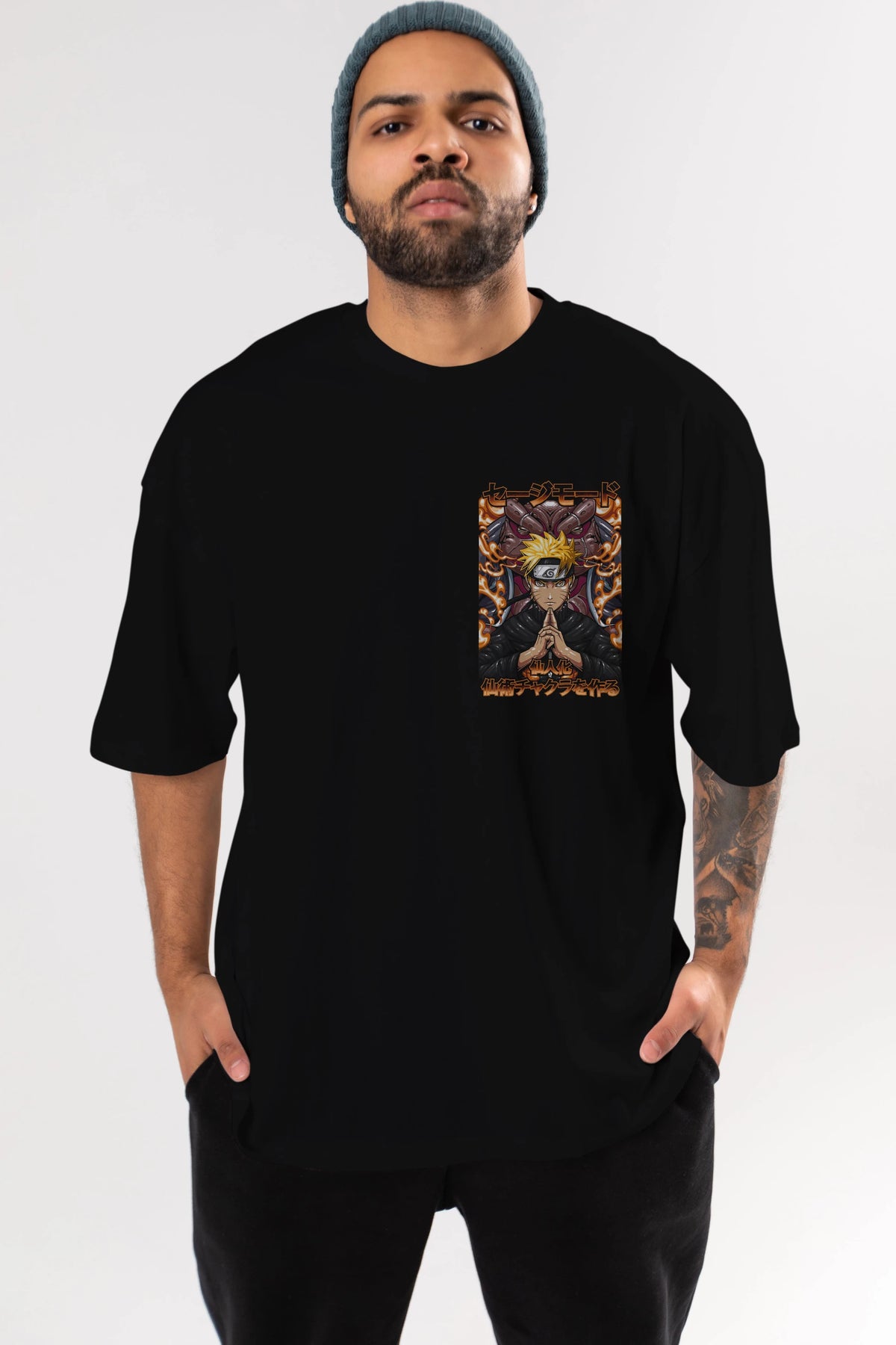 NARUTO (10) Ön Sol Baskılı Oversize t-shirt Erkek Kadın Unisex %100 Pamuk Bisiklet Yaka tişort