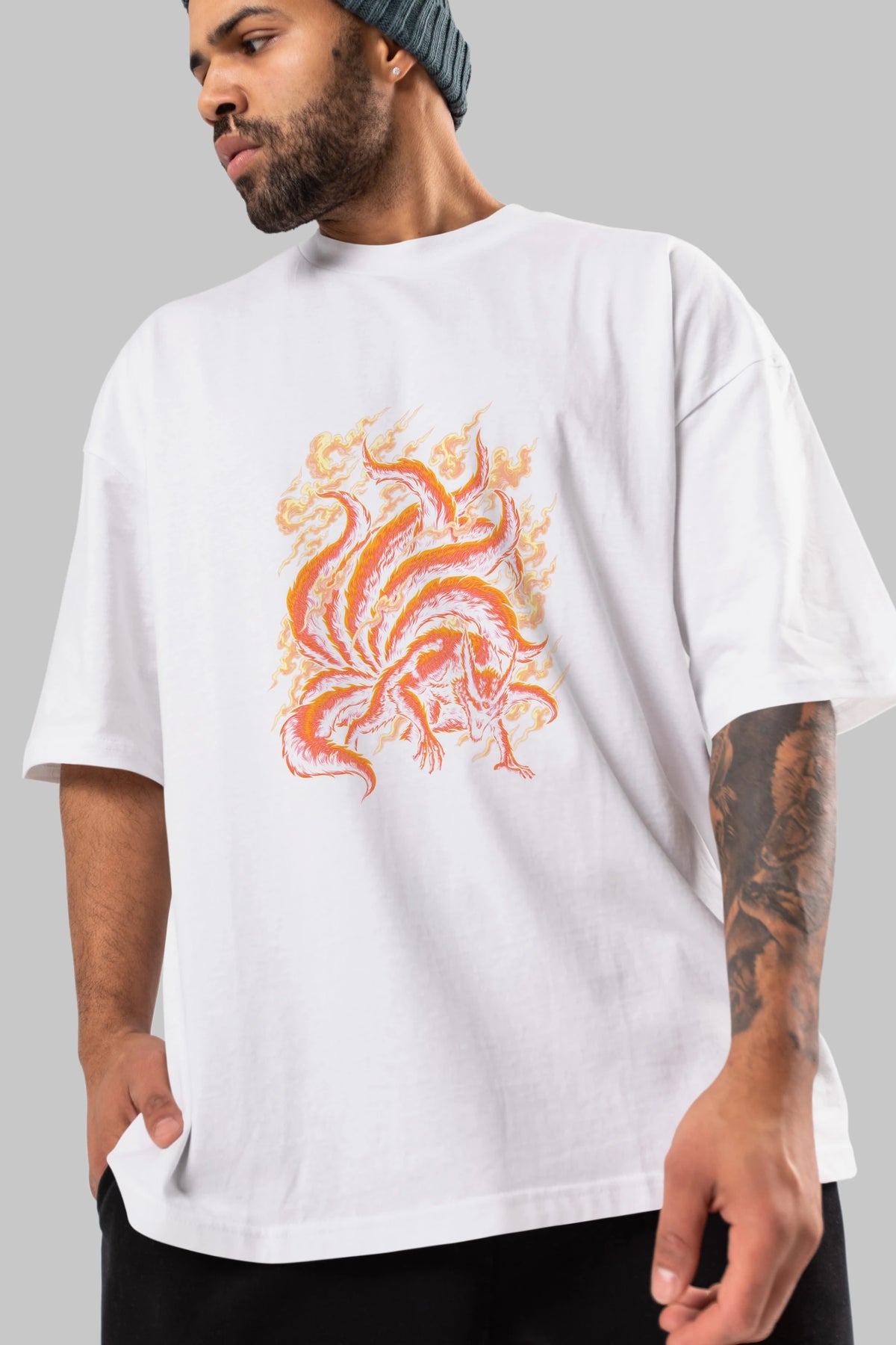 NARUTO KYUUBI Anime Ön Baskılı Oversize t-shirt %100 pamuk Erkek Kadın Unisex
