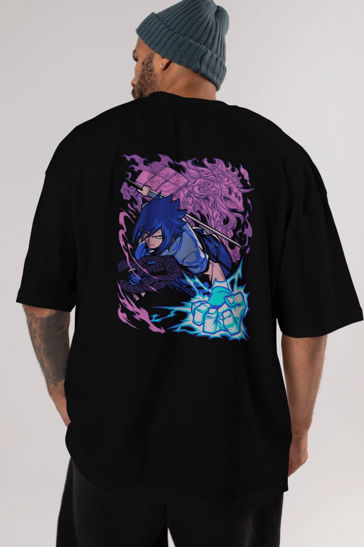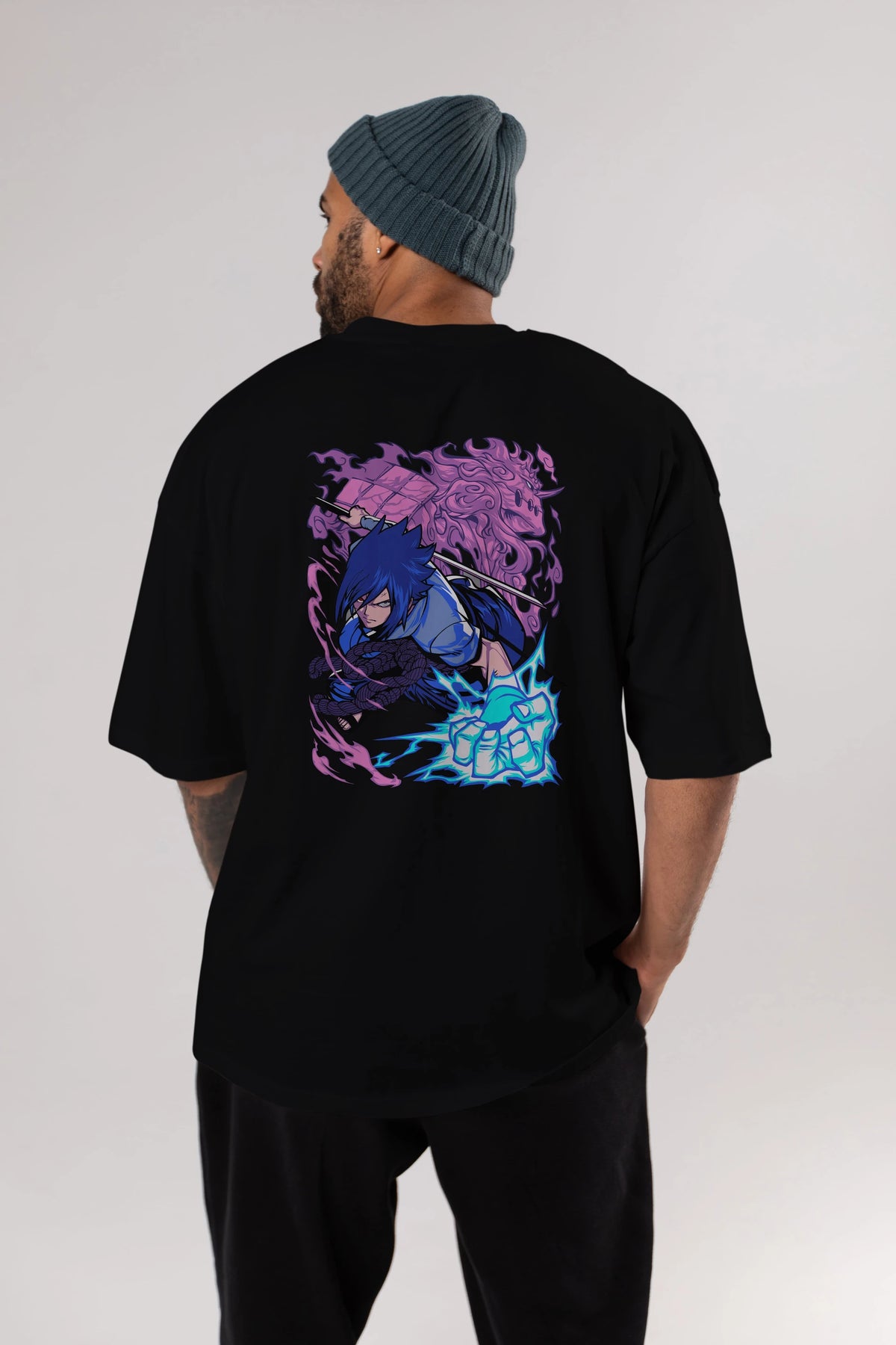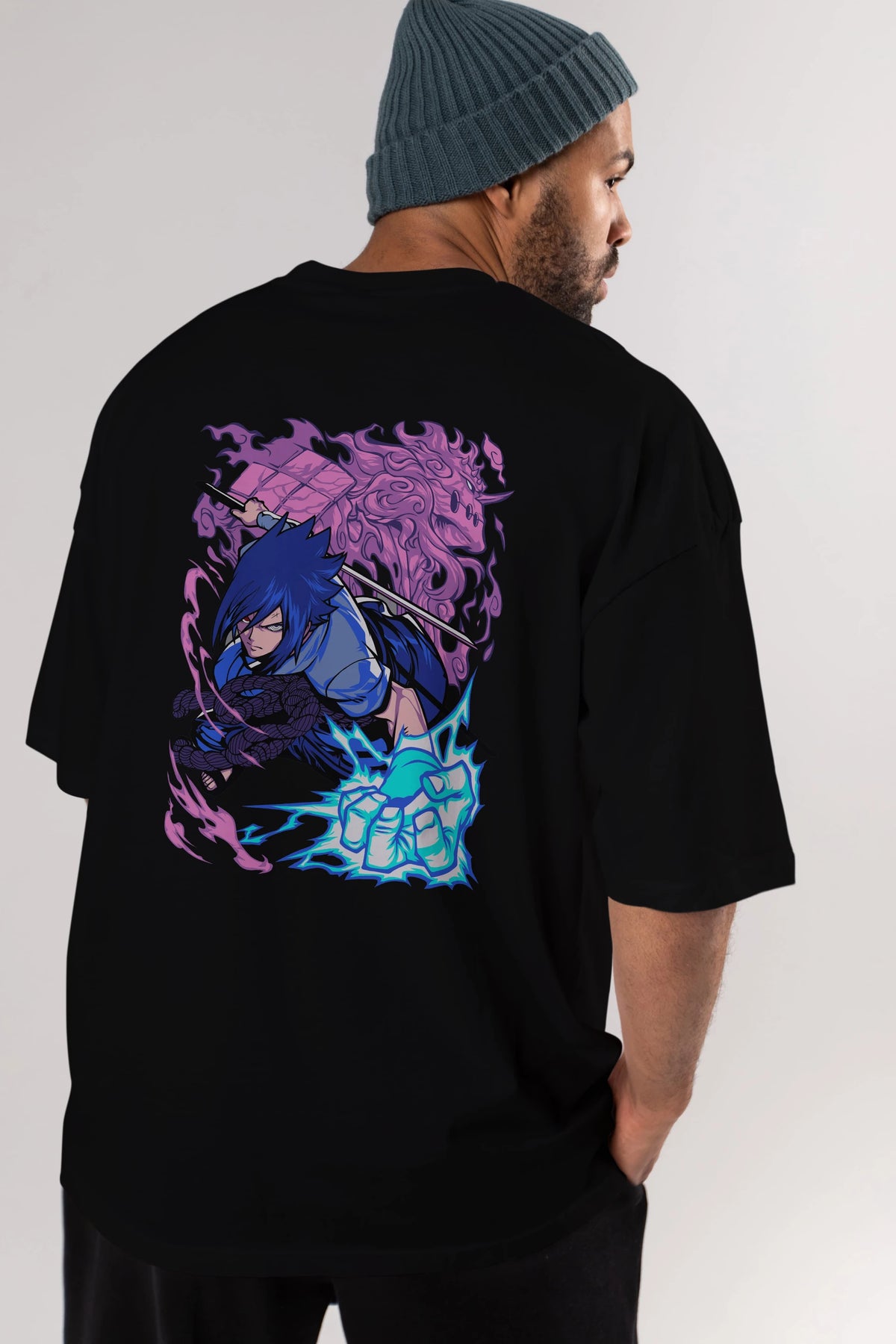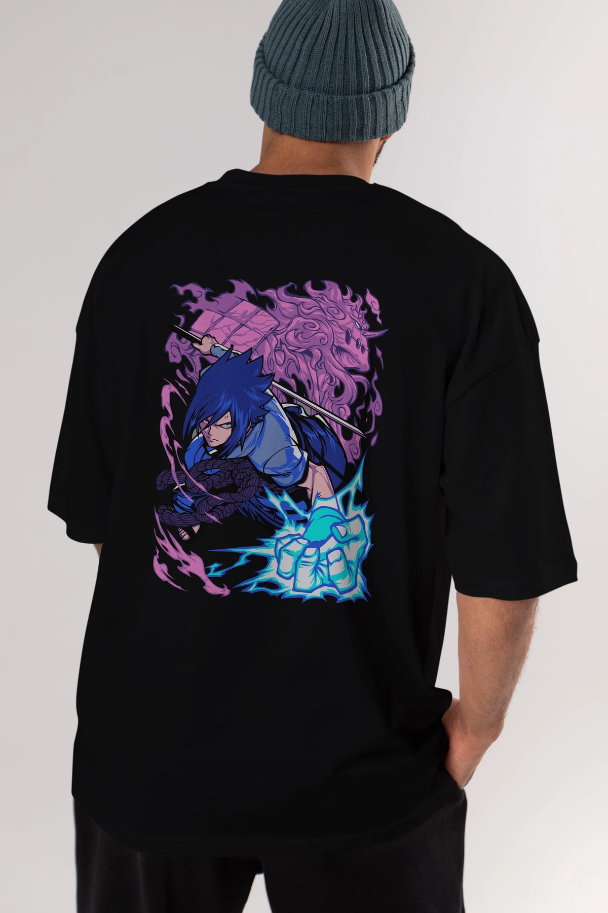 NARUTO SASUKE UCHIHA 2 Anime Arka Baskılı Oversize t-shirt Erkek Kadın Unisex