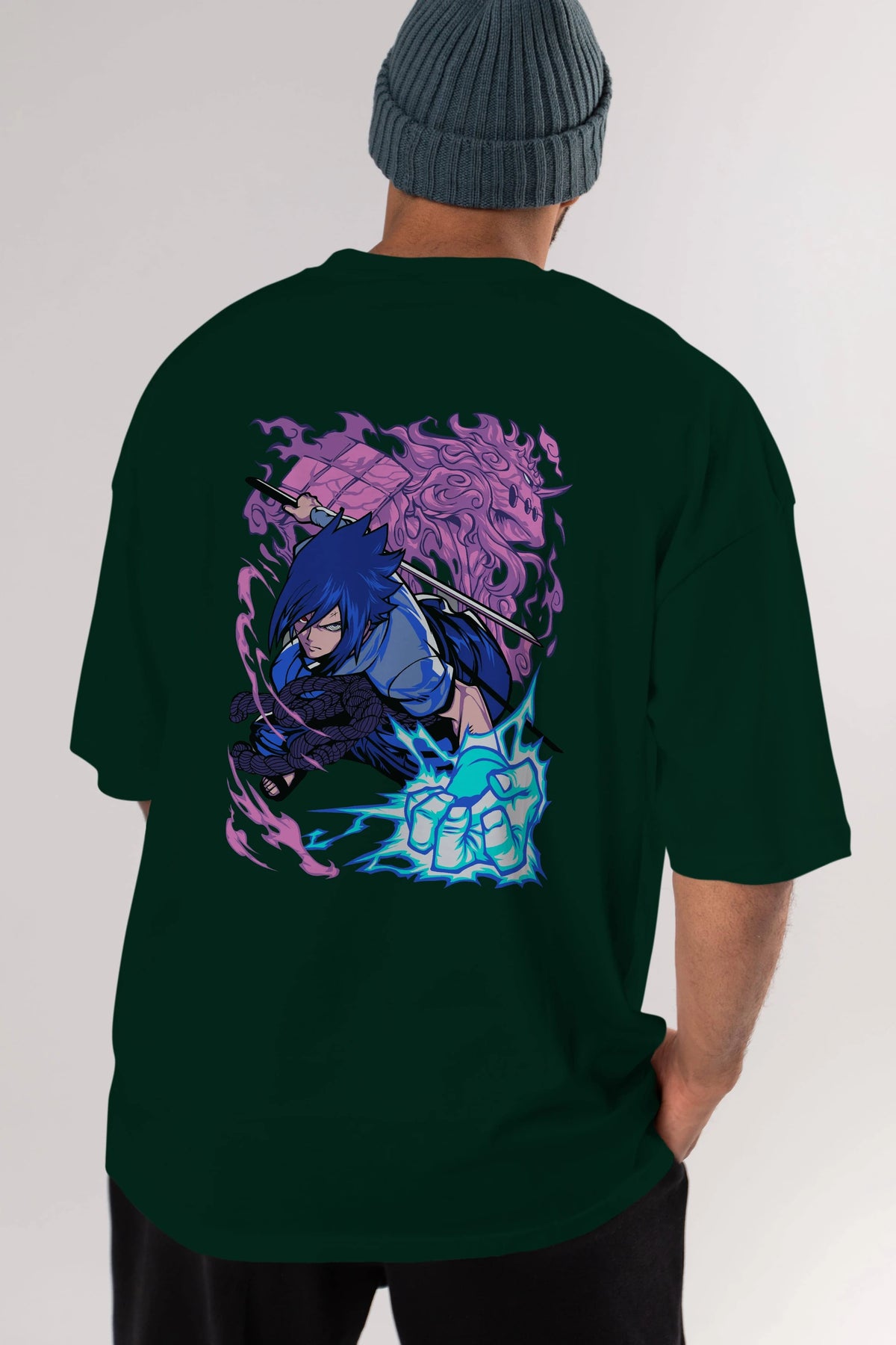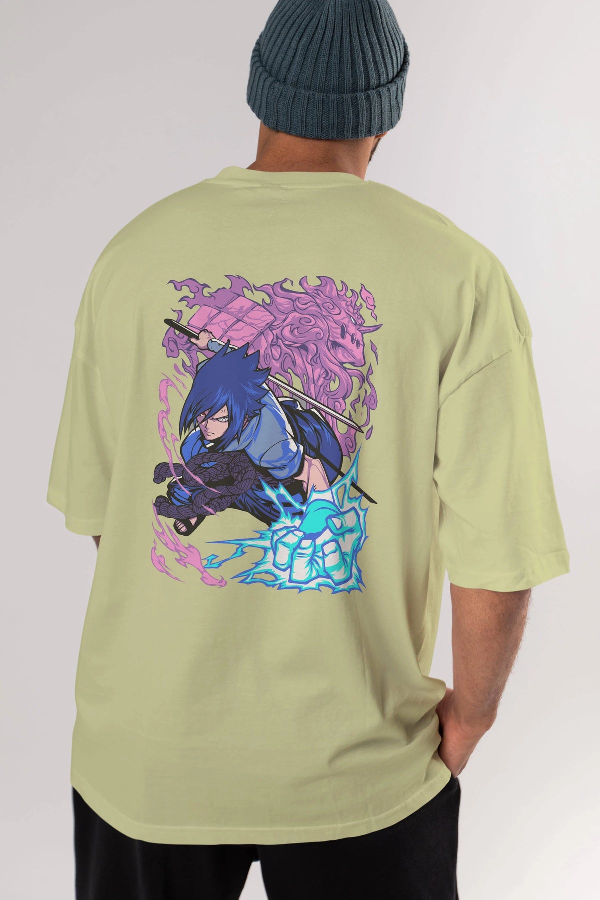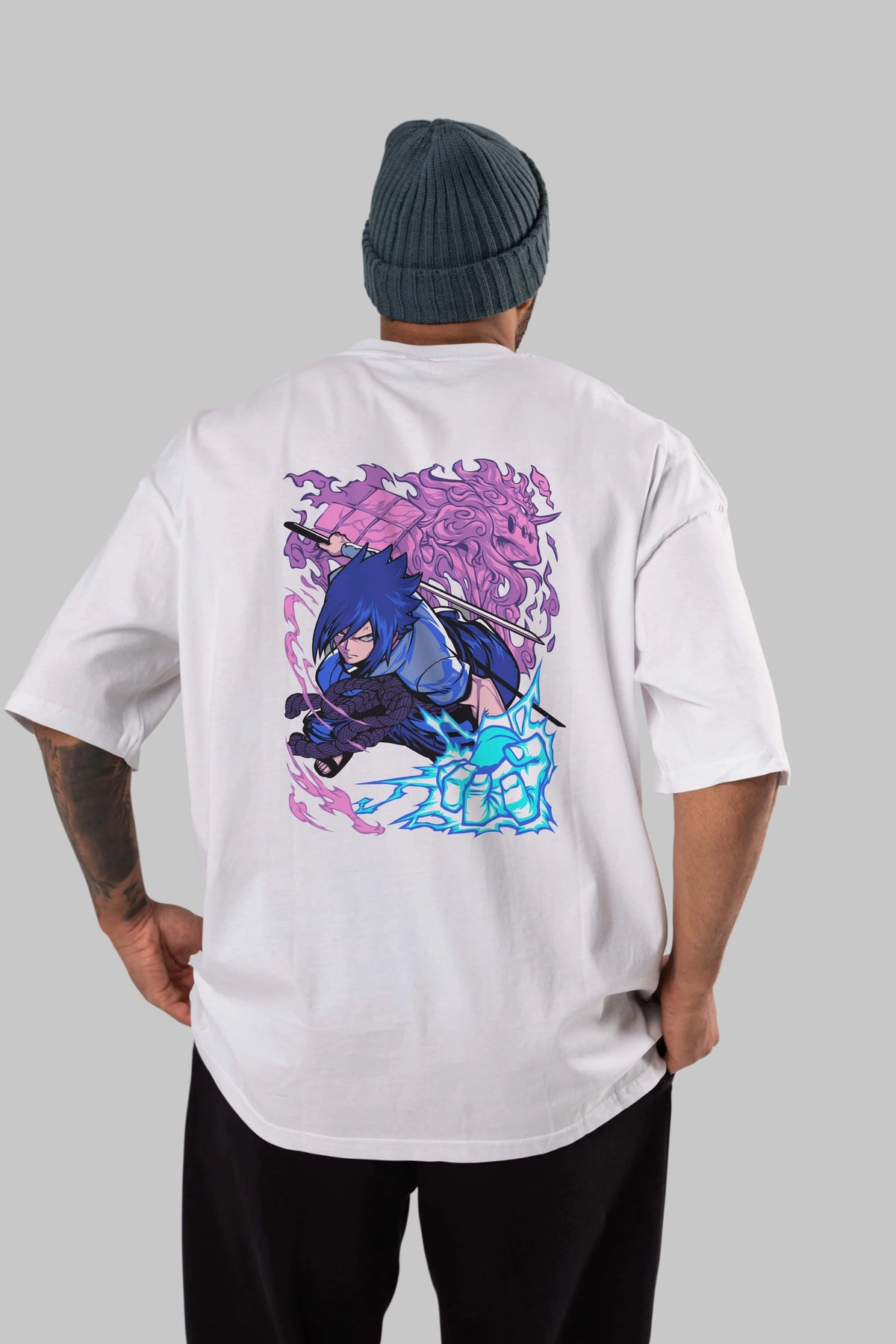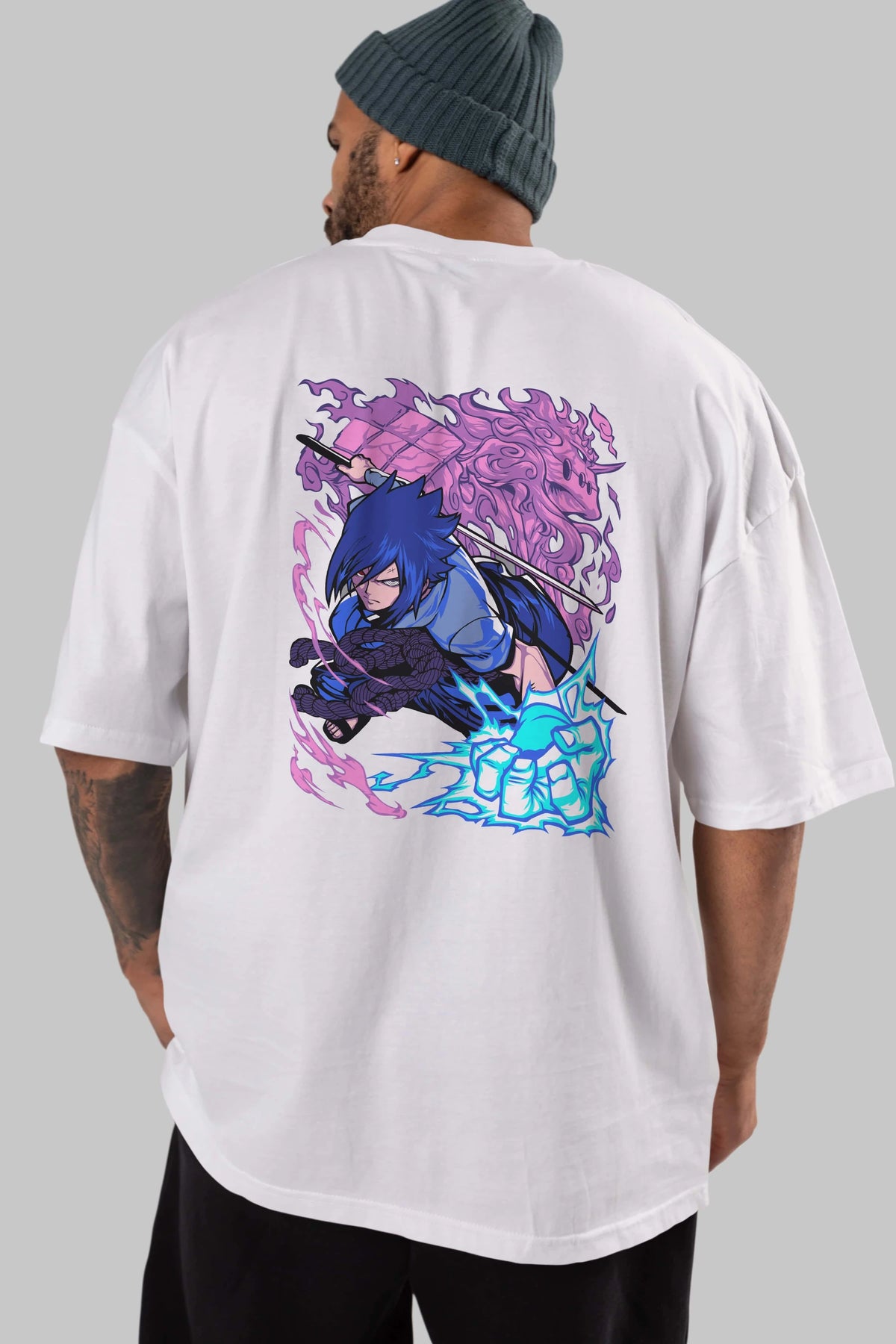 NARUTO SASUKE UCHIHA 2 Anime Arka Baskılı Oversize t-shirt Erkek Kadın Unisex