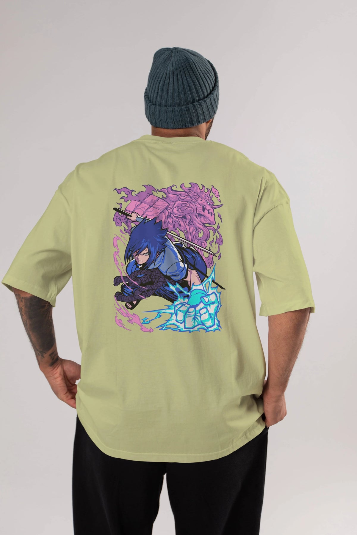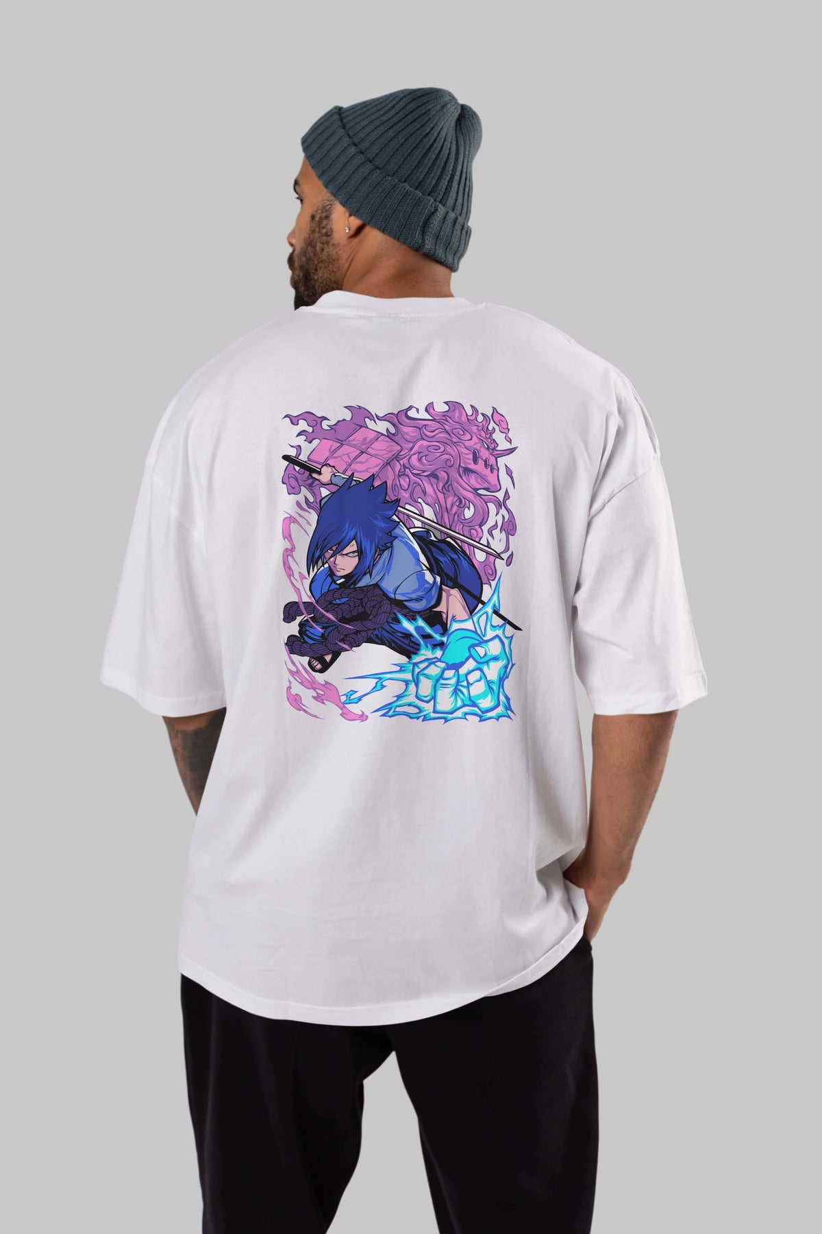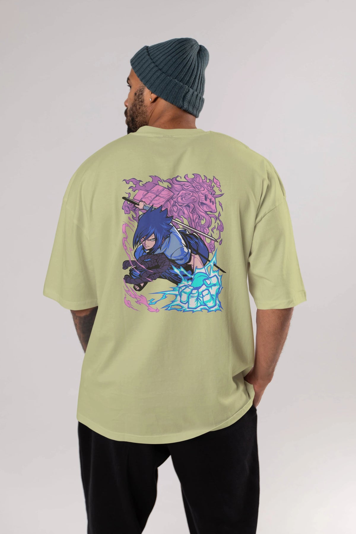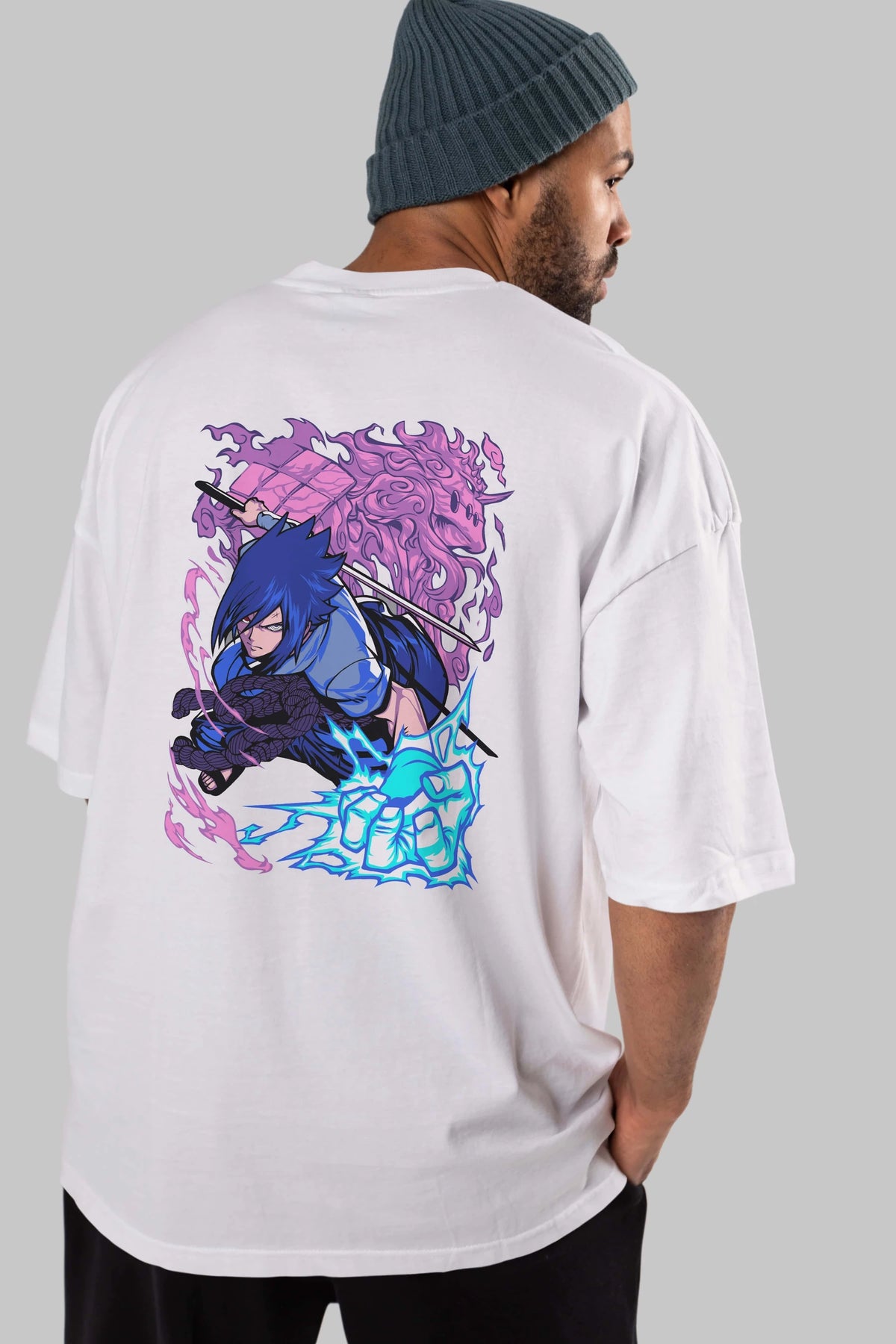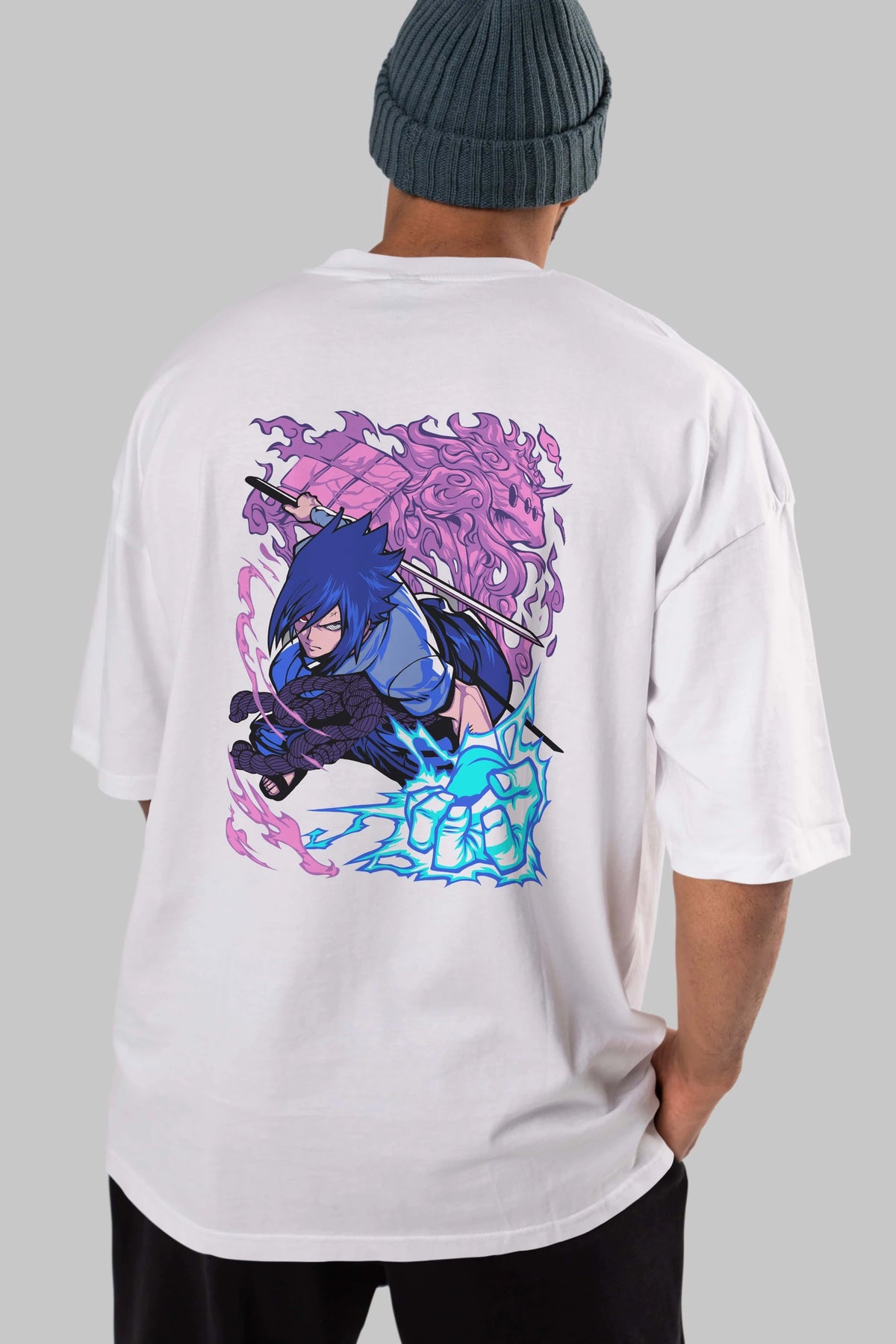 NARUTO SASUKE UCHIHA 2 Anime Arka Baskılı Oversize t-shirt Erkek Kadın Unisex