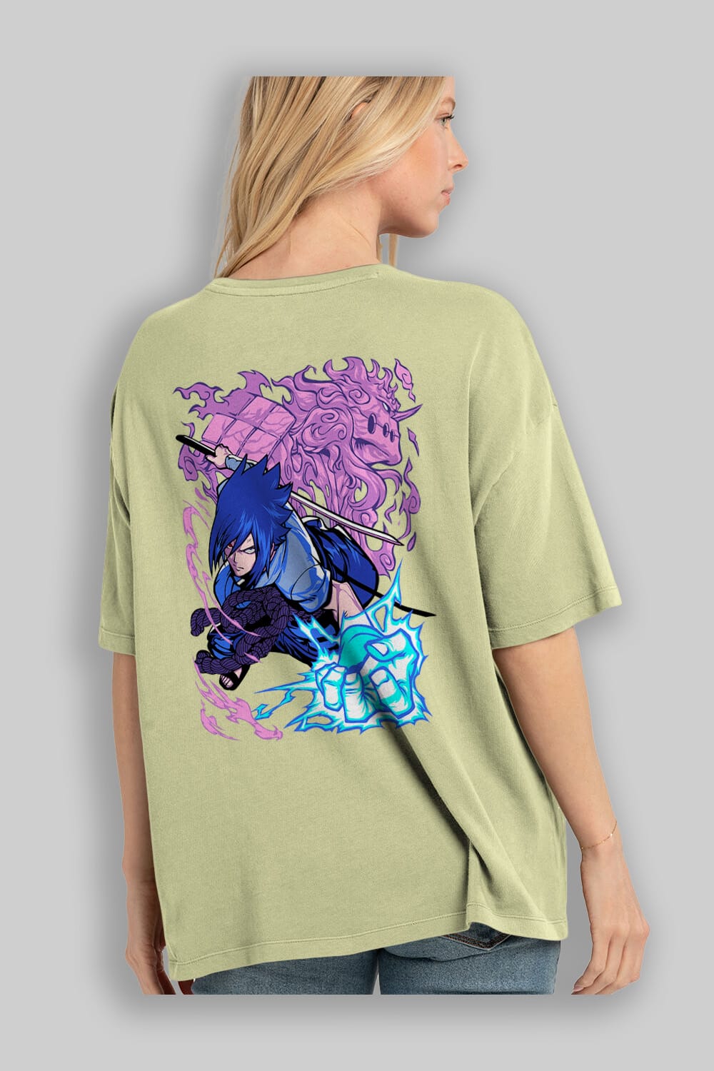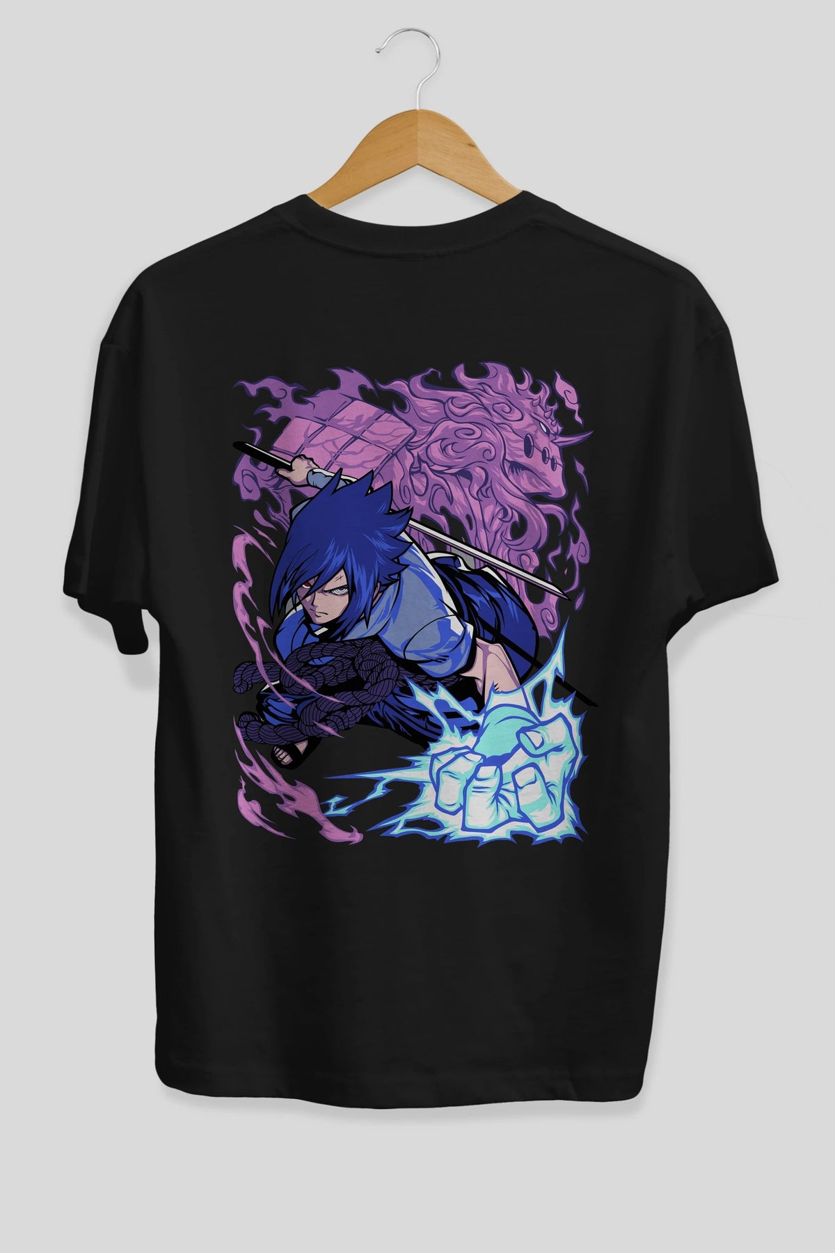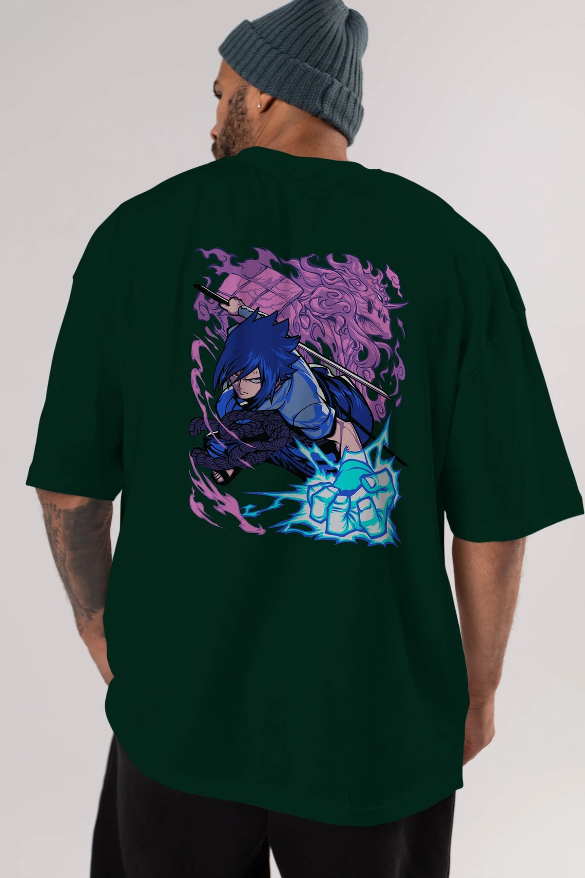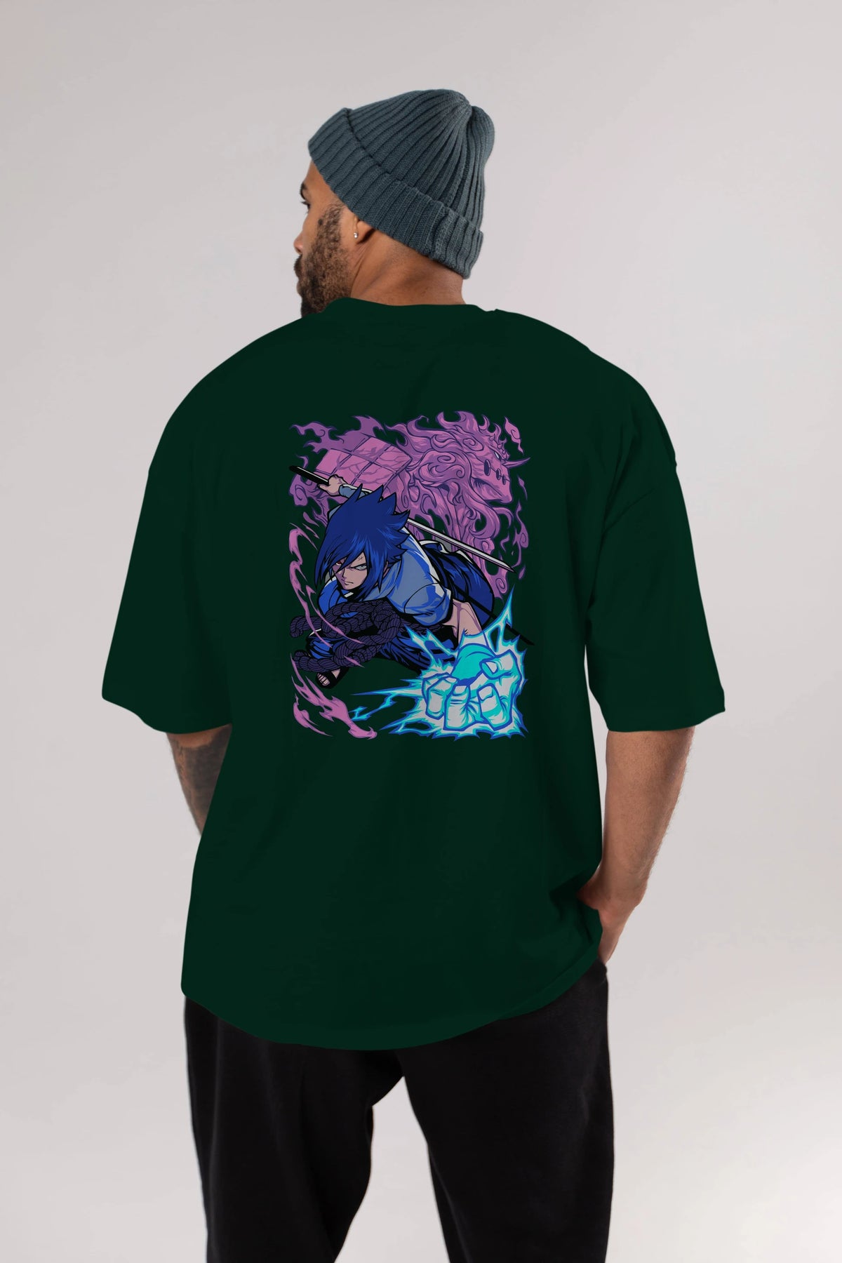 NARUTO SASUKE UCHIHA 2 Anime Arka Baskılı Oversize t-shirt Erkek Kadın Unisex