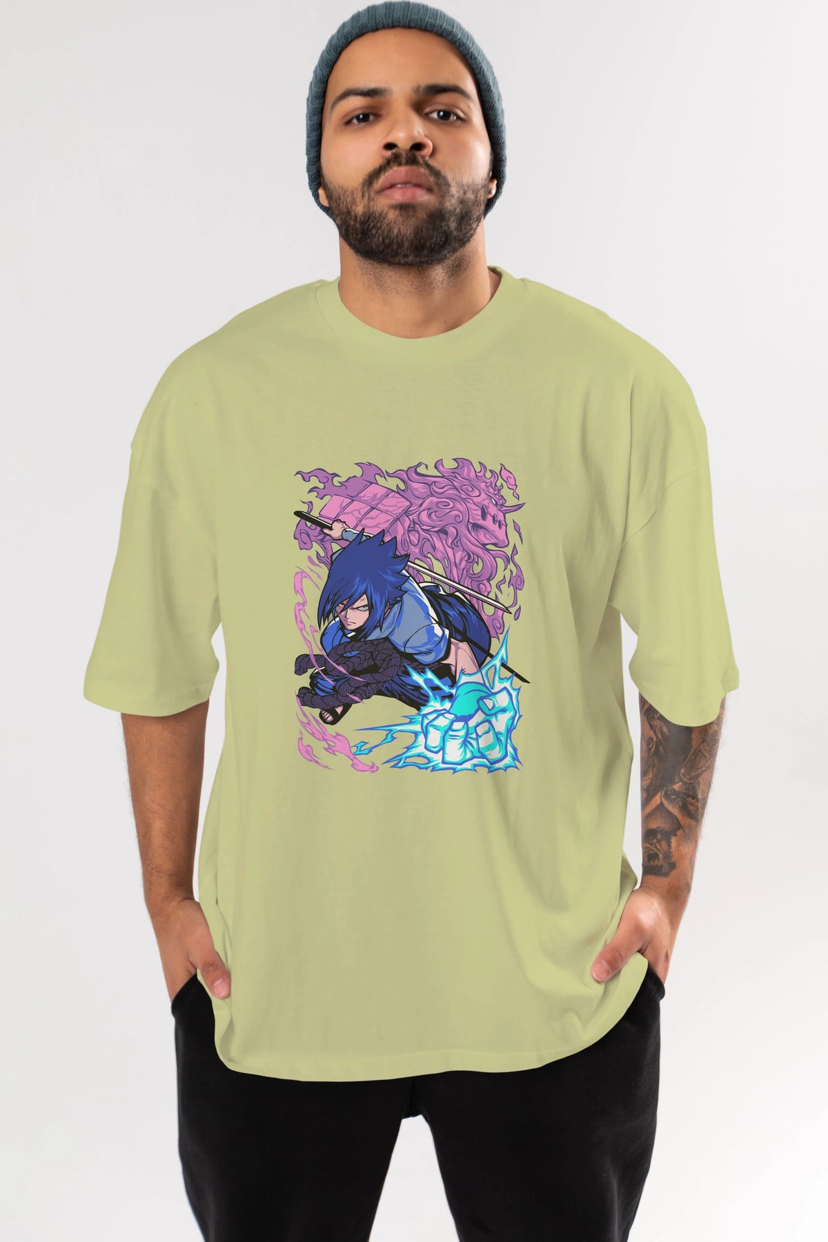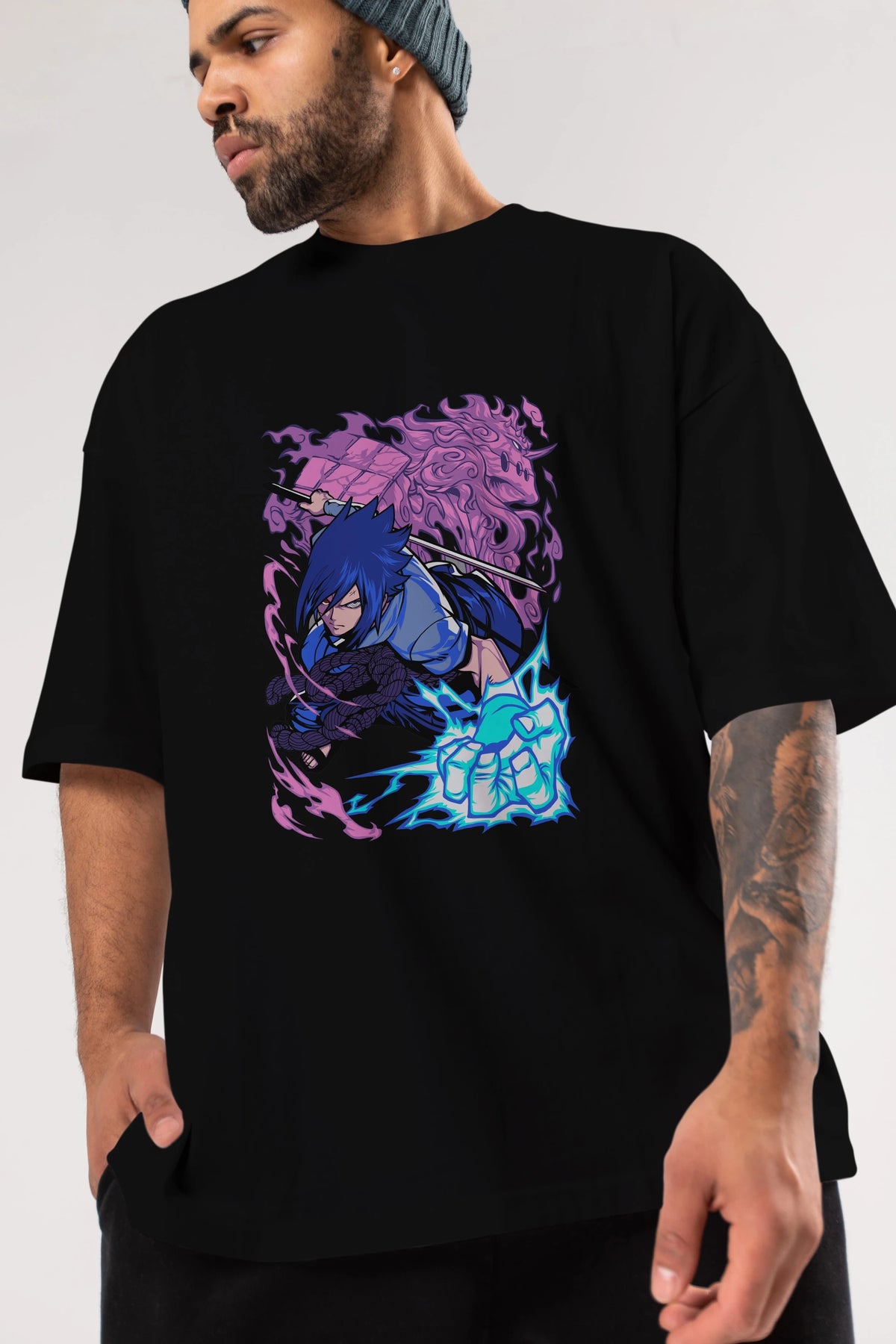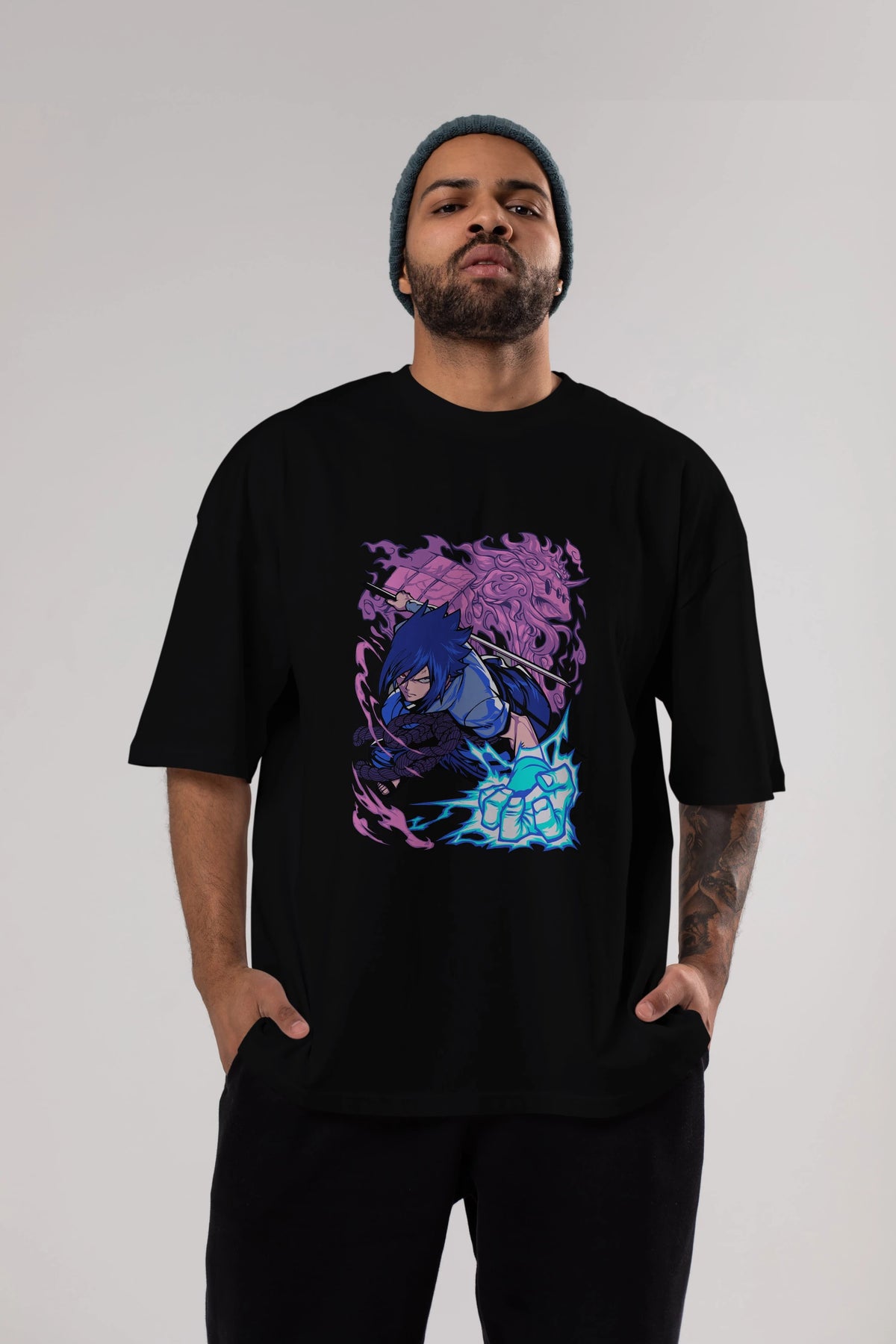 NARUTO SASUKE UCHIHA 2 Anime Ön Baskılı Oversize t-shirt %100 pamuk Erkek Kadın Unisex