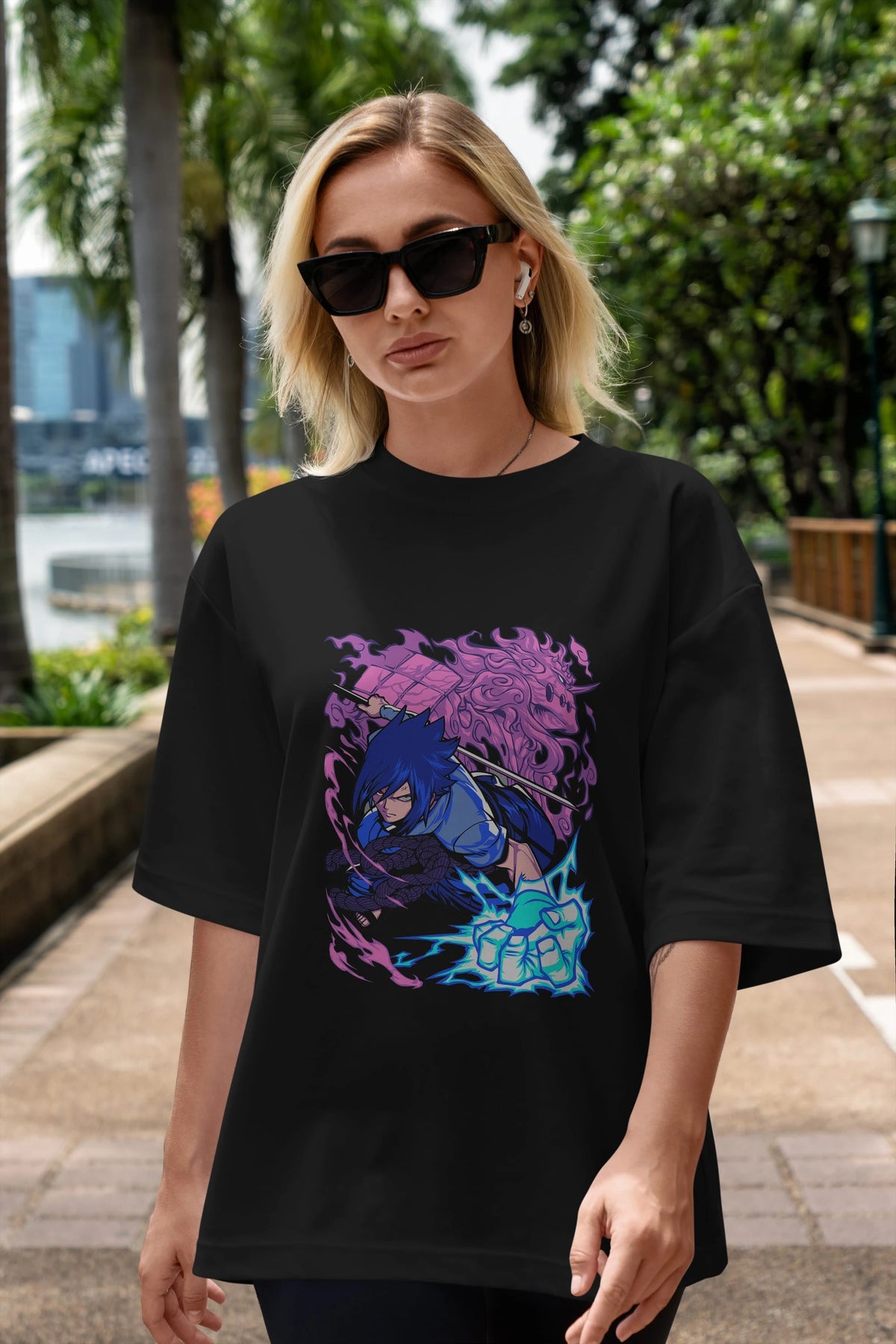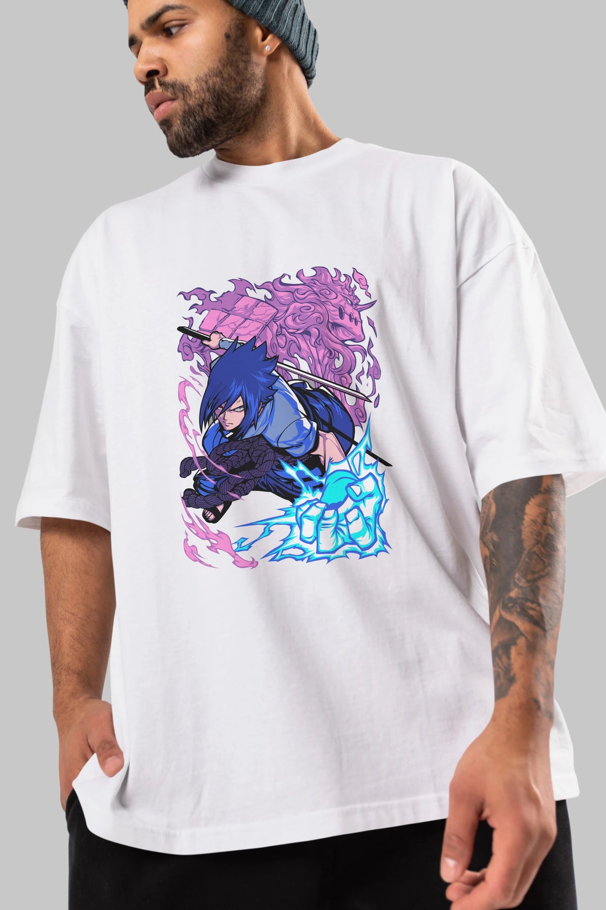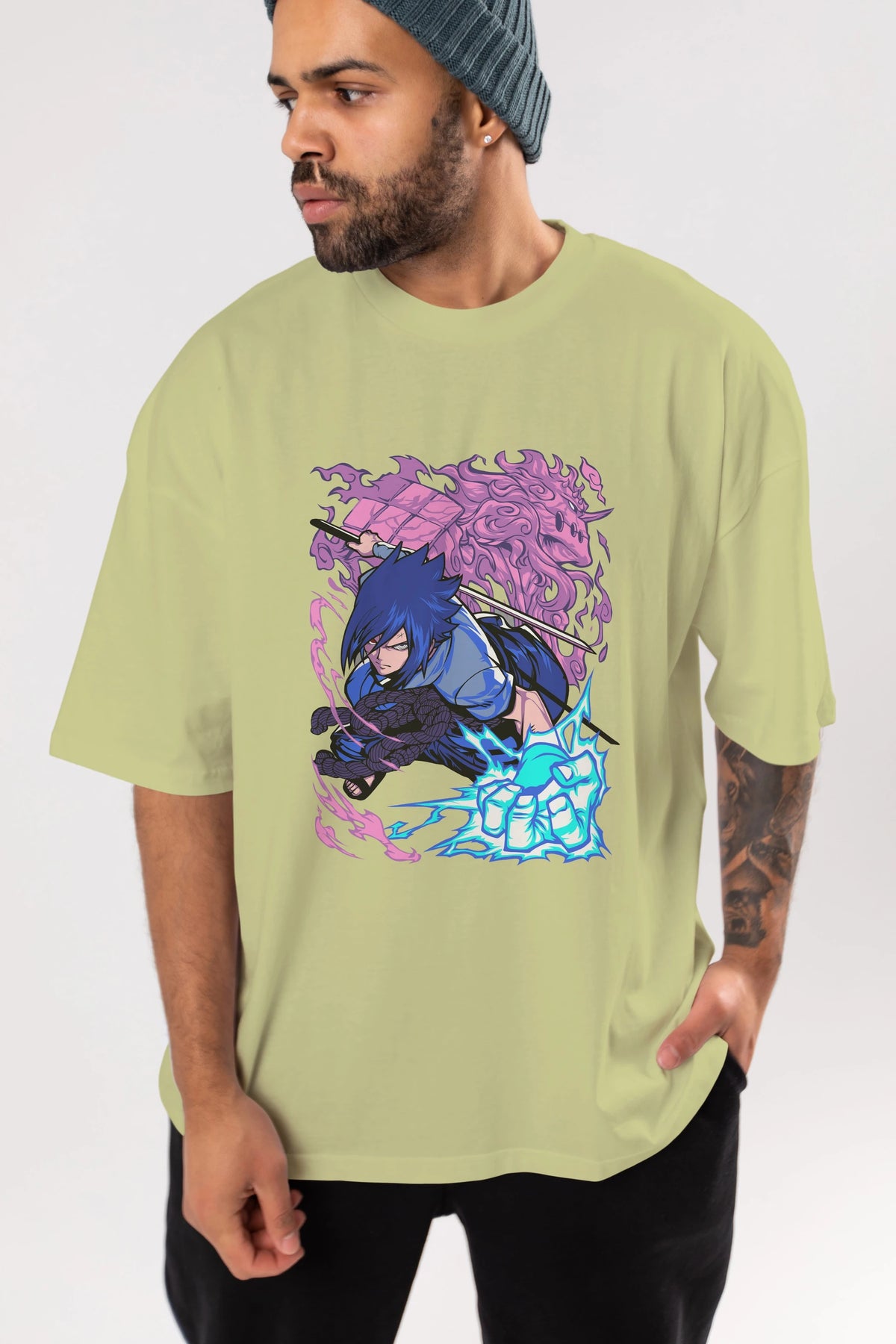 NARUTO SASUKE UCHIHA 2 Anime Ön Baskılı Oversize t-shirt %100 pamuk Erkek Kadın Unisex