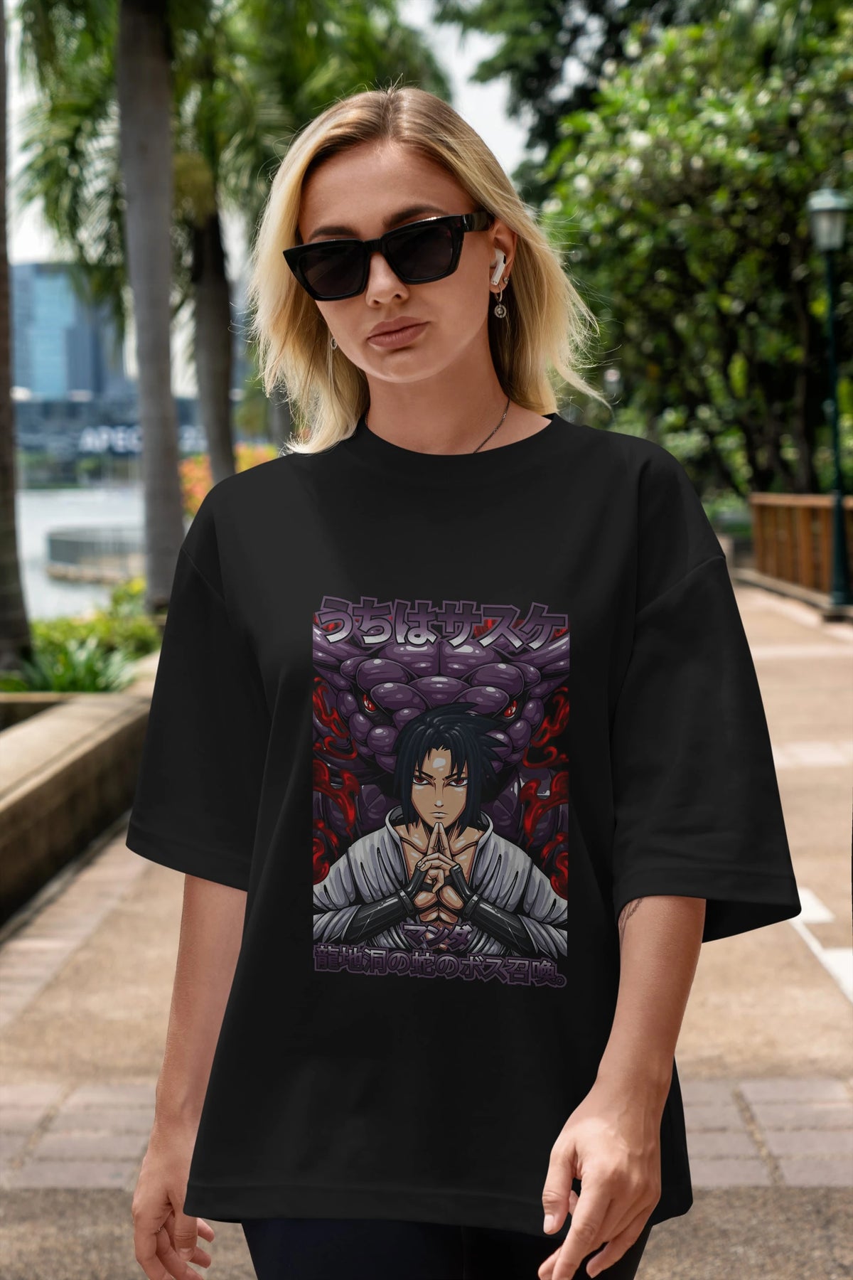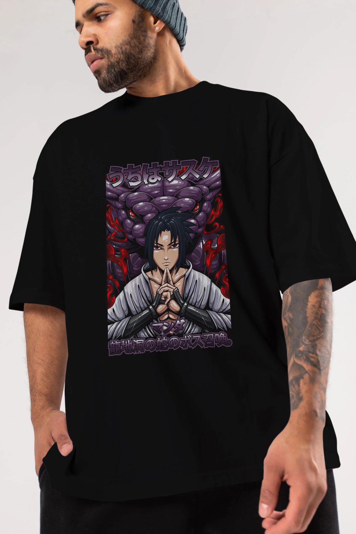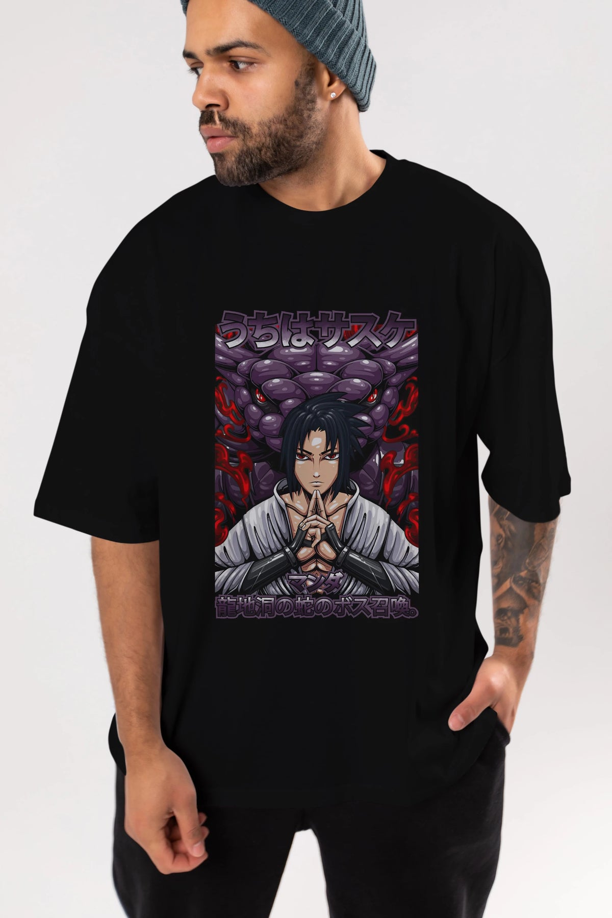 NARUTO SASUKE UCHIHA Anime Ön Baskılı Oversize t-shirt %100 pamuk Erkek Kadın Unisex