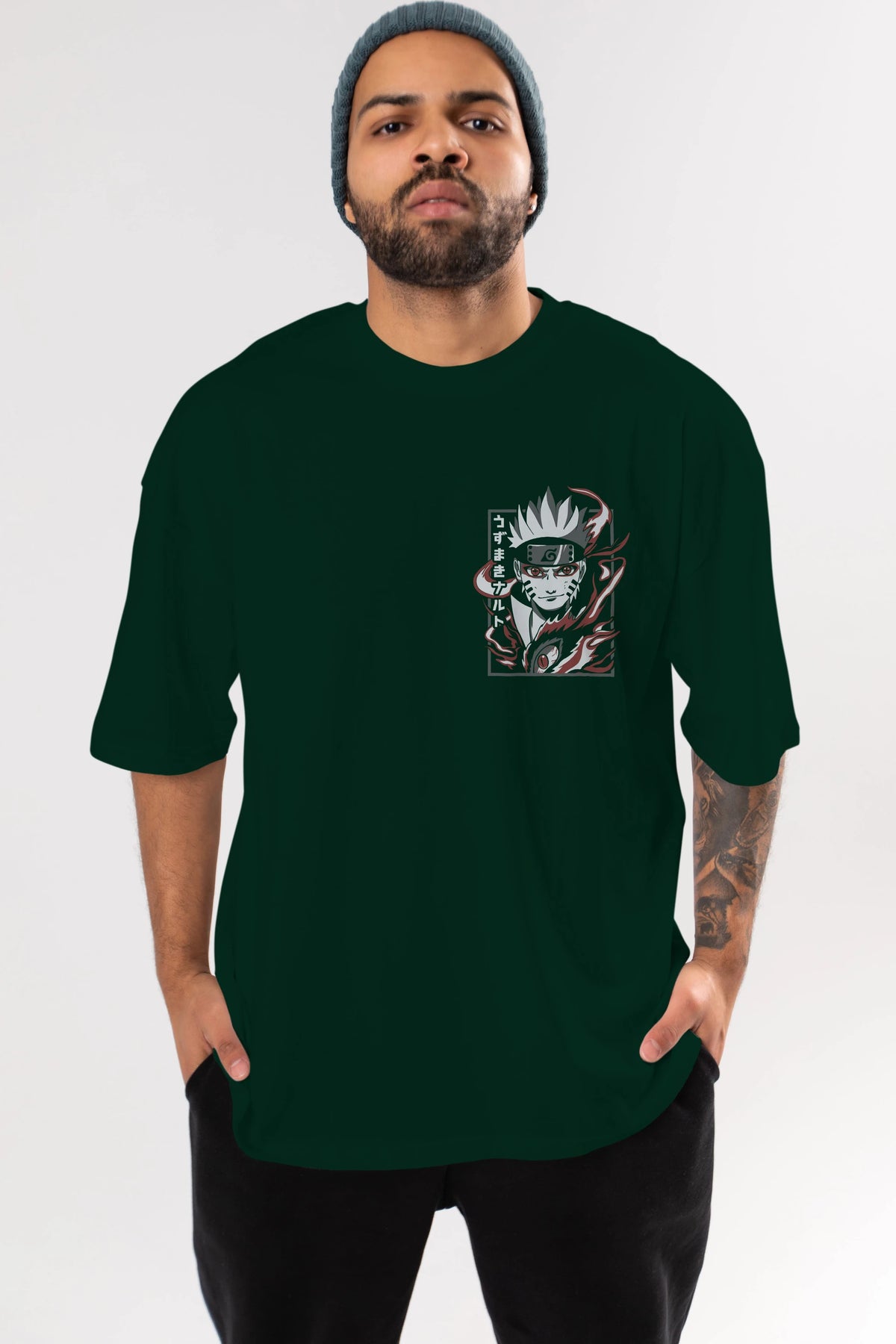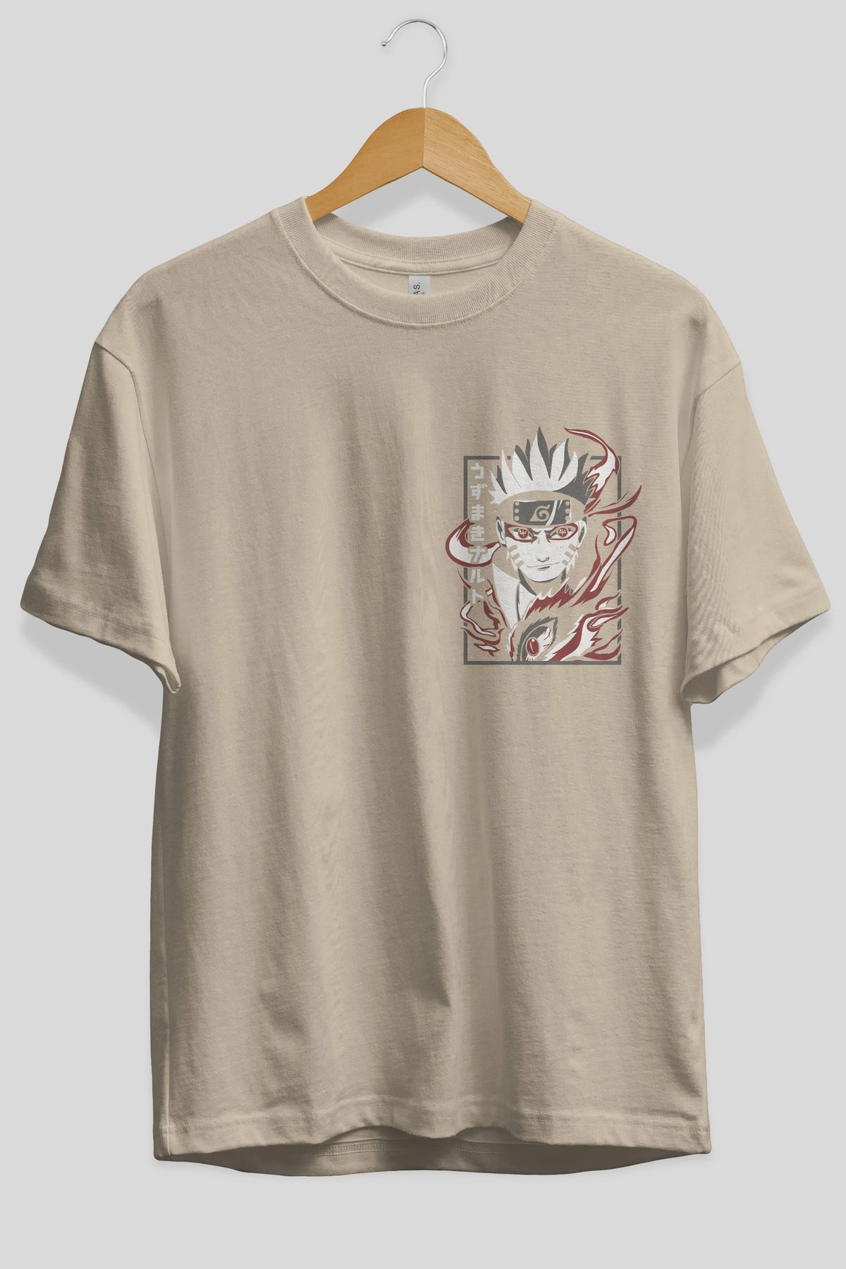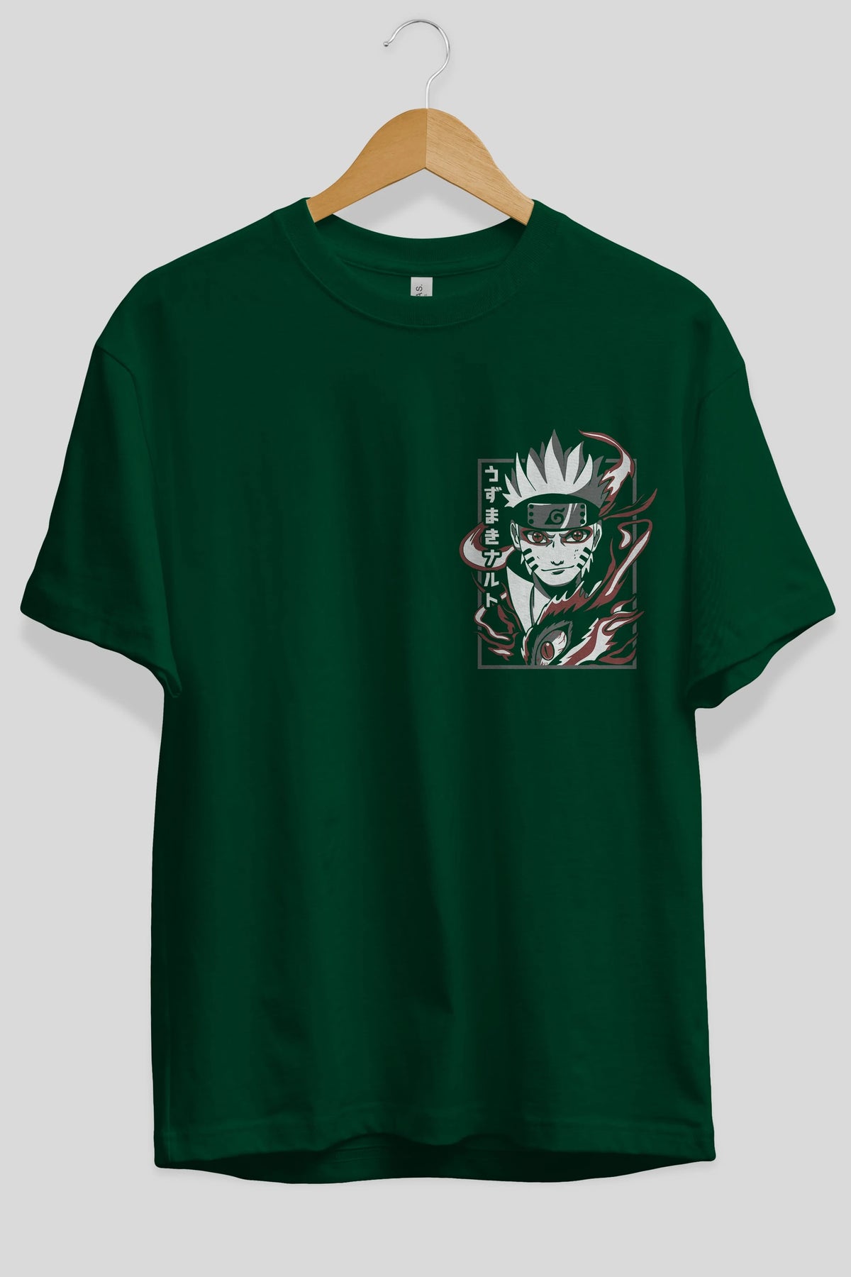 NarutoMod Ön Sol Baskılı Oversize t-shirt Erkek Kadın Unisex %100 Pamuk Bisiklet Yaka tişort