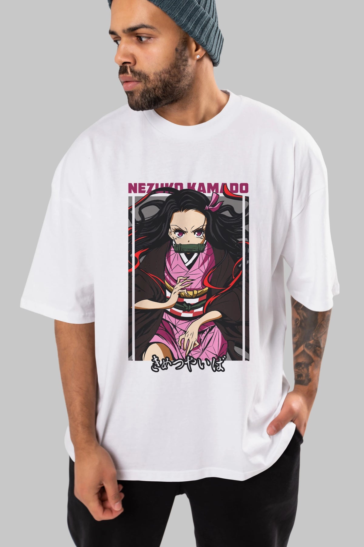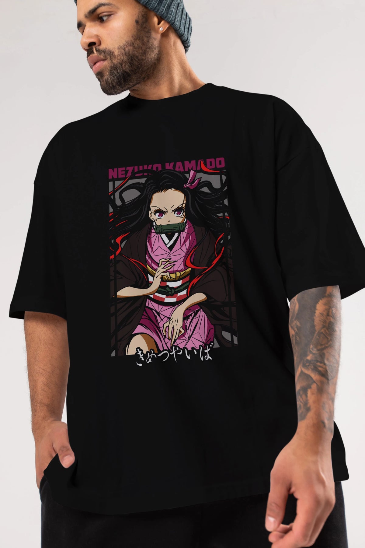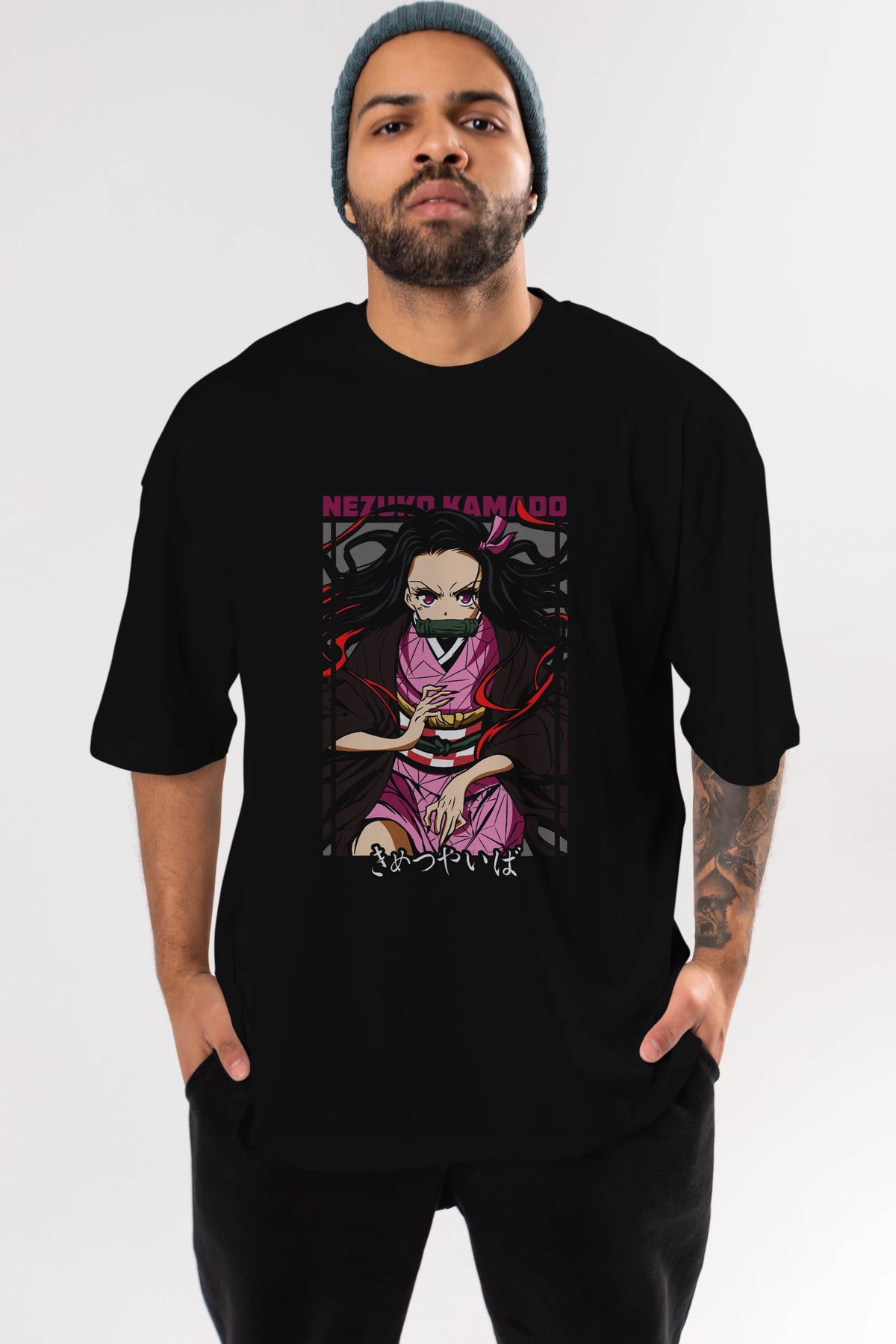 Nezuko Kamado 1 Anime Ön Baskılı Oversize t-shirt %100 pamuk Erkek Kadın Unisex