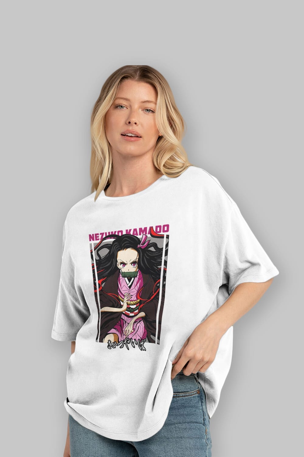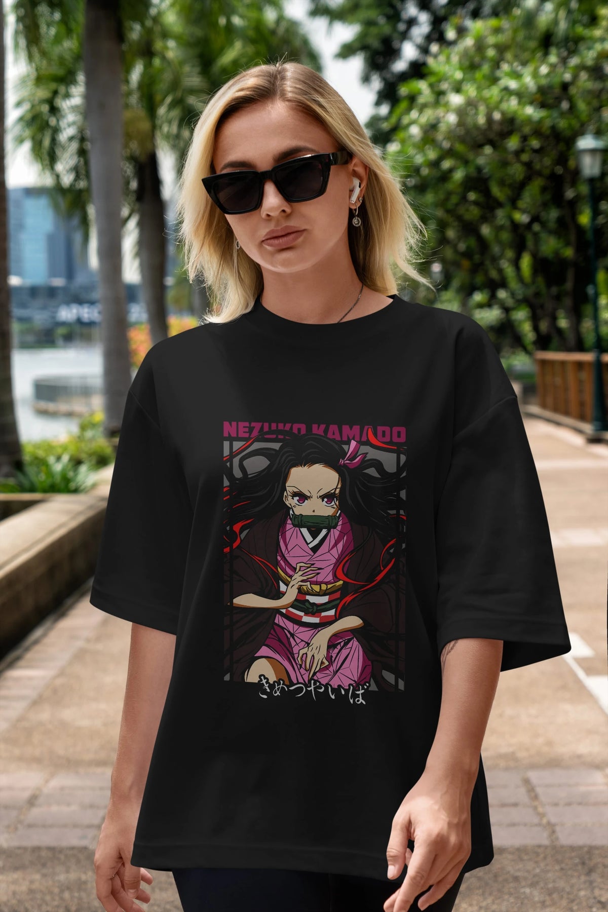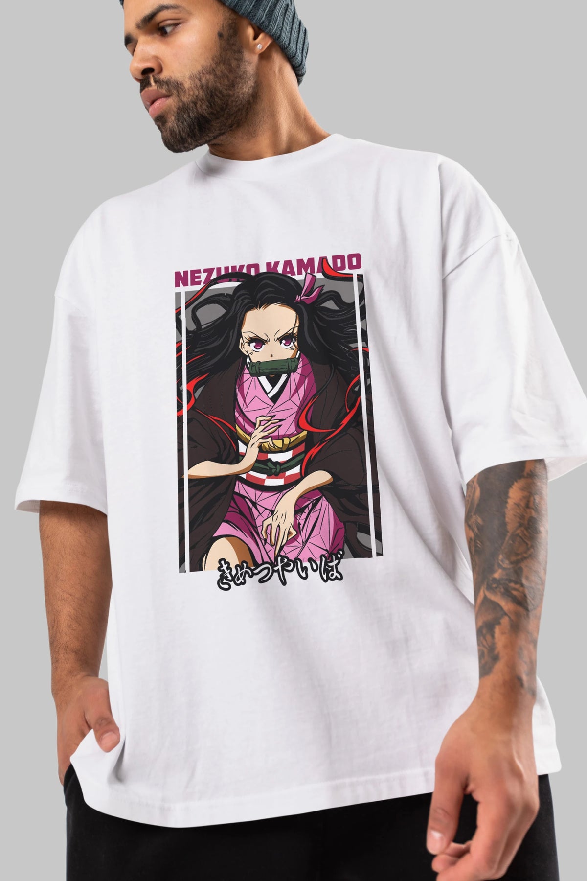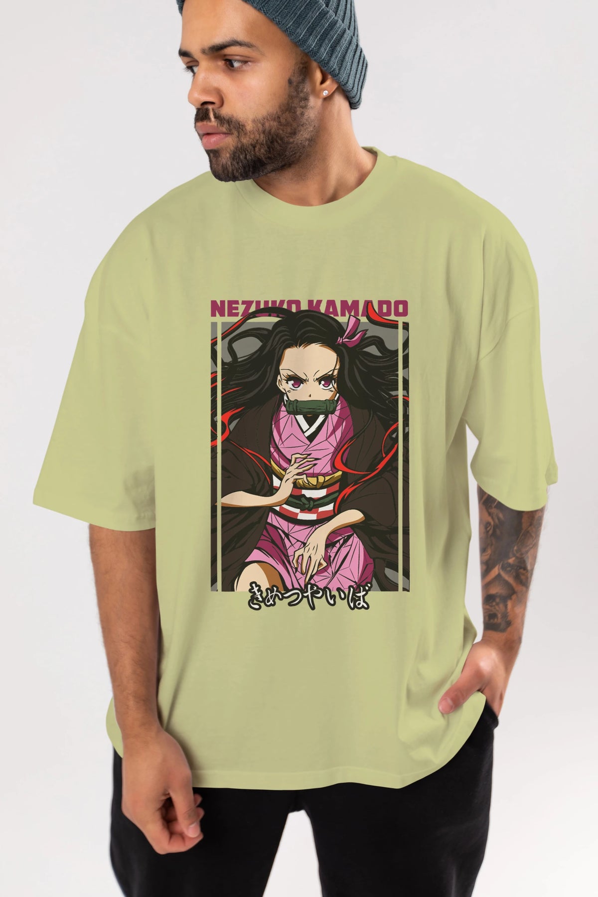 Nezuko Kamado 1 Anime Ön Baskılı Oversize t-shirt %100 pamuk Erkek Kadın Unisex