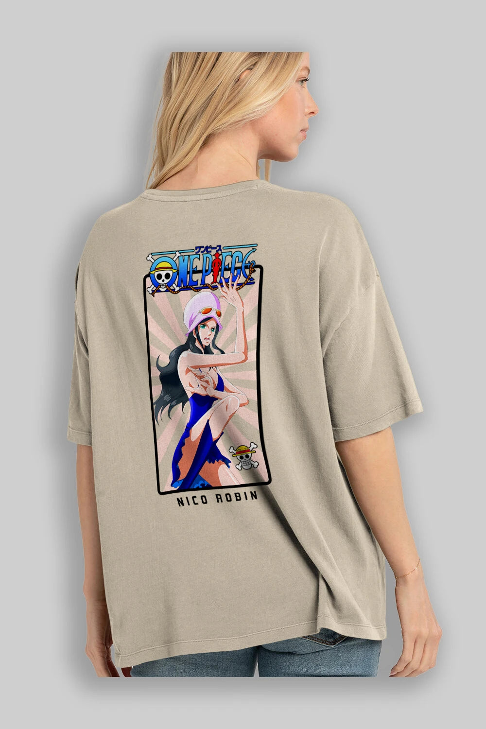 Nico Robin Anime Arka Baskılı Oversize t-shirt Erkek Kadın Unisex %100 pamuk tişort