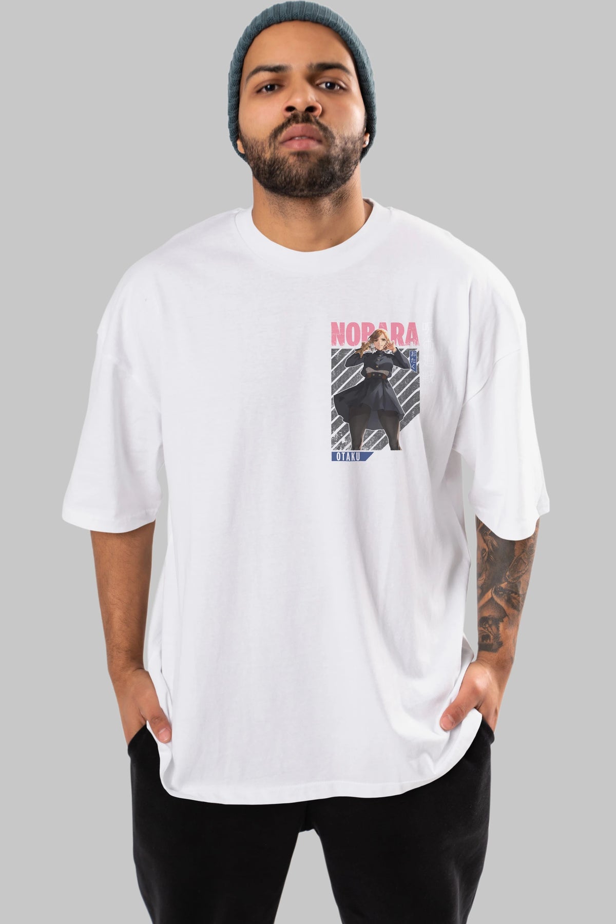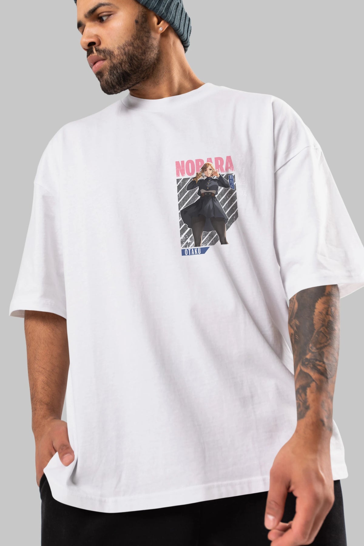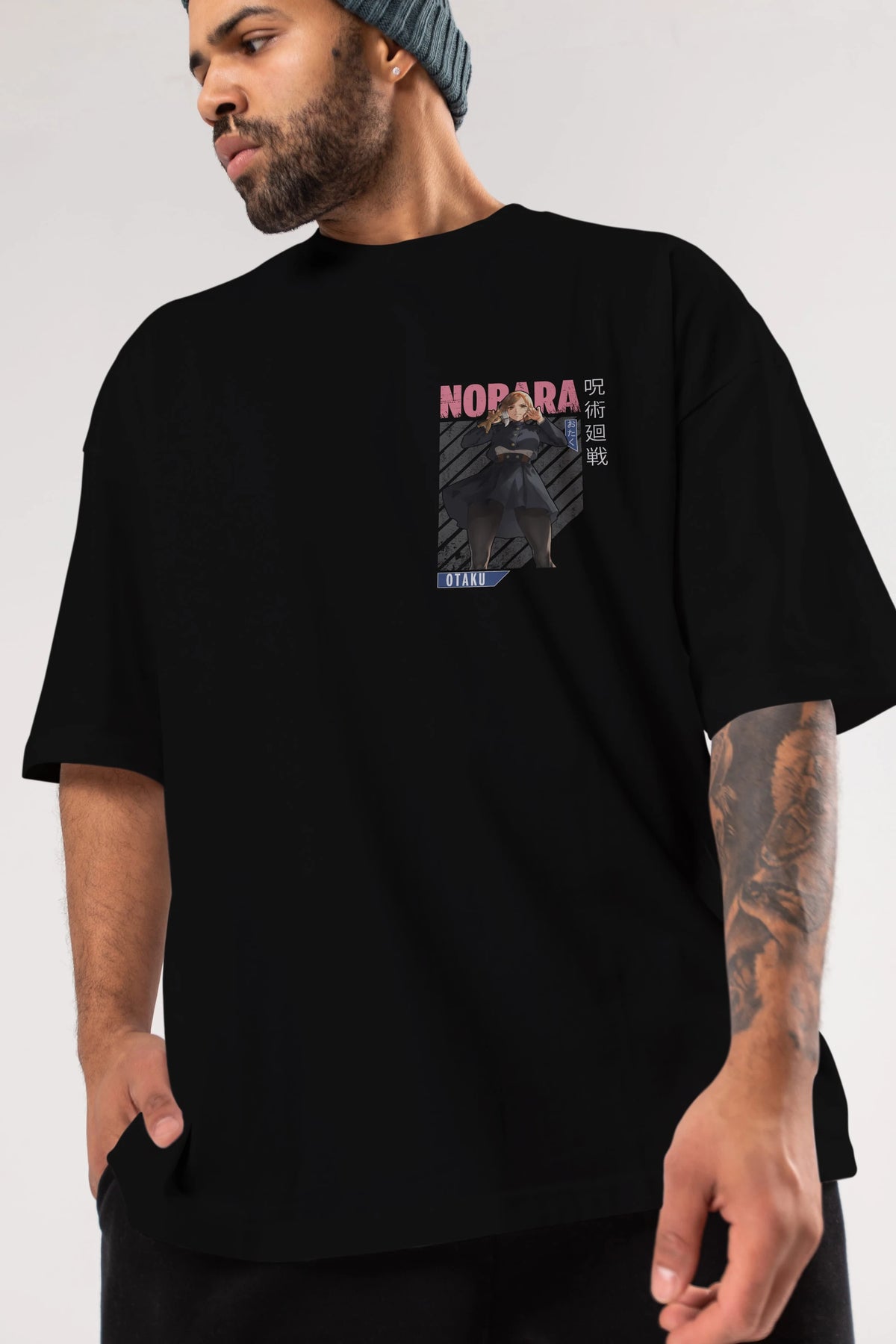 Nobara Kugisaki 4 Ön Sol Baskılı Oversize t-shirt Erkek Kadın Unisex %100 Pamuk Bisiklet Yaka tişort