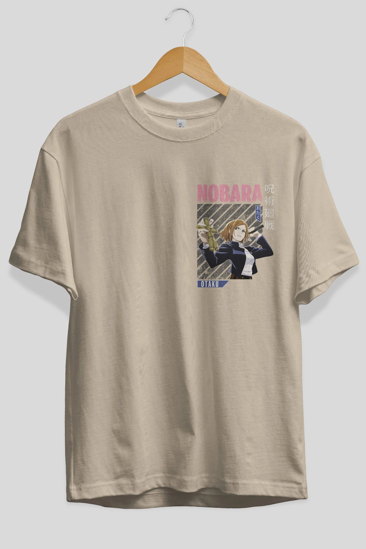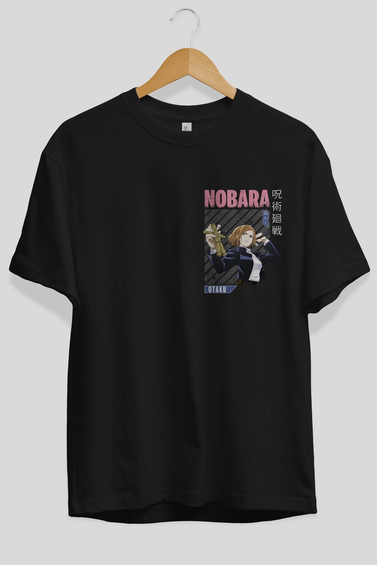 Nobara Kugisaki 6 Ön Sol Baskılı Oversize t-shirt Erkek Kadın Unisex %100 Pamuk Bisiklet Yaka tişort