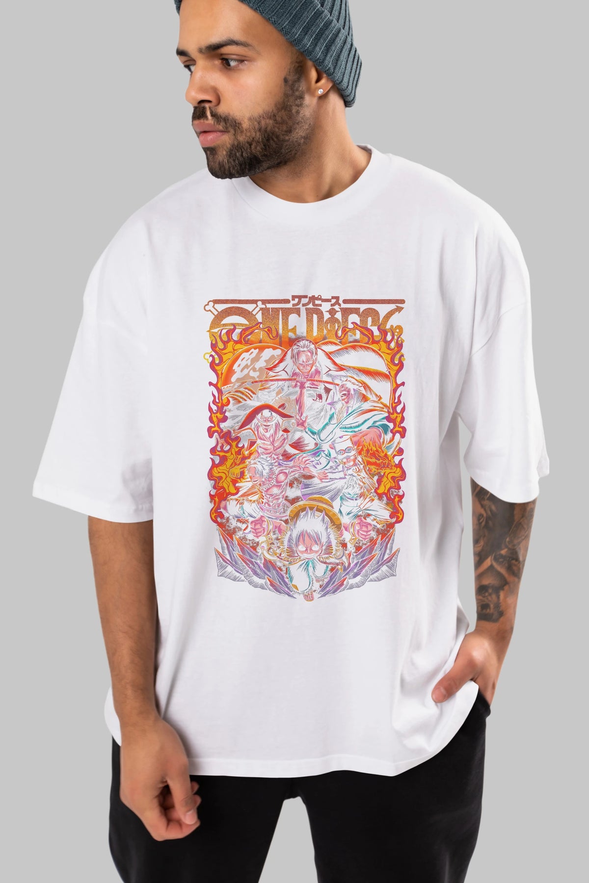 ONE PIECE (3) Anime Ön Baskılı Oversize t-shirt %100 pamuk Erkek Kadın Unisex