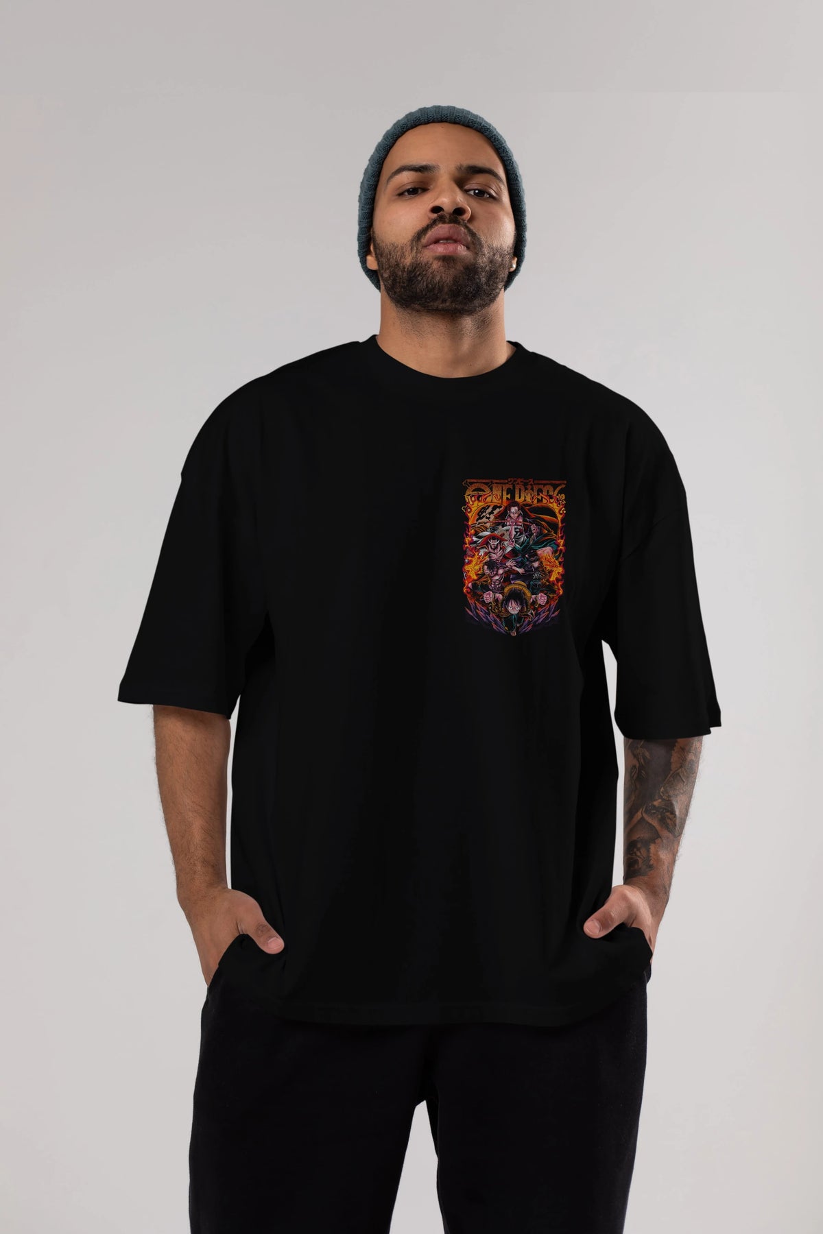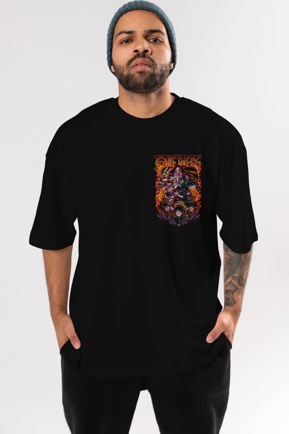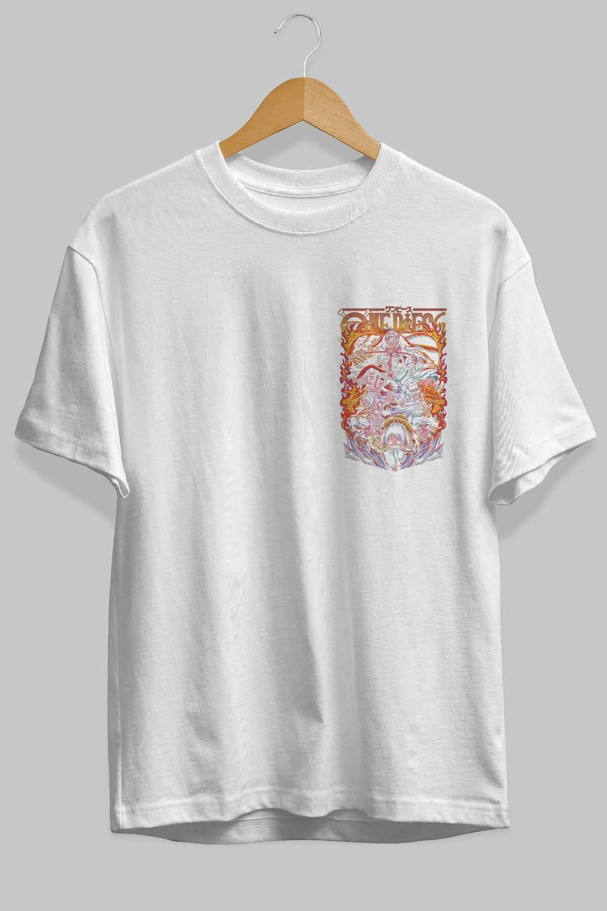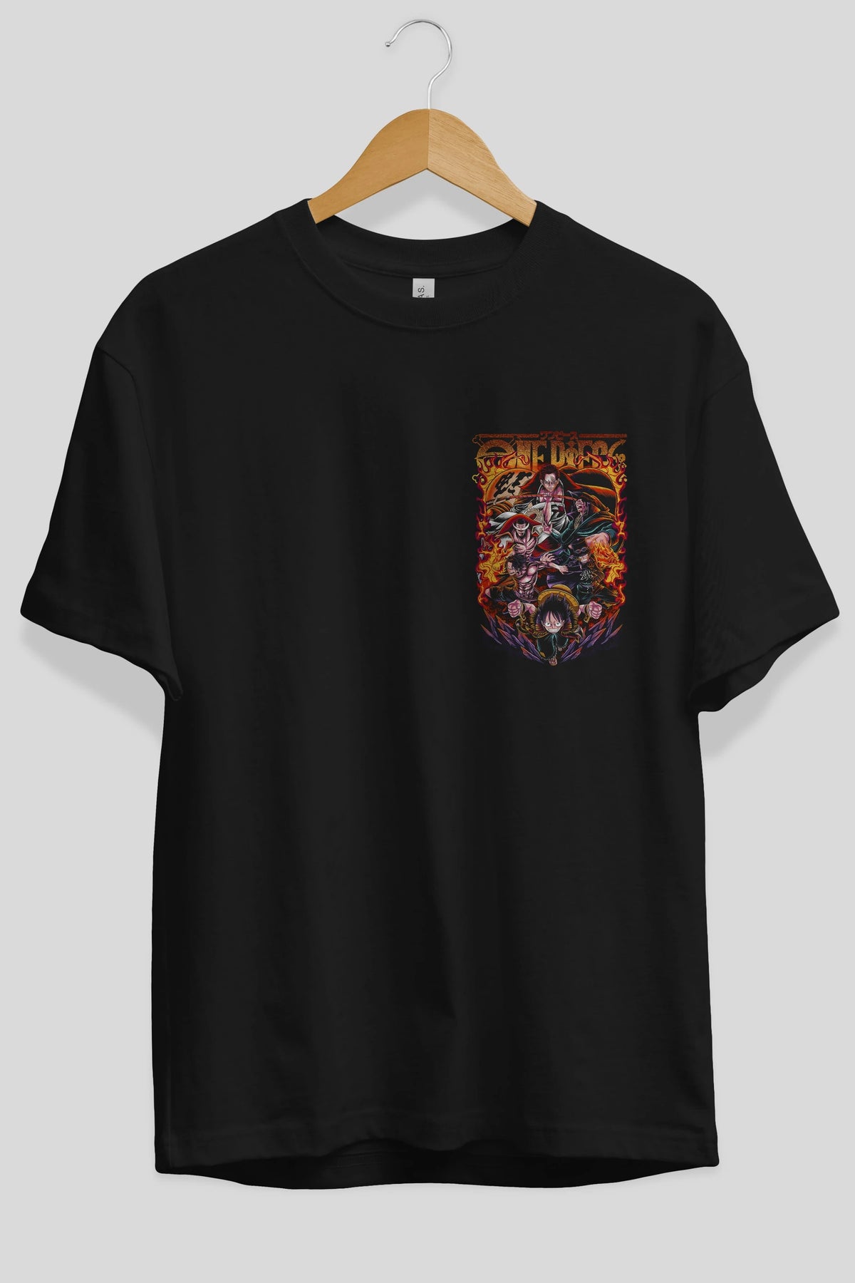 ONE PIECE (3) Ön Sol Baskılı Oversize t-shirt Erkek Kadın Unisex %100 Pamuk Bisiklet Yaka tişort