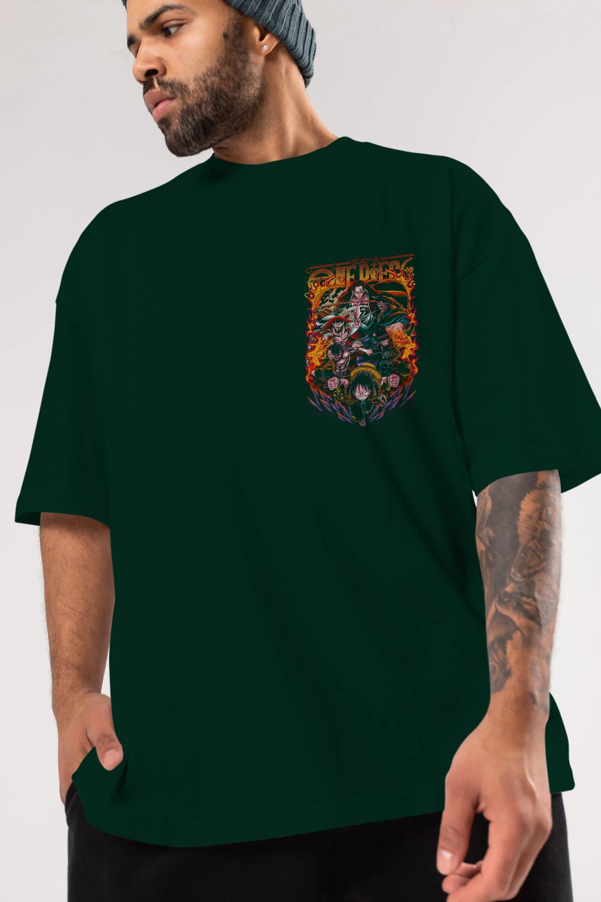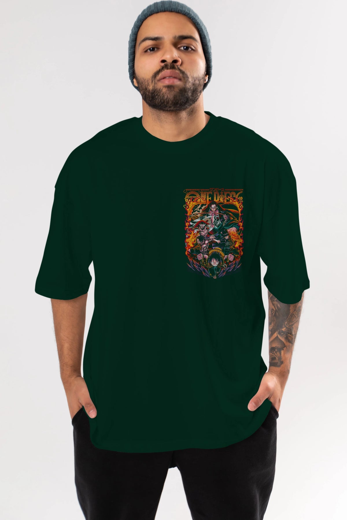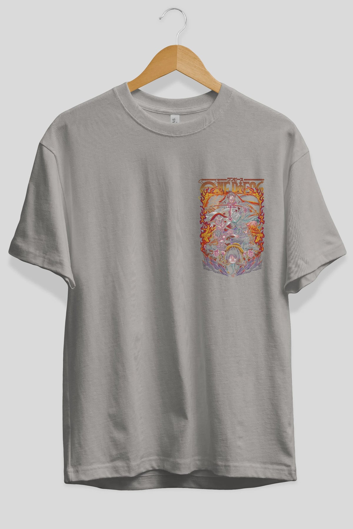 ONE PIECE (3) Ön Sol Baskılı Oversize t-shirt Erkek Kadın Unisex %100 Pamuk Bisiklet Yaka tişort