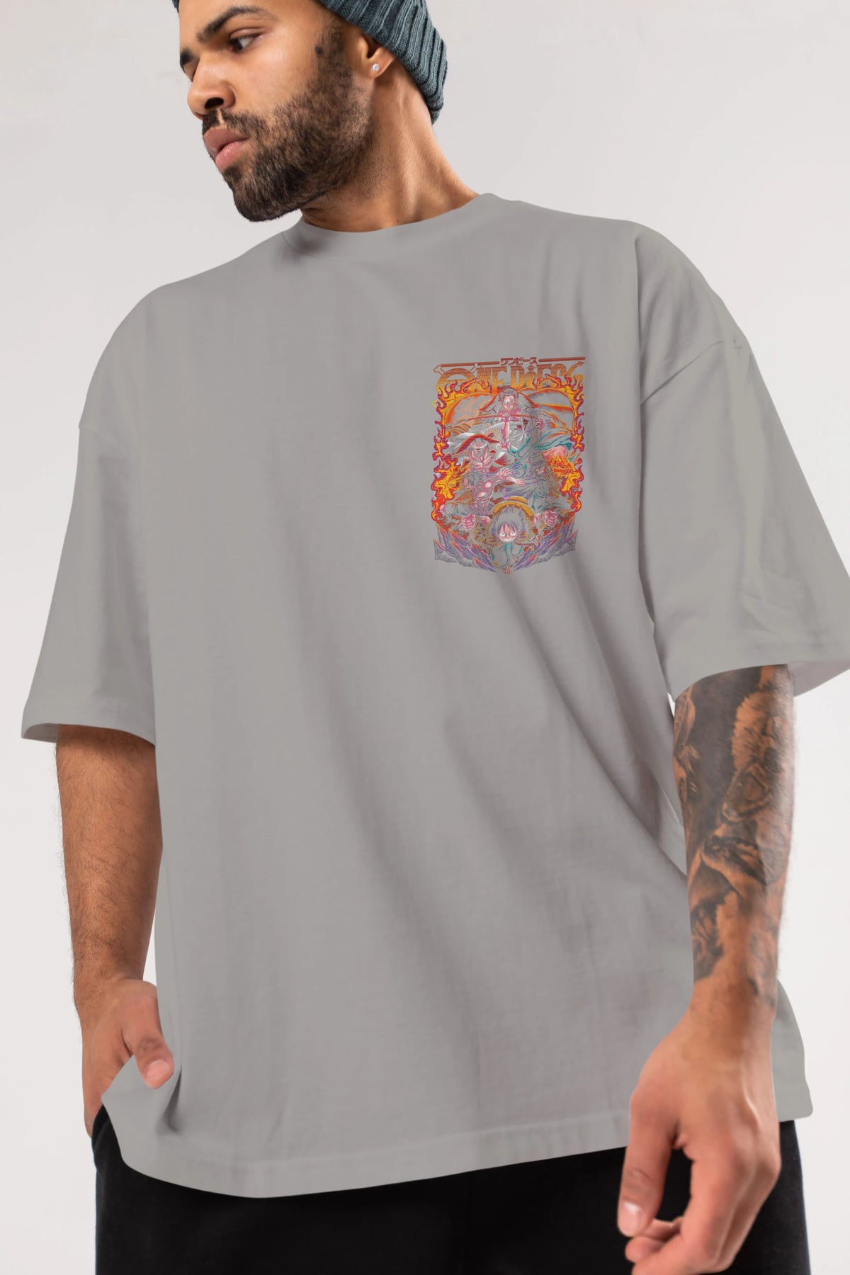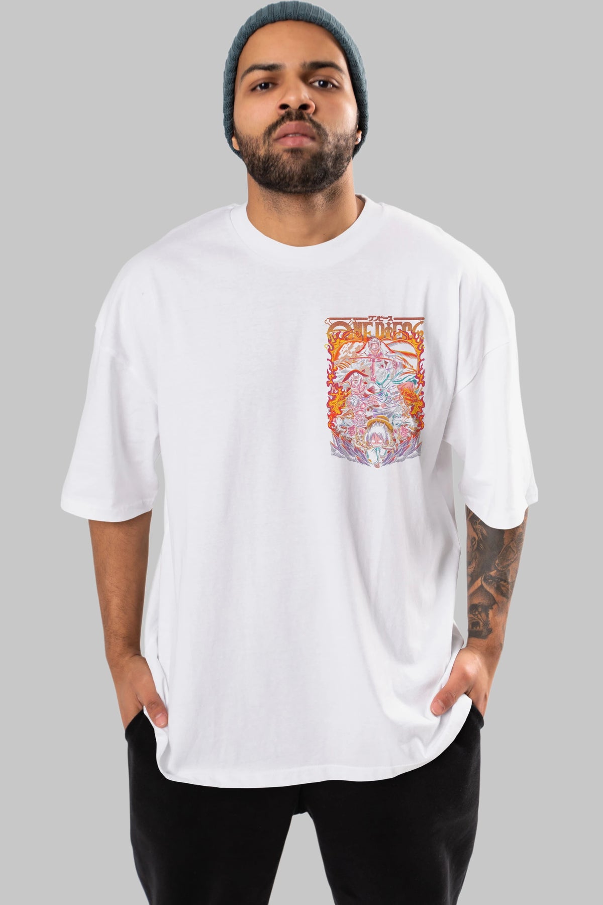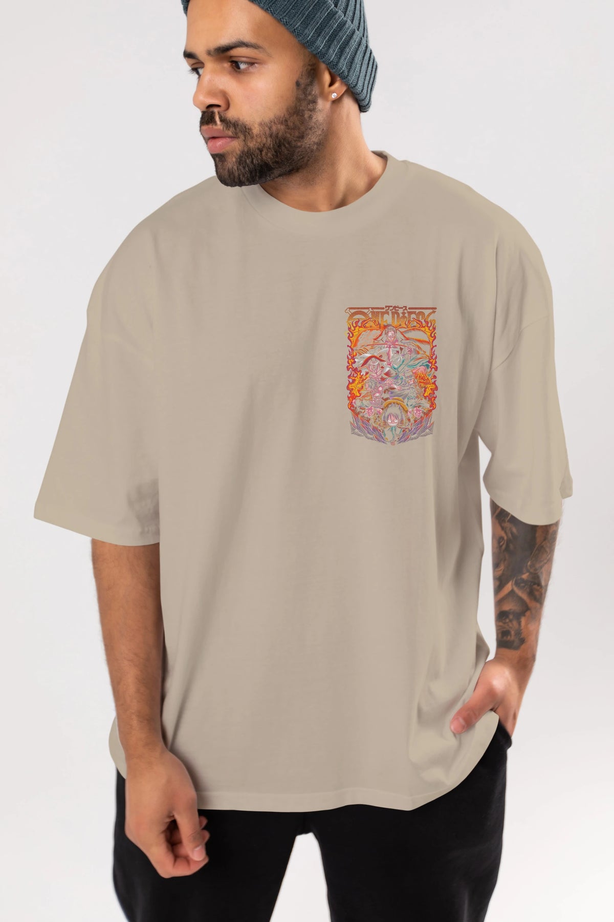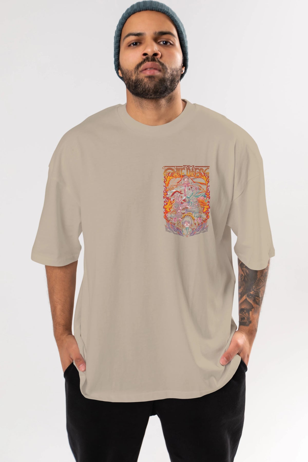 ONE PIECE (3) Ön Sol Baskılı Oversize t-shirt Erkek Kadın Unisex %100 Pamuk Bisiklet Yaka tişort