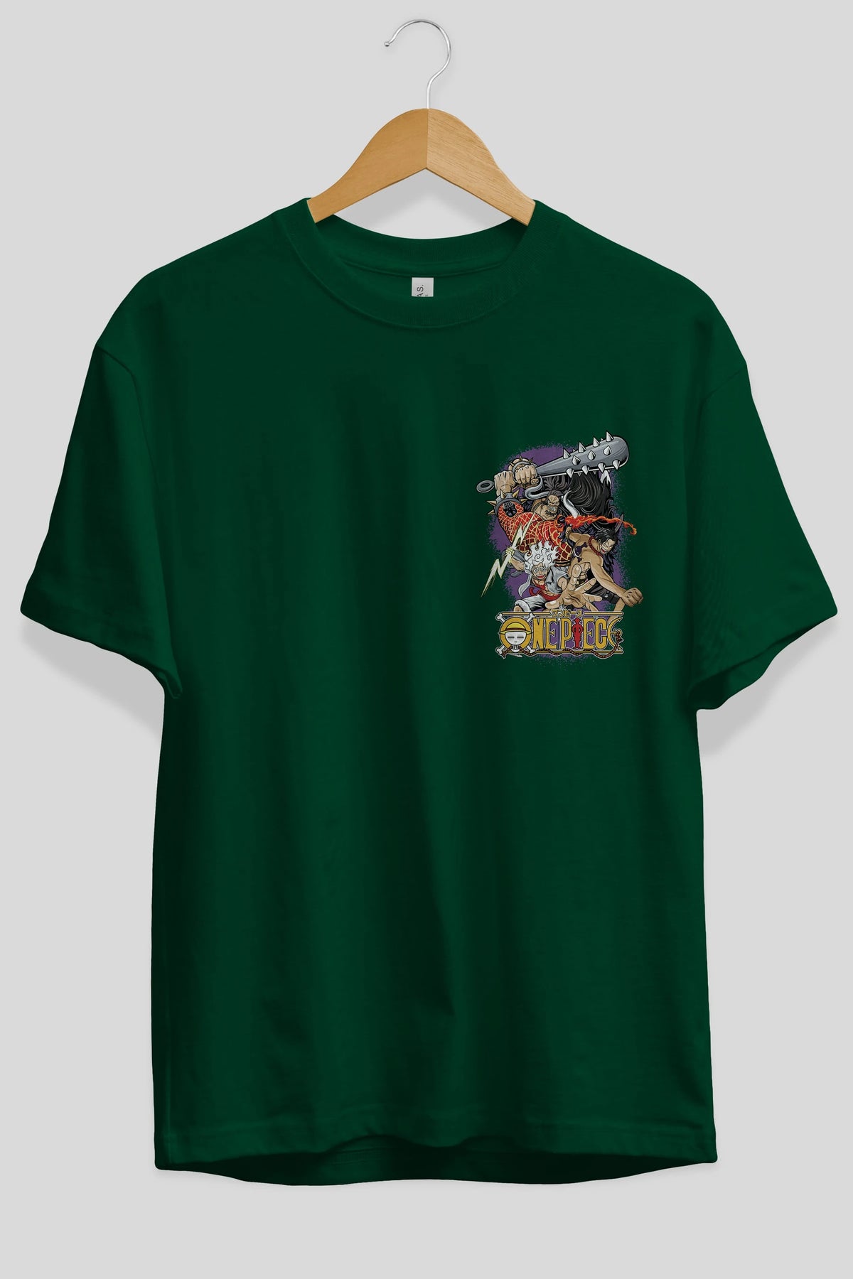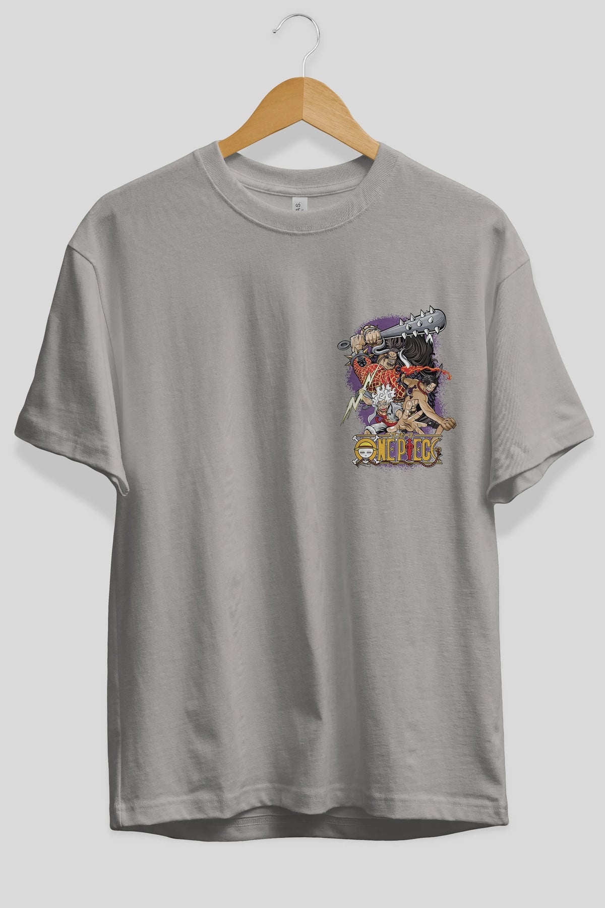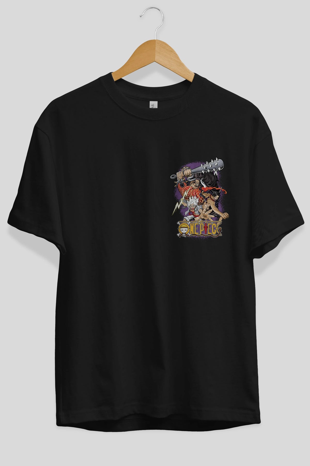ONE PIECE (6) Ön Sol Baskılı Oversize t-shirt Erkek Kadın Unisex %100 Pamuk Bisiklet Yaka tişort