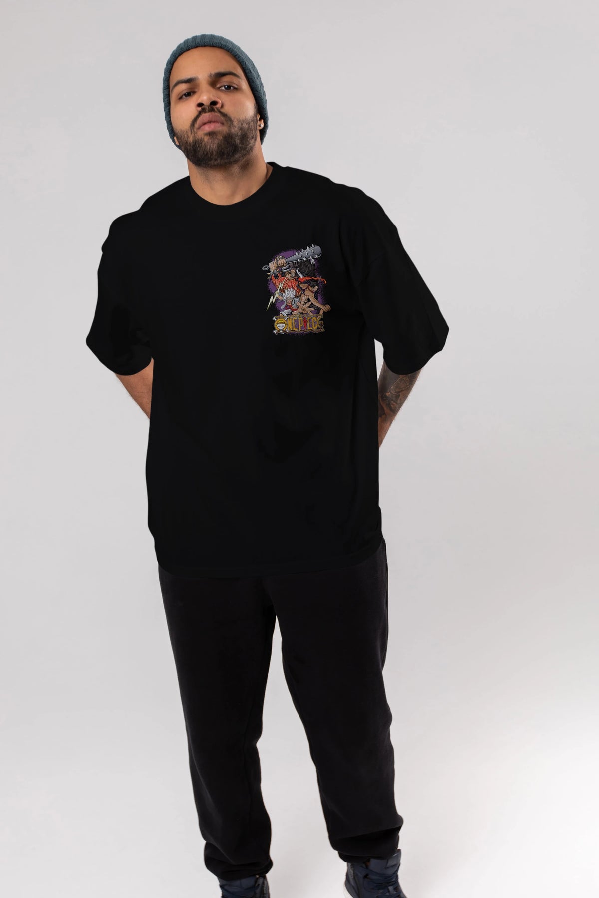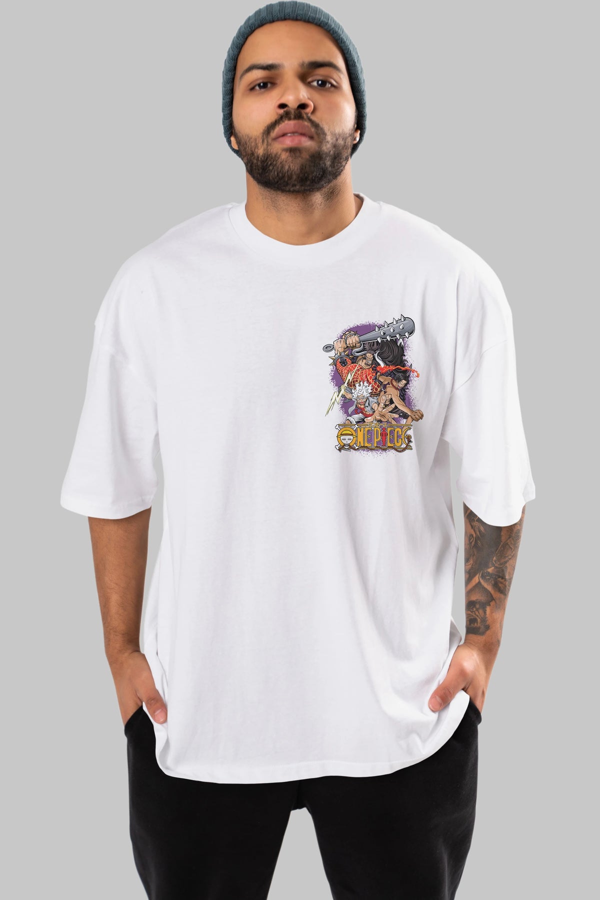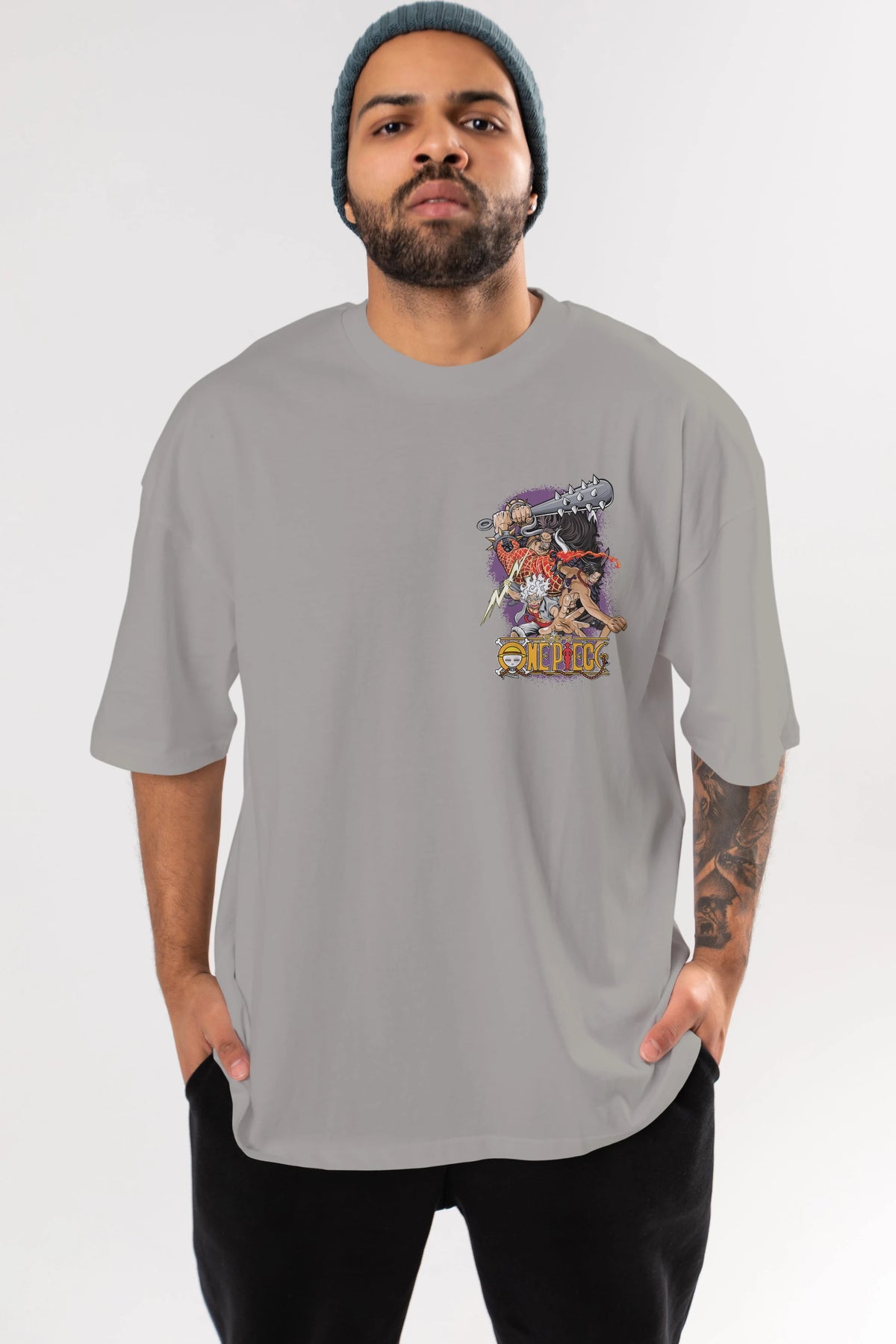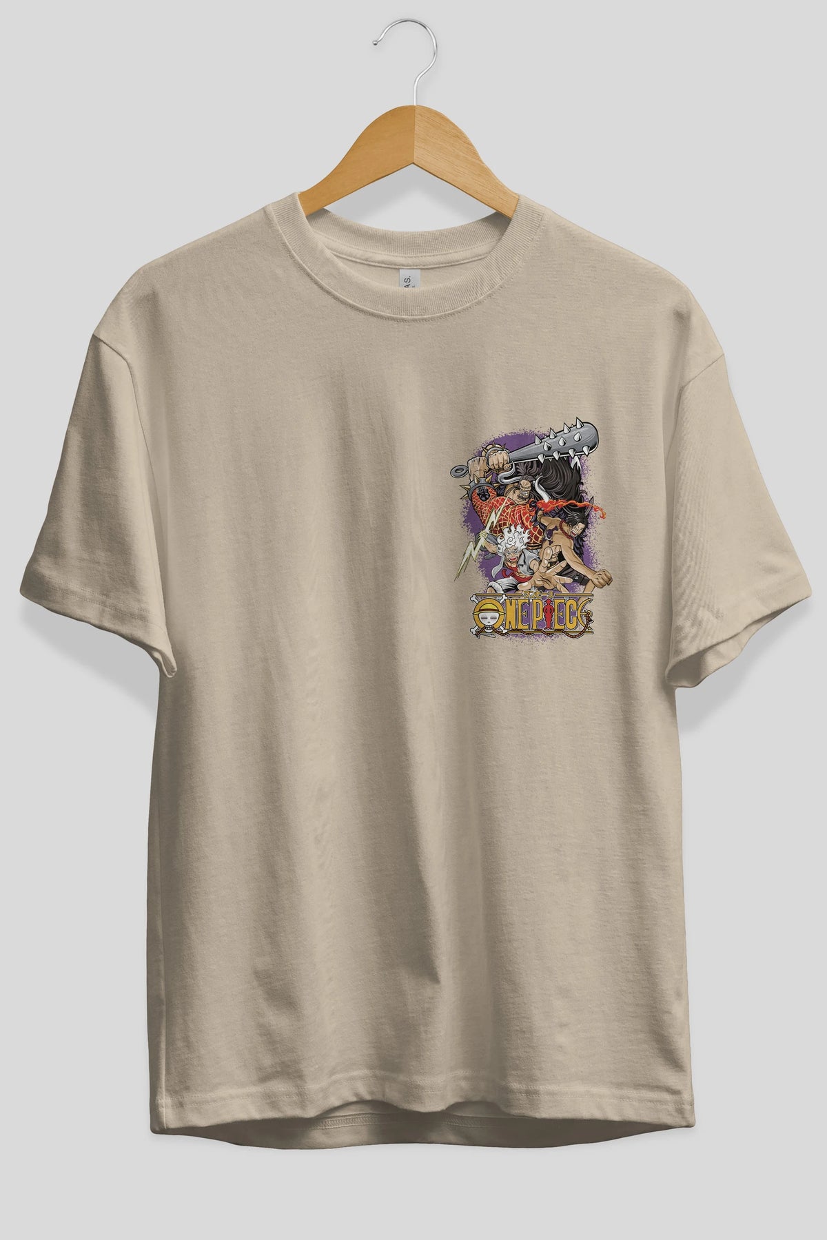 ONE PIECE (6) Ön Sol Baskılı Oversize t-shirt Erkek Kadın Unisex %100 Pamuk Bisiklet Yaka tişort
