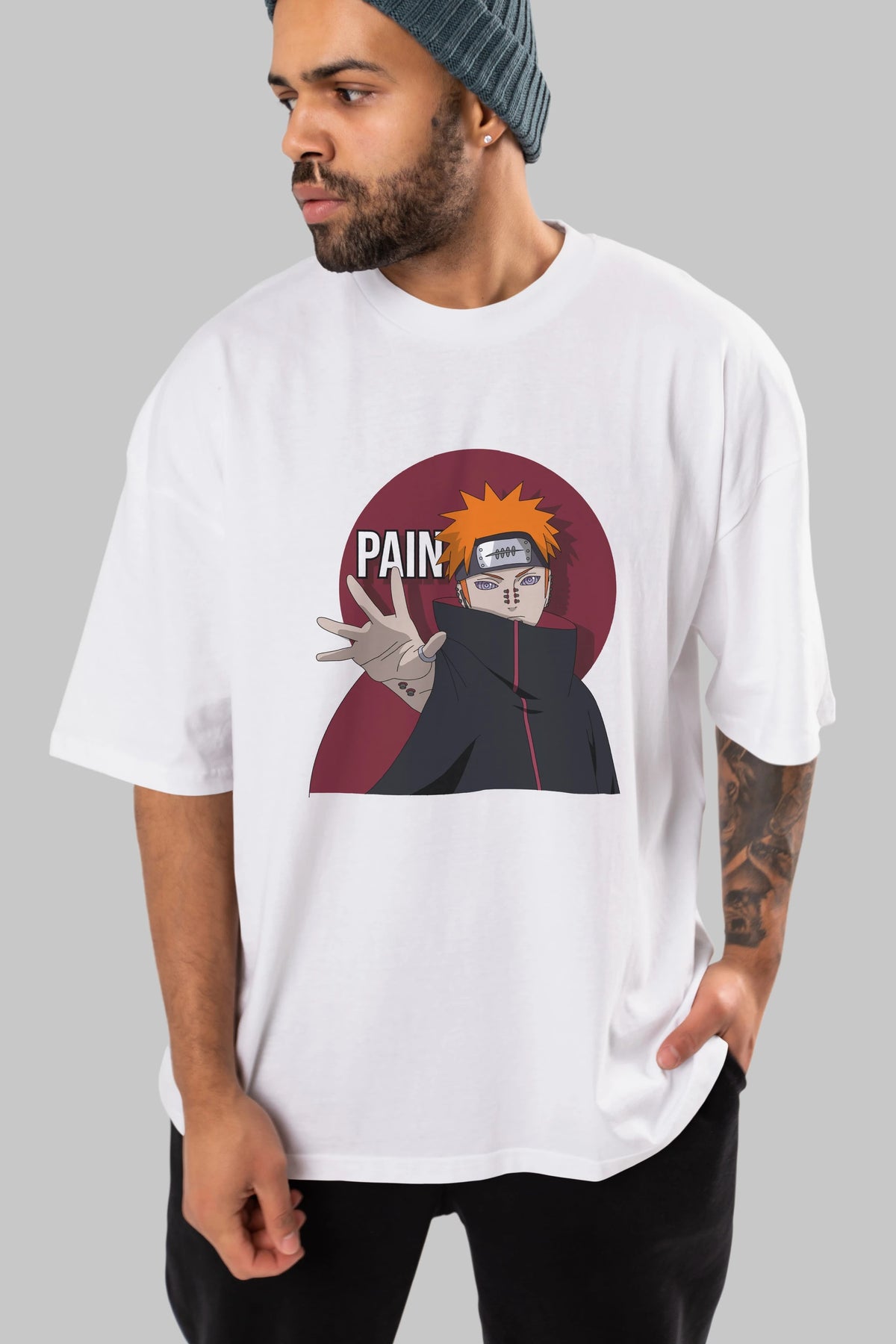 PAIN NARUTO Anime Ön Baskılı Oversize t-shirt %100 pamuk Erkek Kadın Unisex