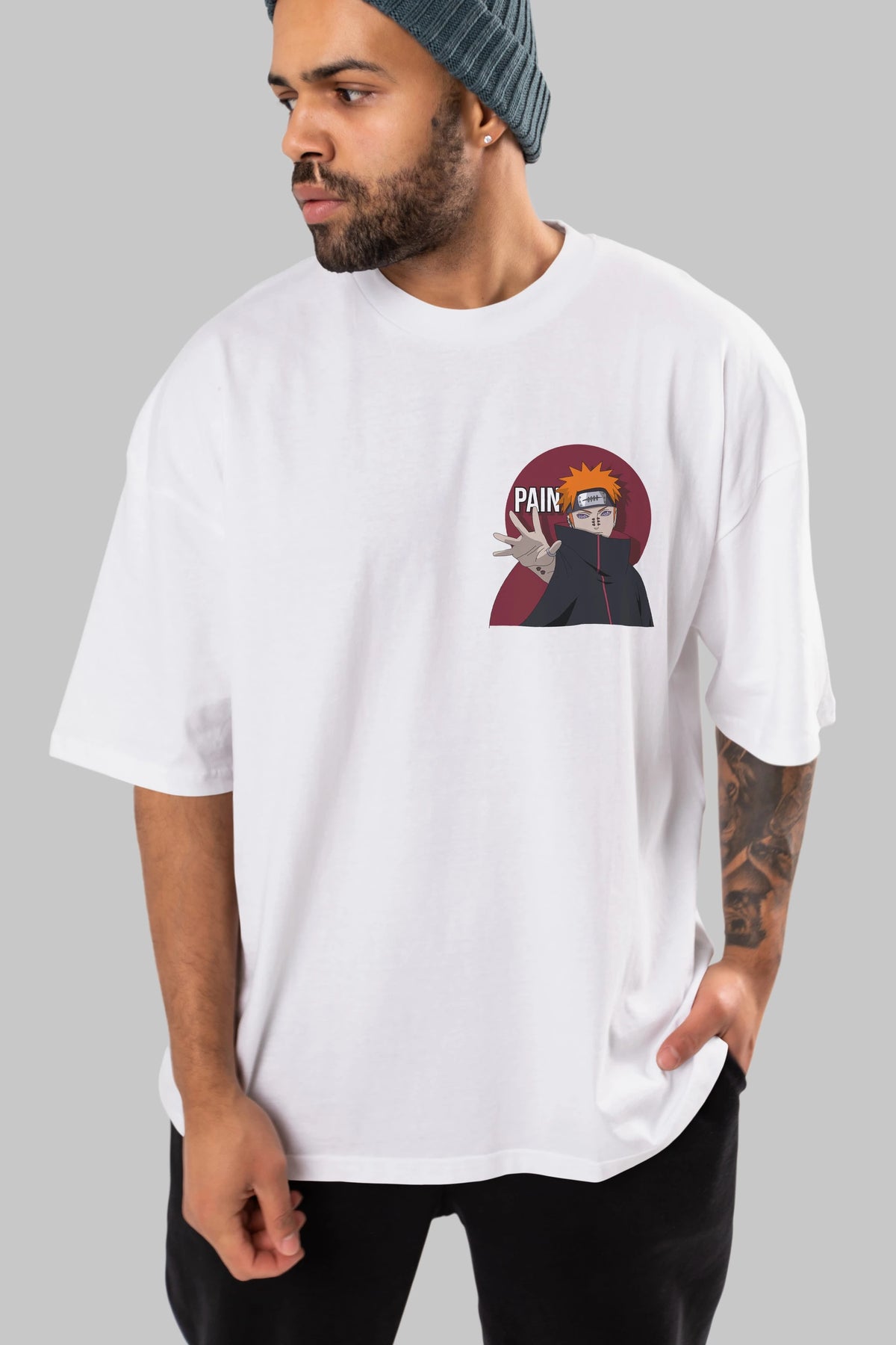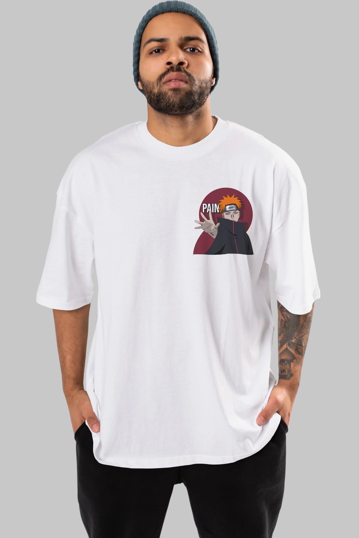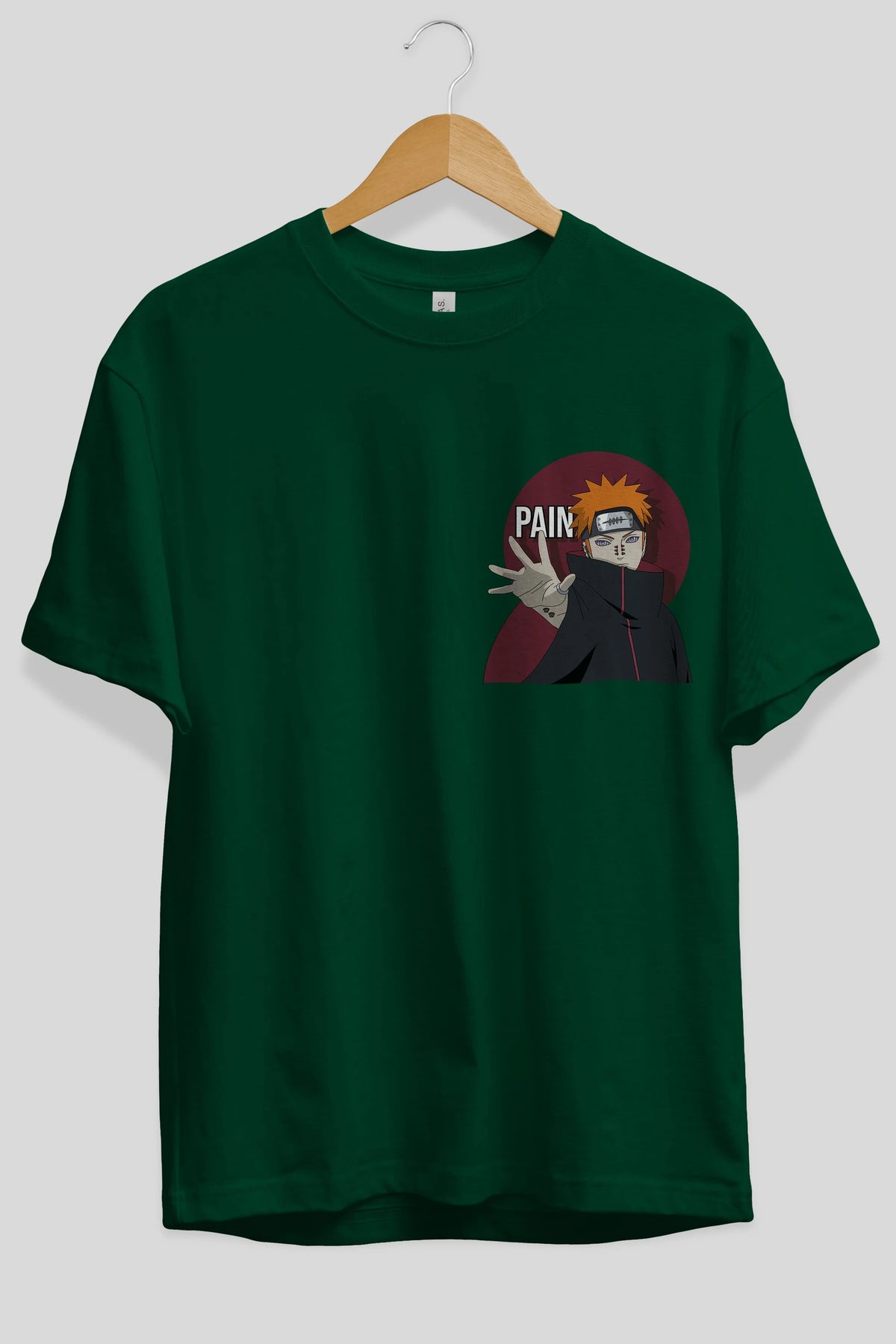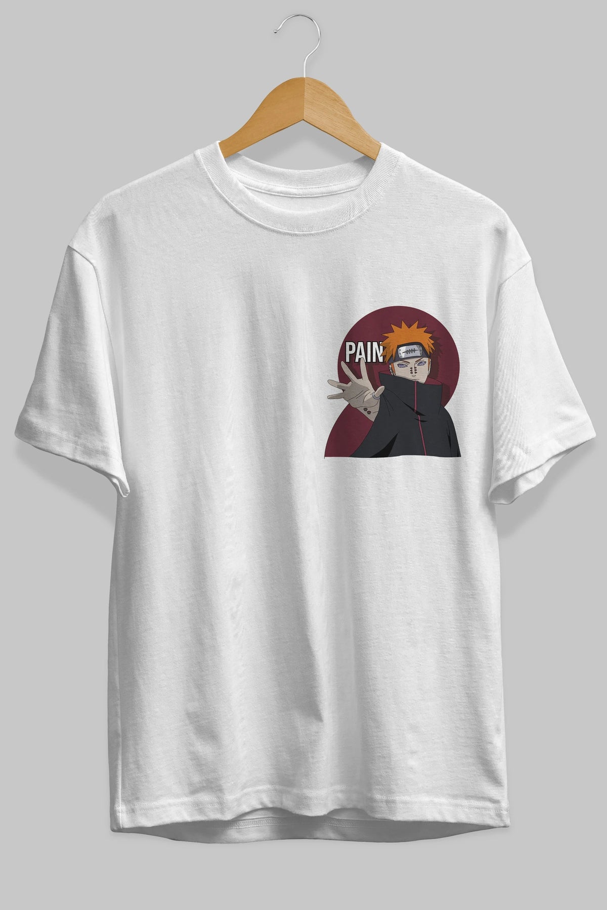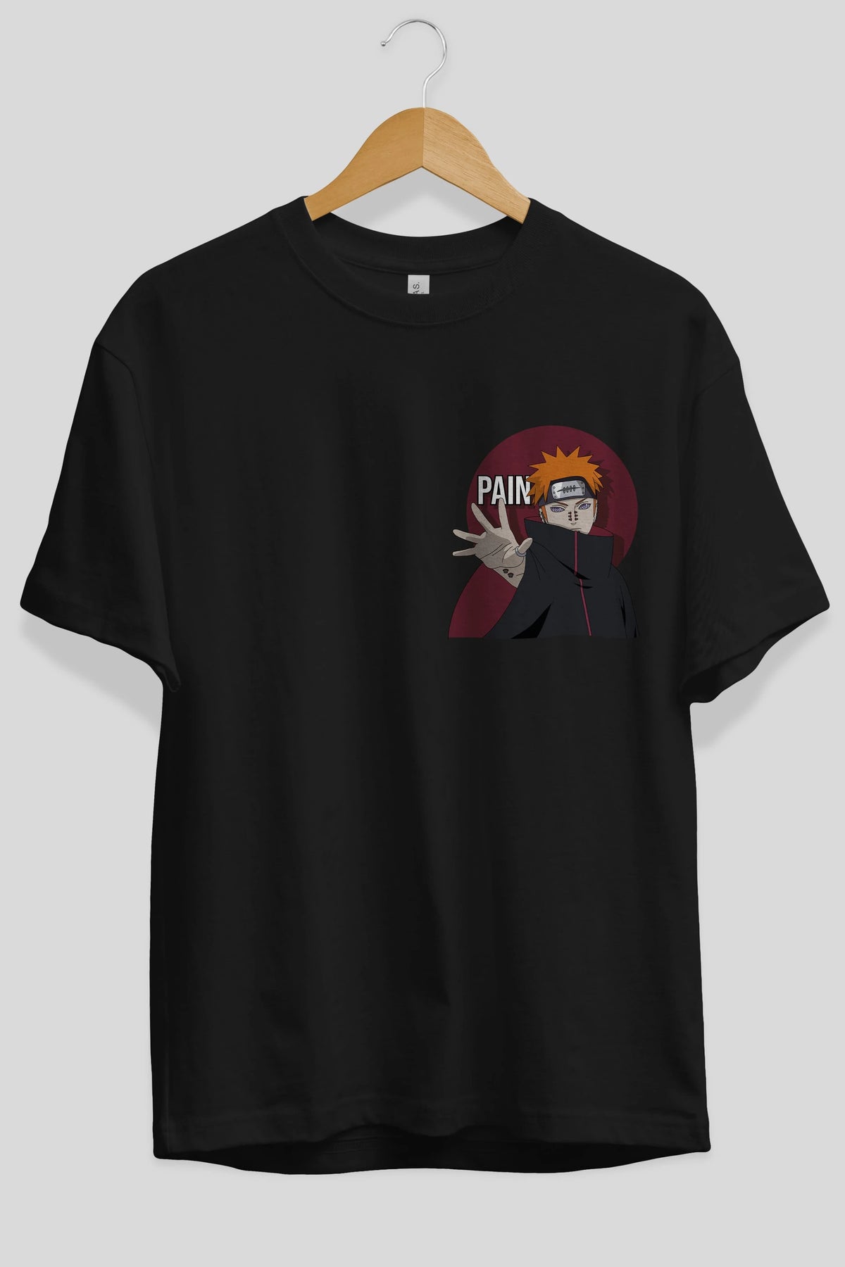 PAIN NARUTO Ön Sol Baskılı Oversize t-shirt Erkek Kadın Unisex %100 Pamuk Bisiklet Yaka tişort