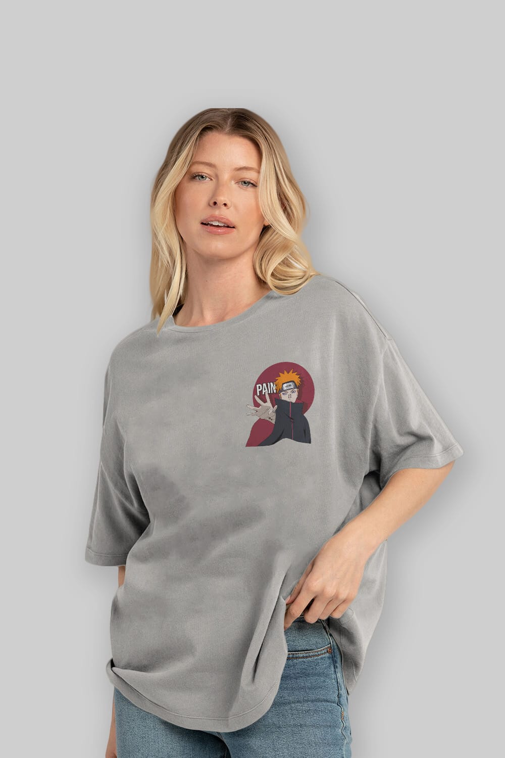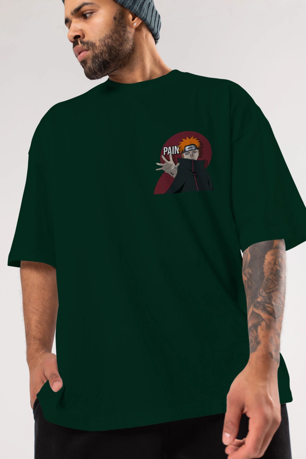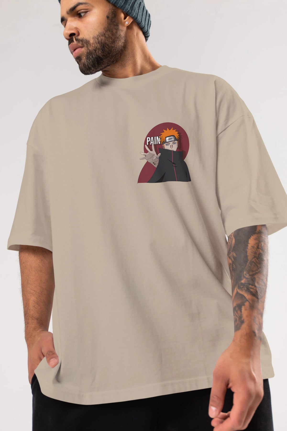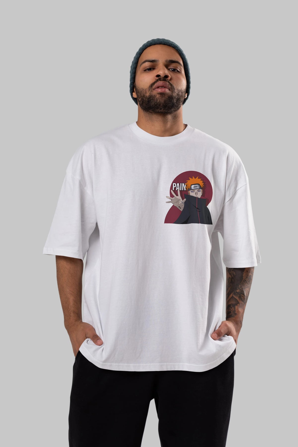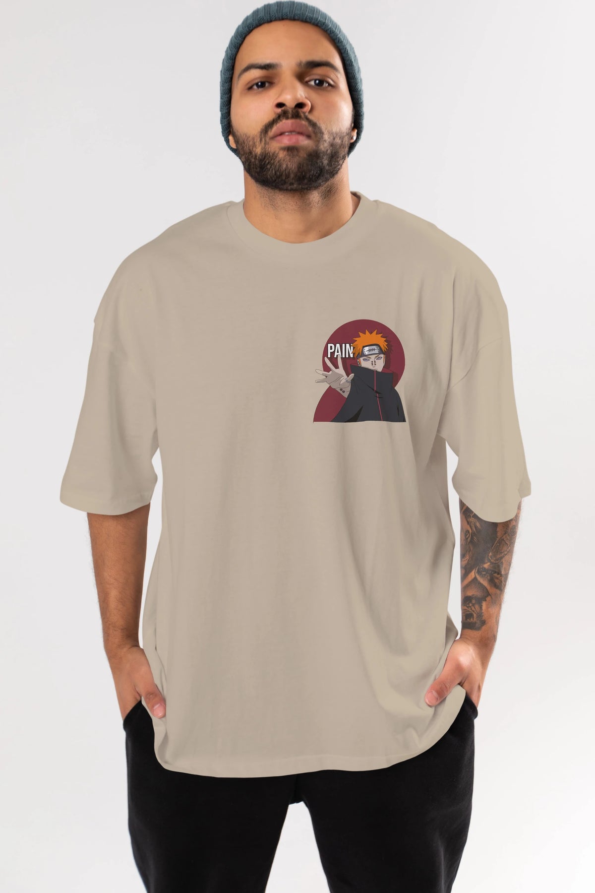 PAIN NARUTO Ön Sol Baskılı Oversize t-shirt Erkek Kadın Unisex %100 Pamuk Bisiklet Yaka tişort