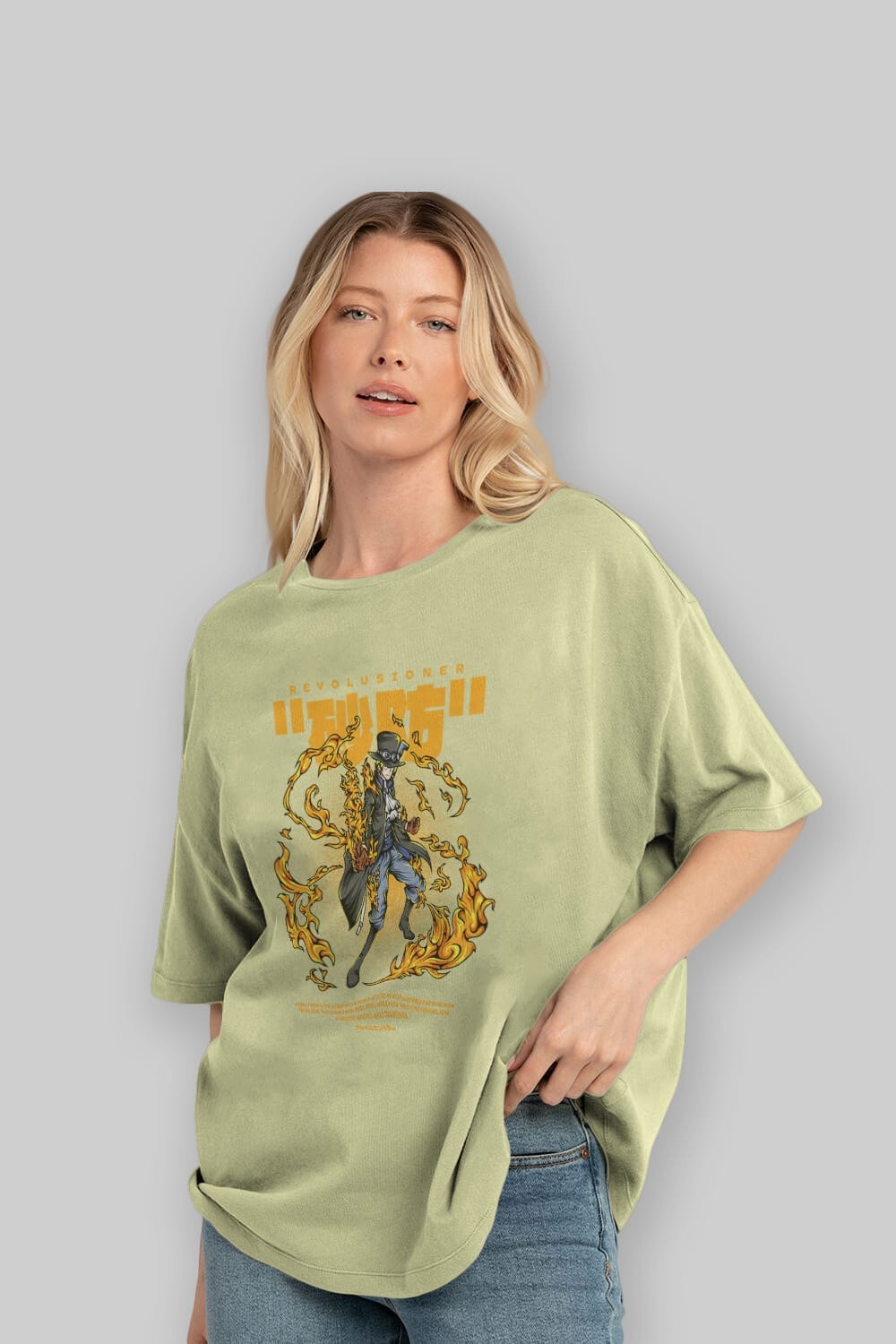 Revolusioner Sabo Anime Ön Baskılı Oversize t-shirt %100 pamuk Erkek Kadın Unisex