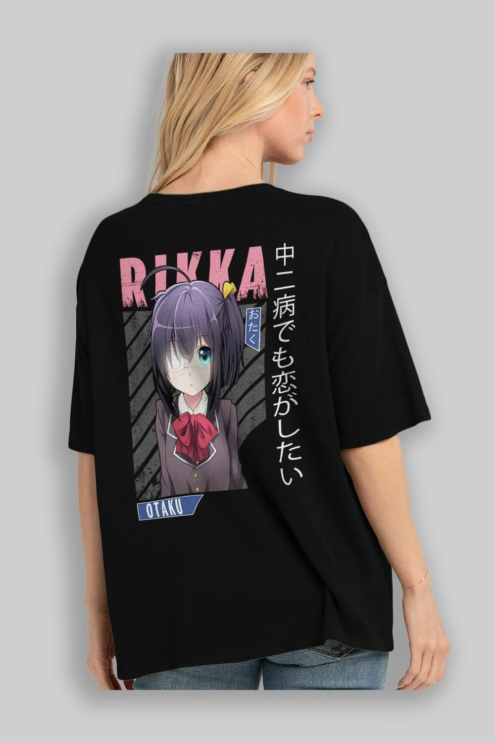 Rikka Takanashi 9 Anime Arka Baskılı Oversize t-shirt Erkek Kadın Unisex