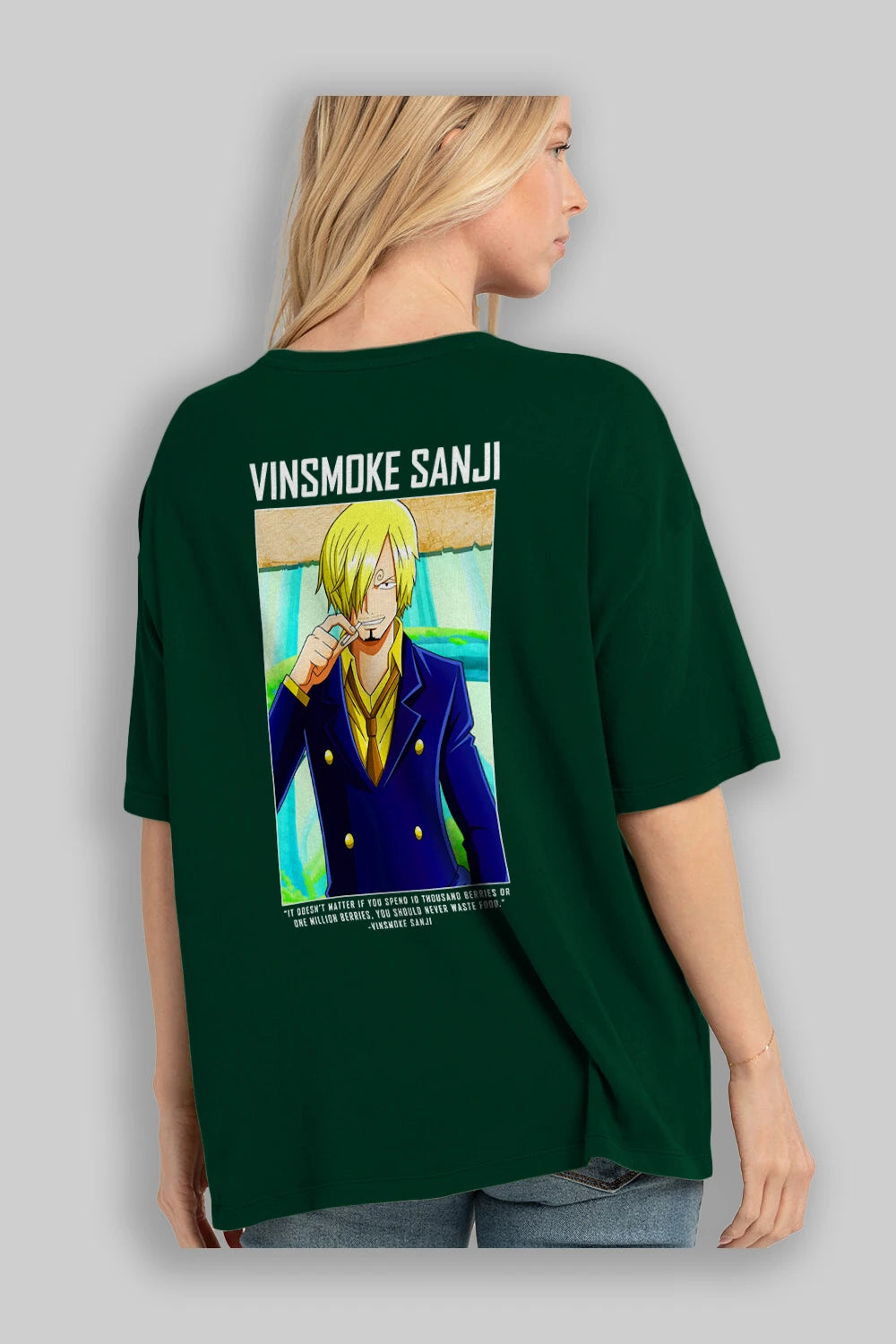 Sanji 2 Anime Arka Baskılı Oversize t-shirt Erkek Kadın Unisex %100 pamuk tişort