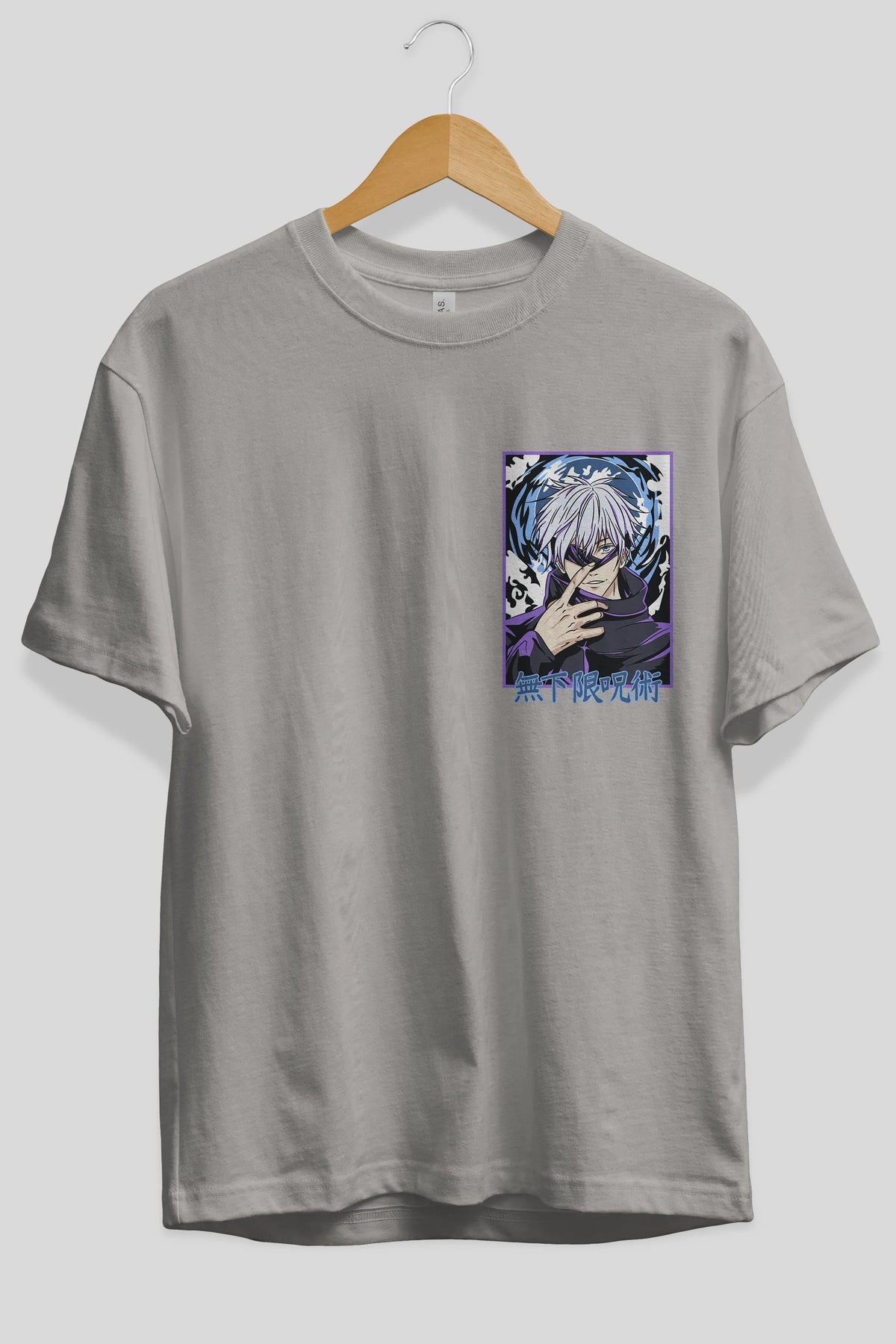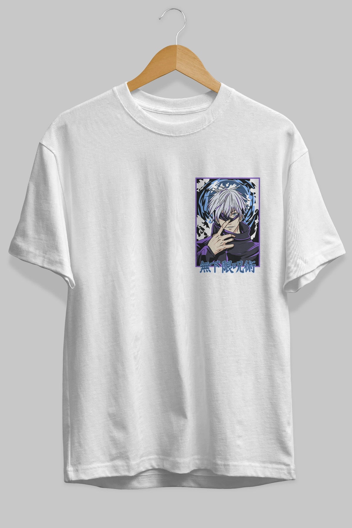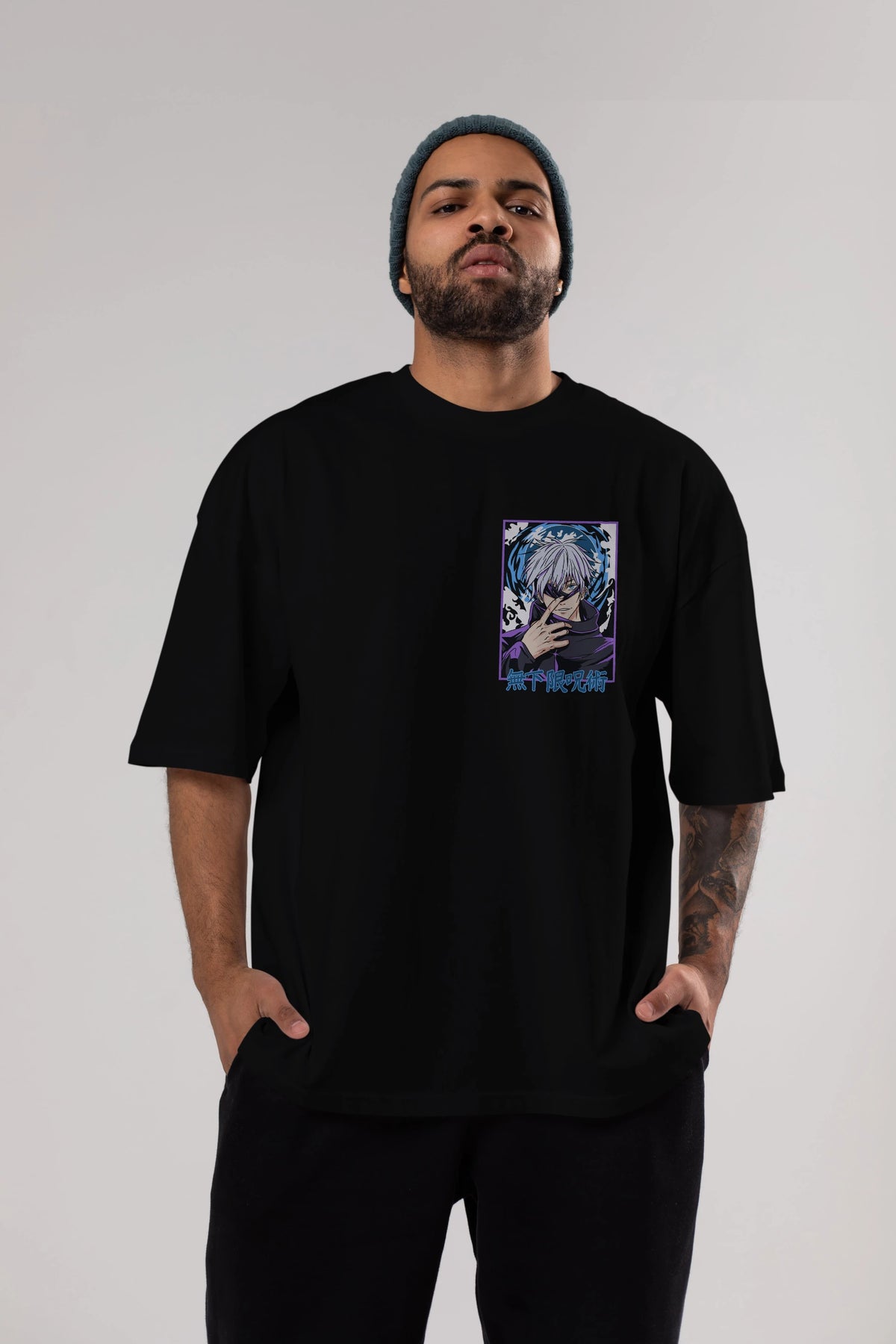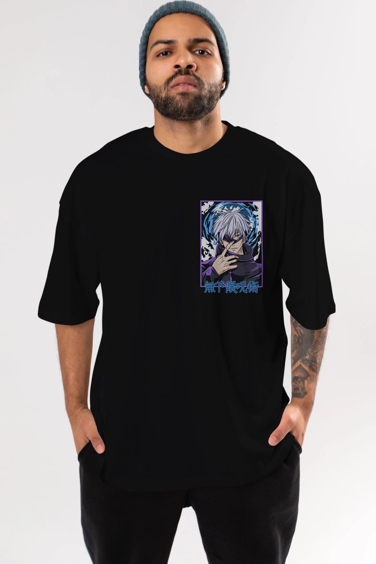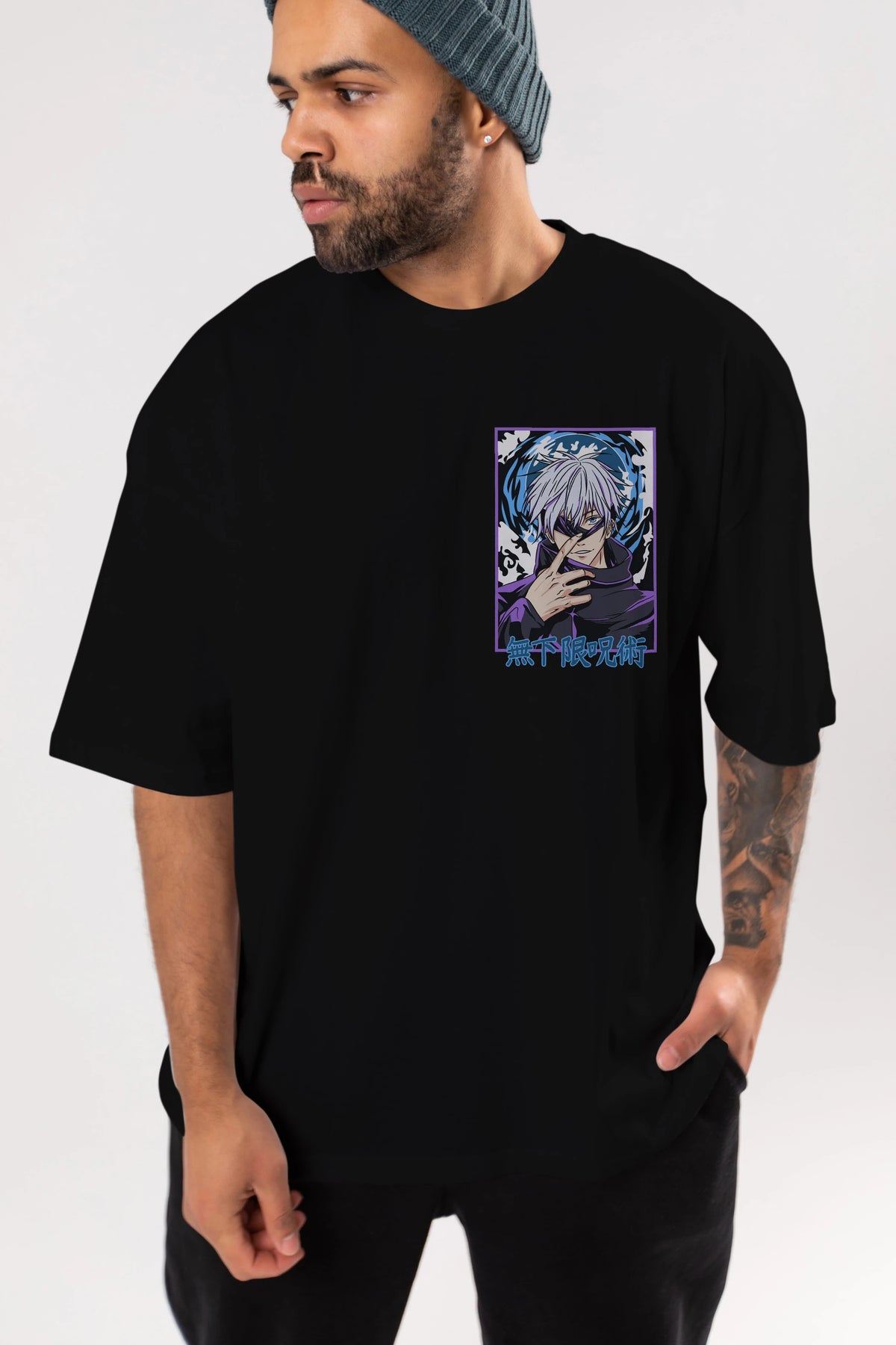 SATORU GOJO 3 Ön Sol Baskılı Oversize t-shirt Erkek Kadın Unisex %100 Pamuk Bisiklet Yaka tişort