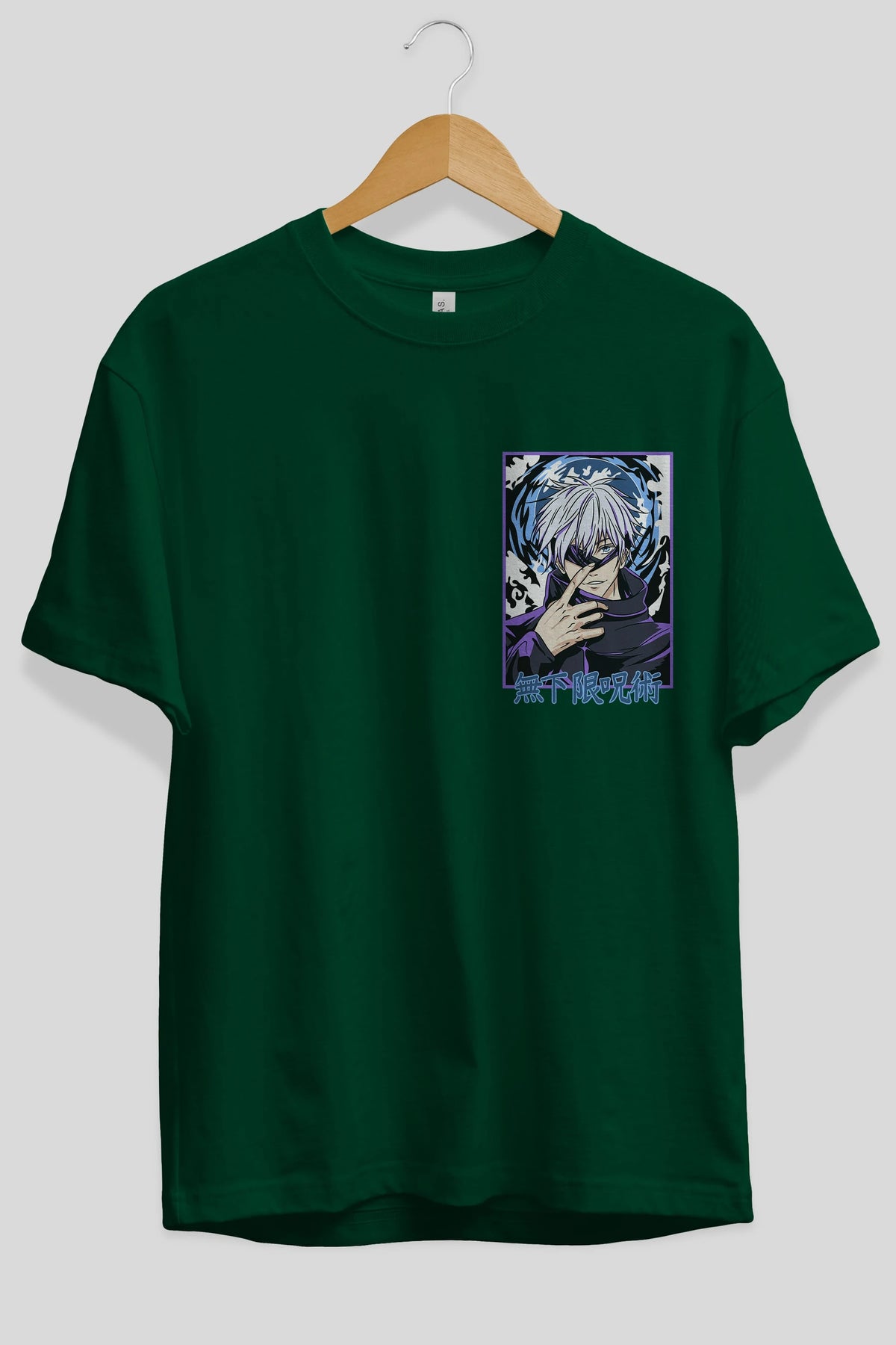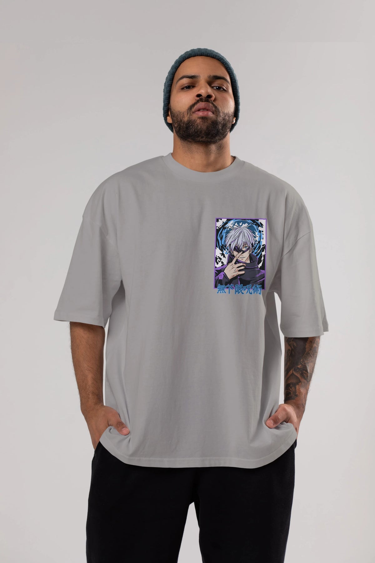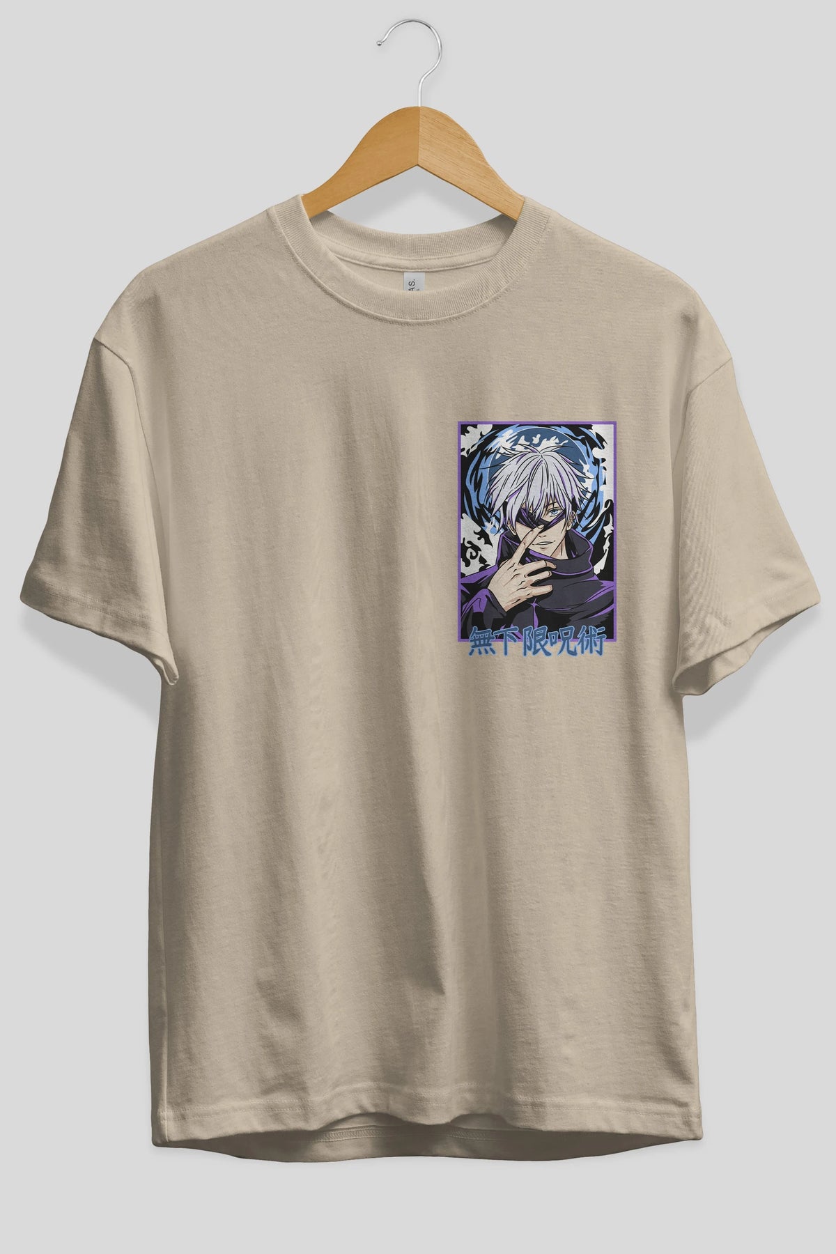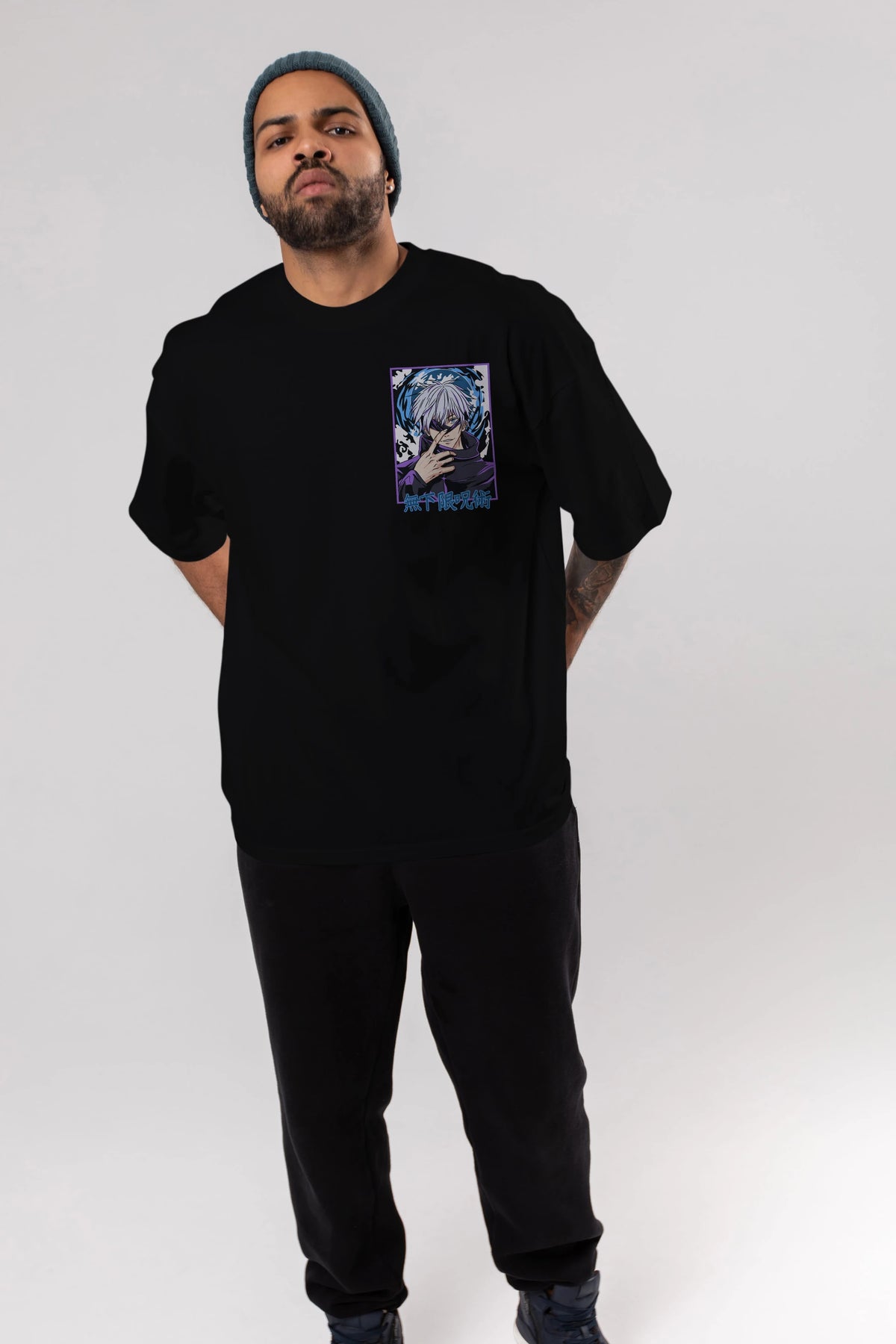 SATORU GOJO 3 Ön Sol Baskılı Oversize t-shirt Erkek Kadın Unisex %100 Pamuk Bisiklet Yaka tişort