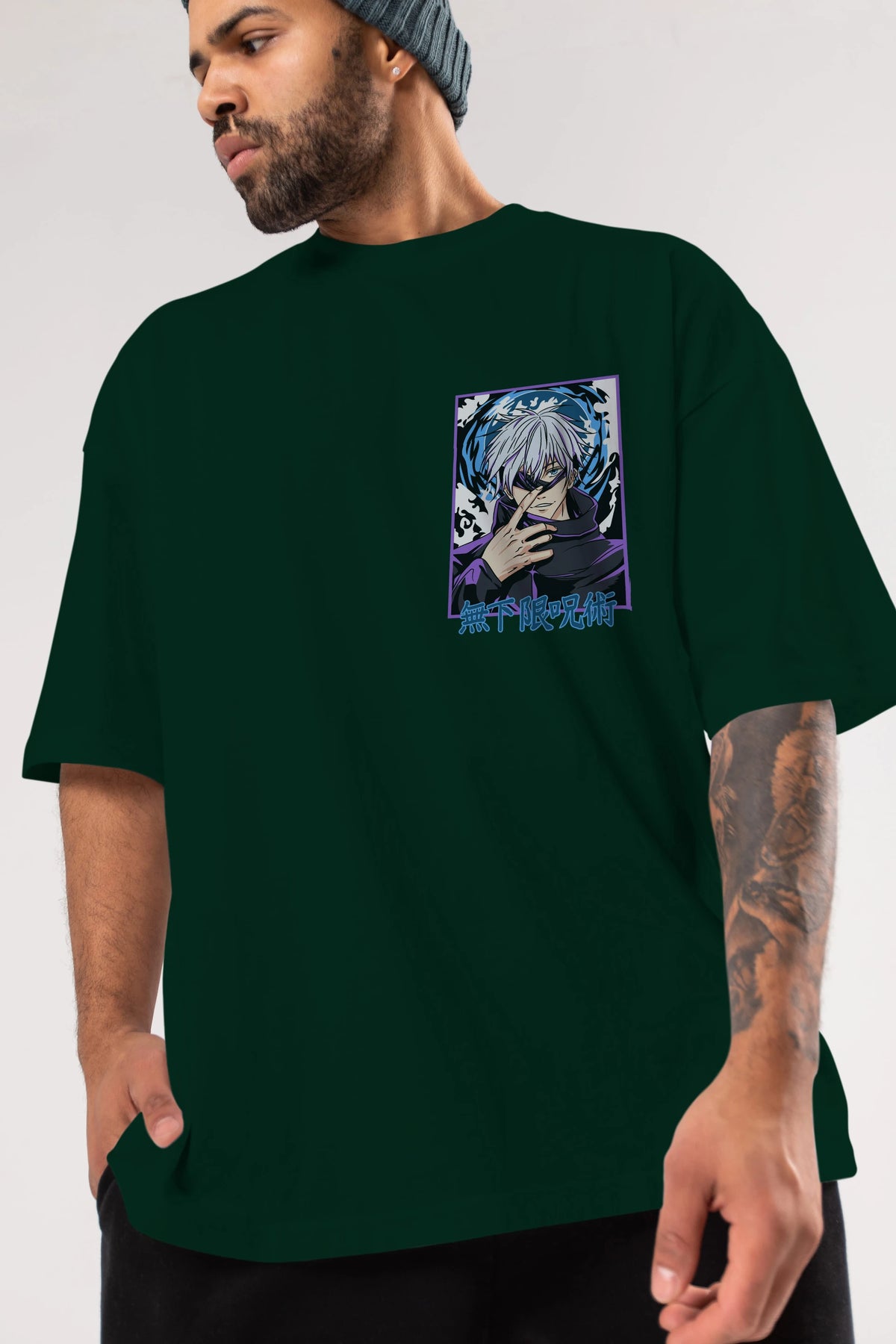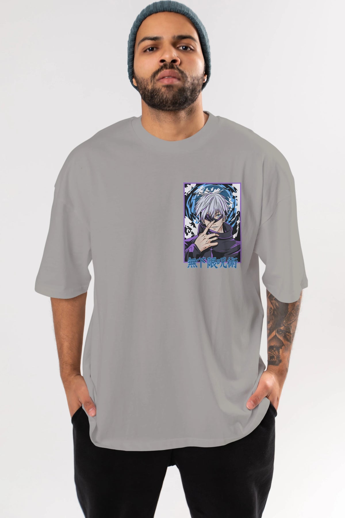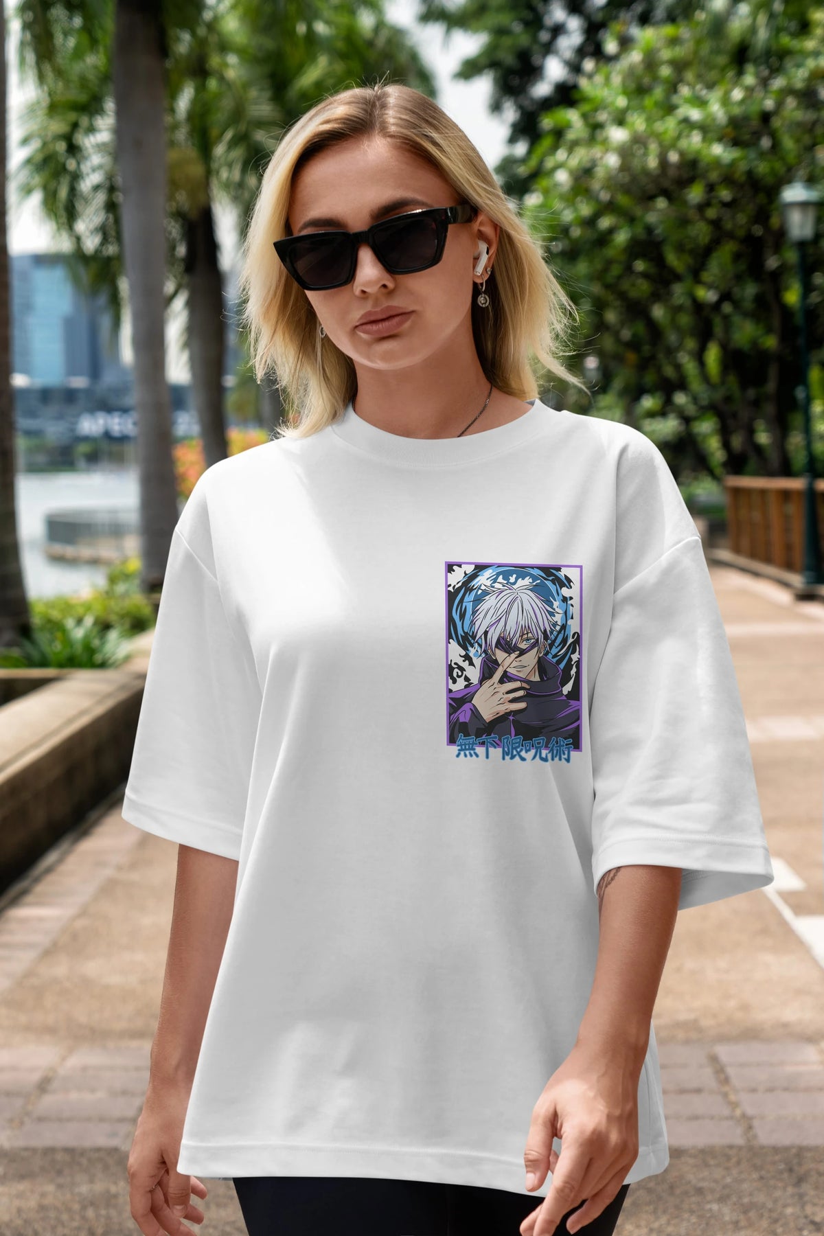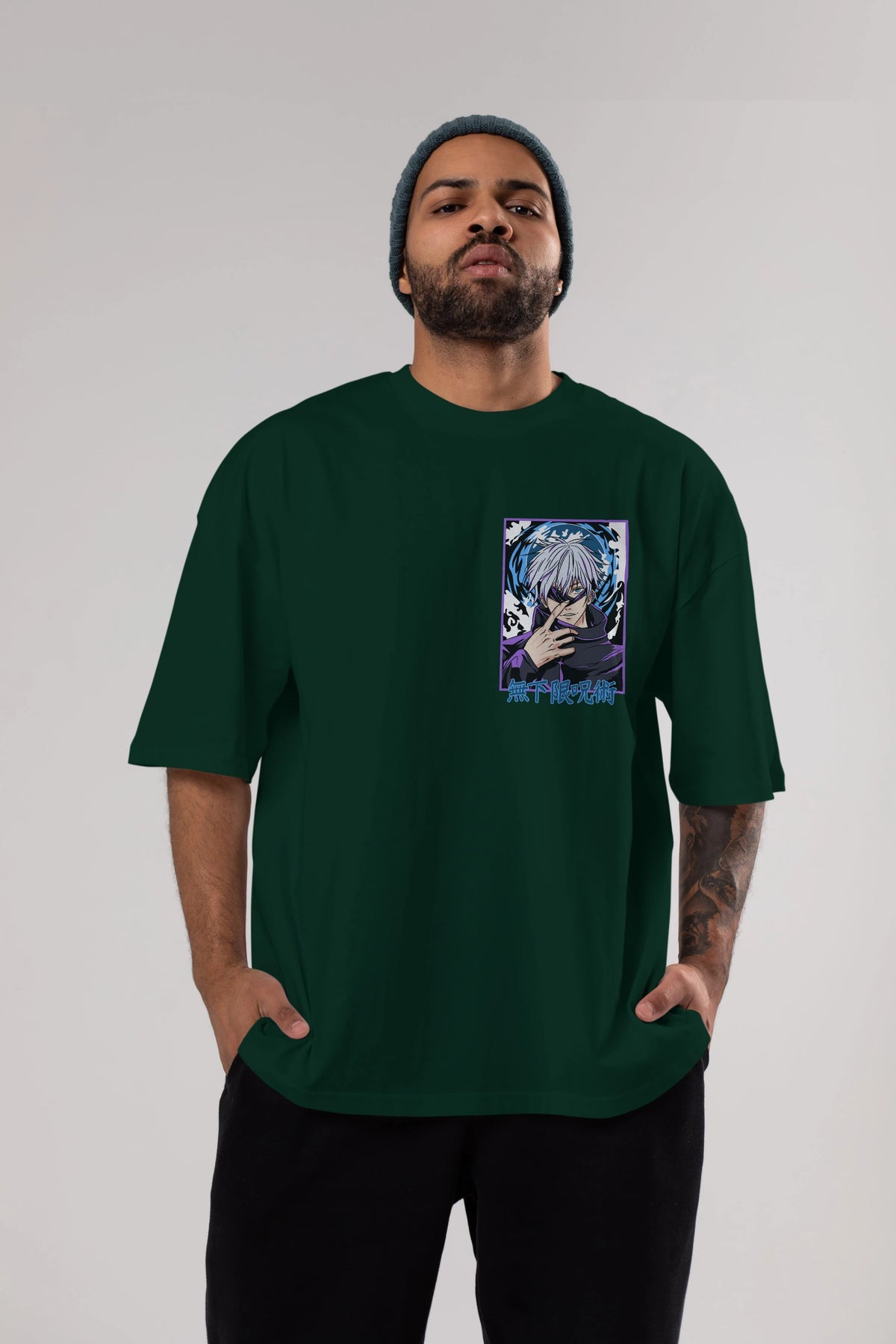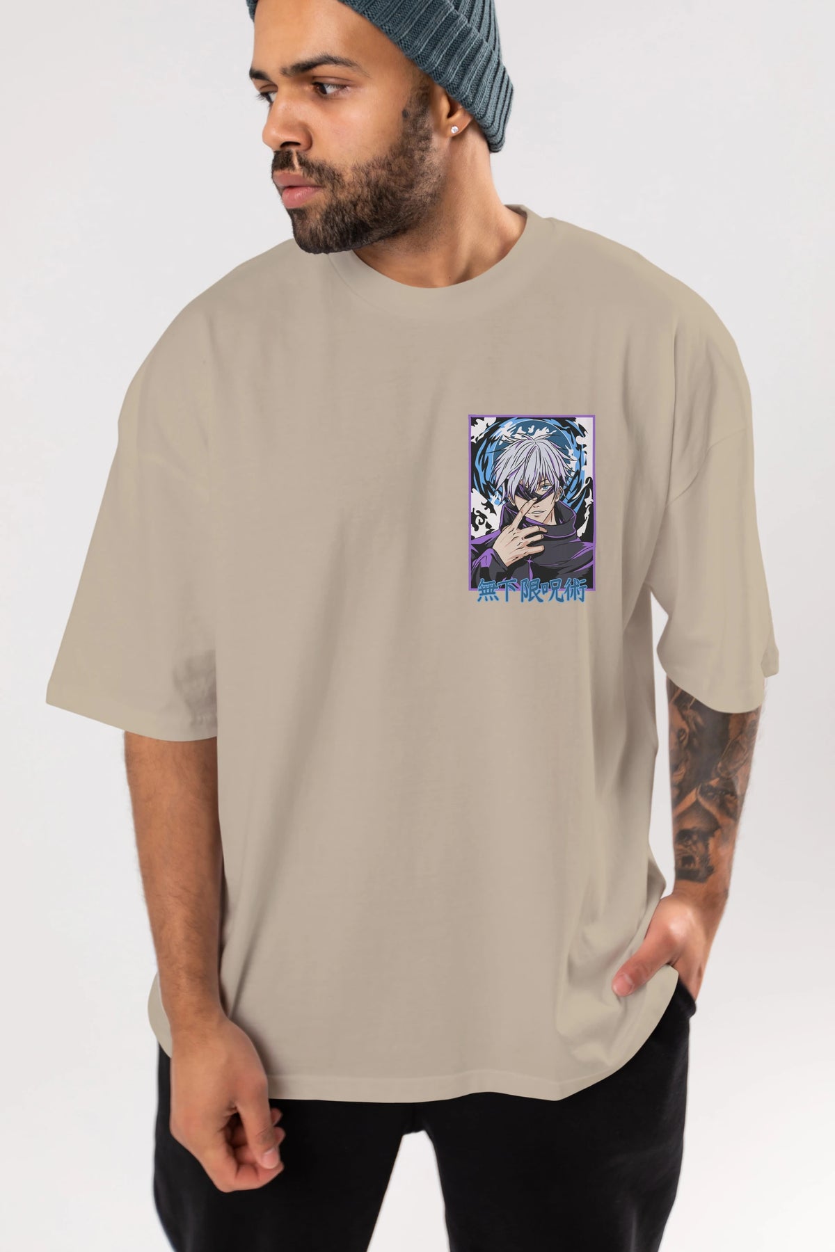 SATORU GOJO 3 Ön Sol Baskılı Oversize t-shirt Erkek Kadın Unisex %100 Pamuk Bisiklet Yaka tişort