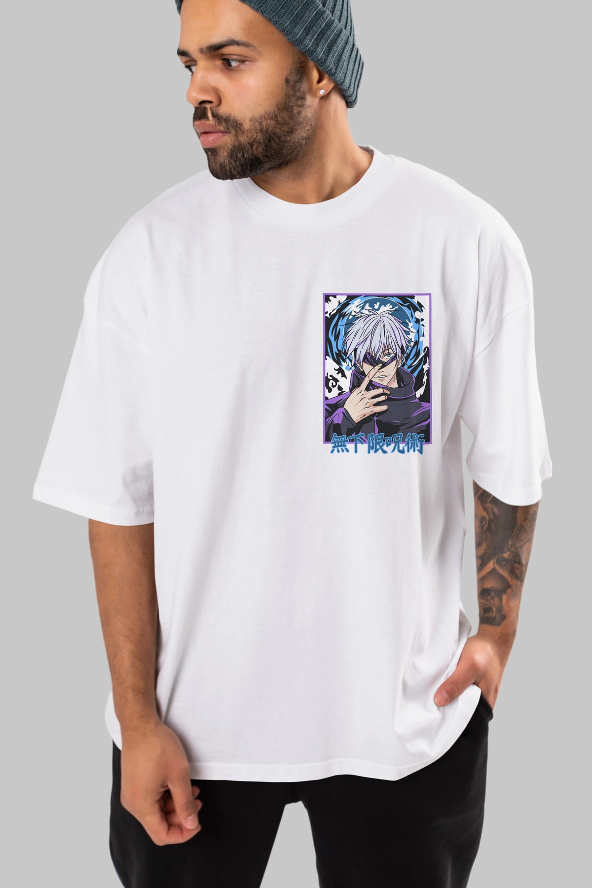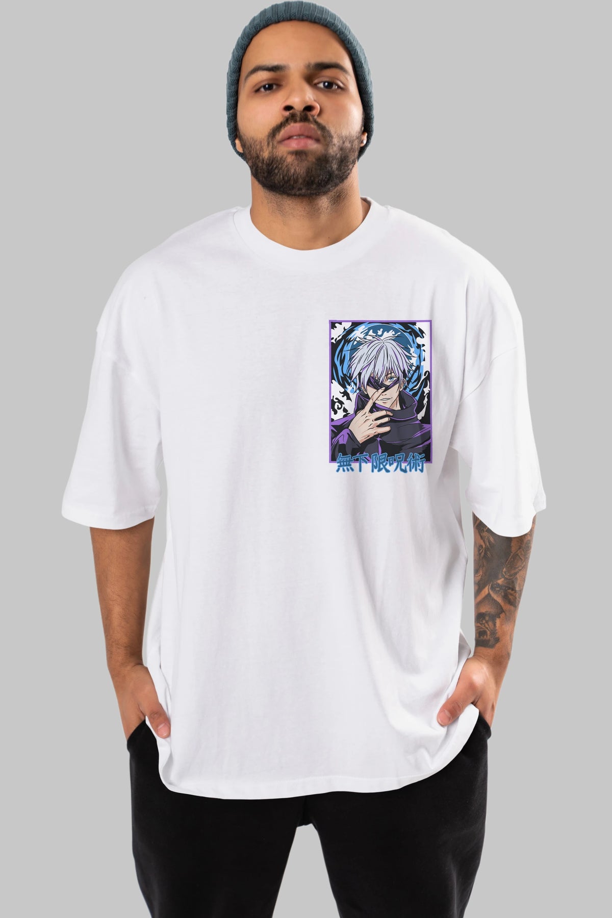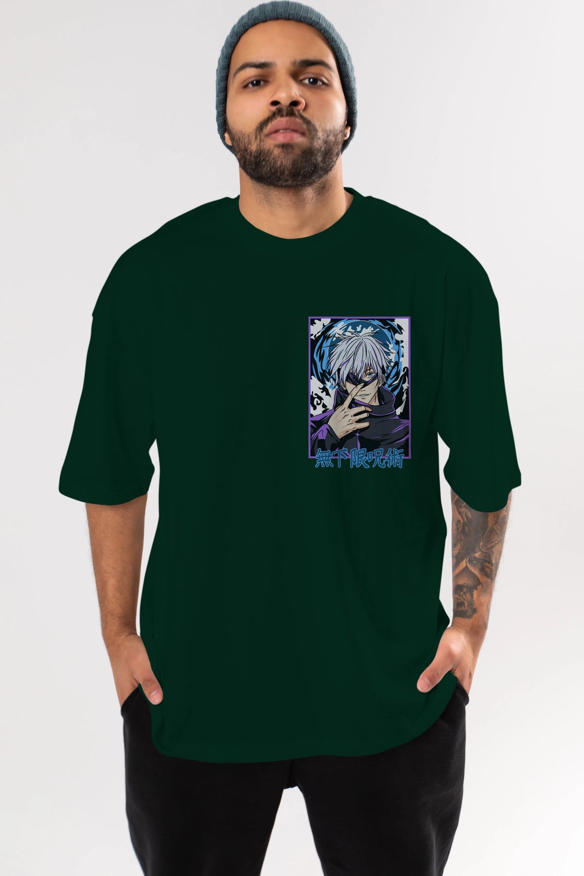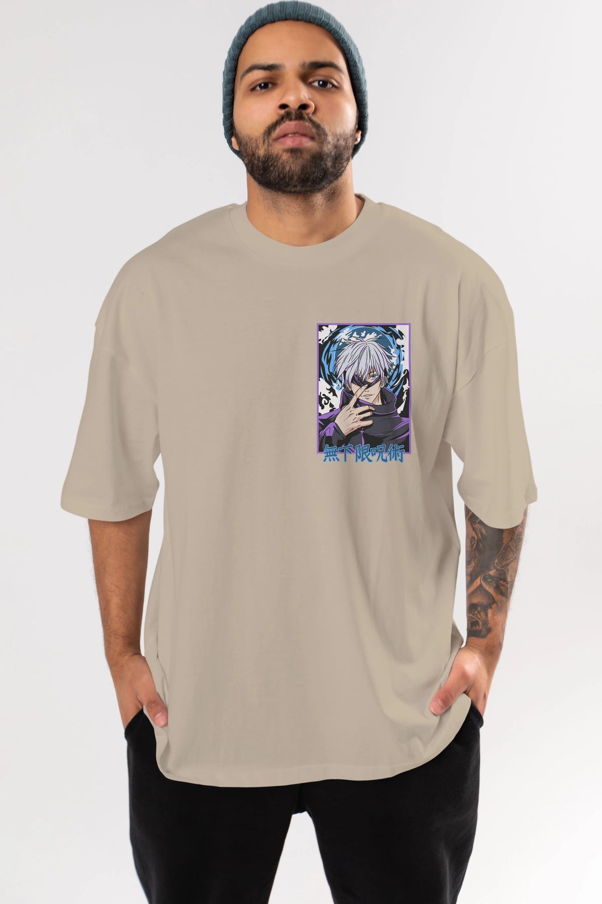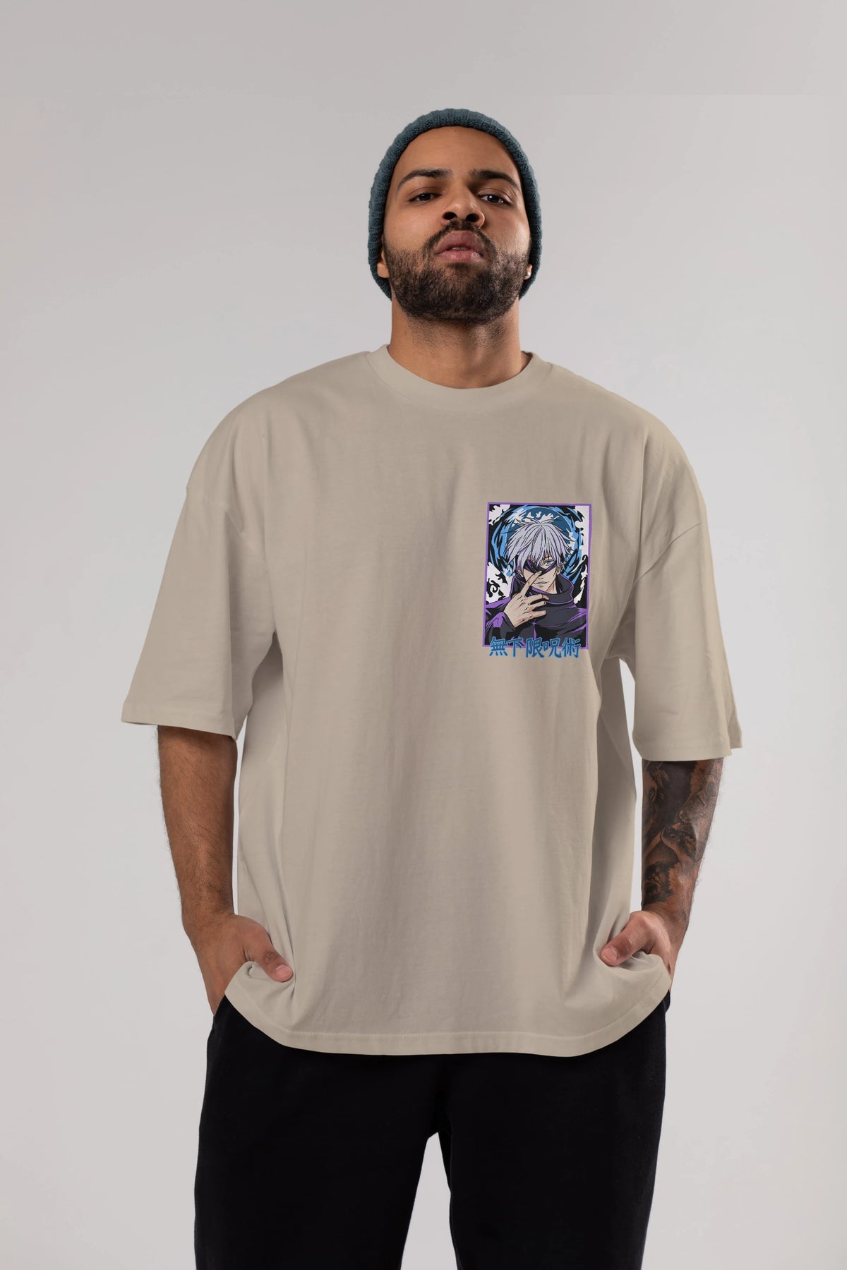 SATORU GOJO 3 Ön Sol Baskılı Oversize t-shirt Erkek Kadın Unisex %100 Pamuk Bisiklet Yaka tişort