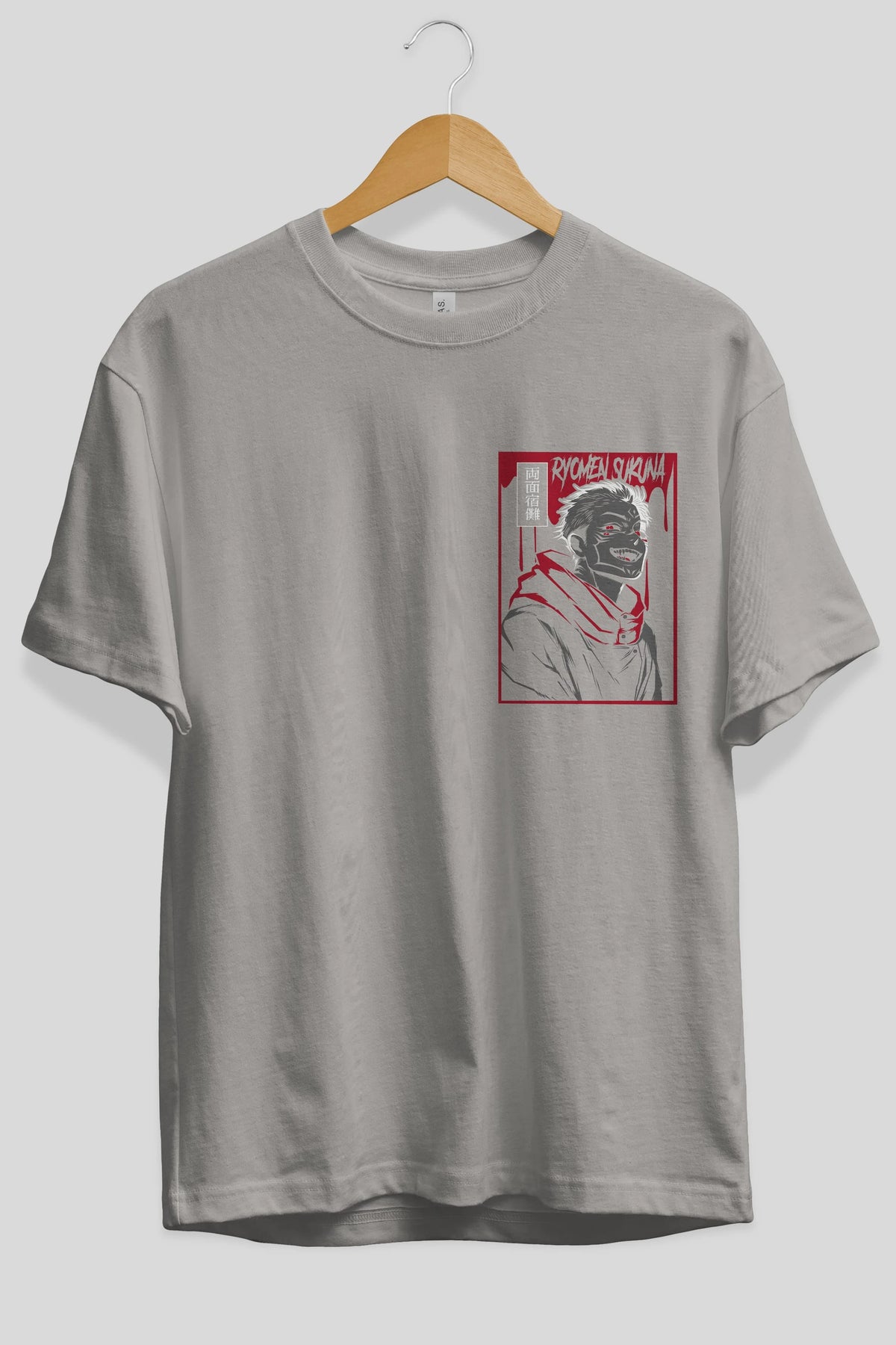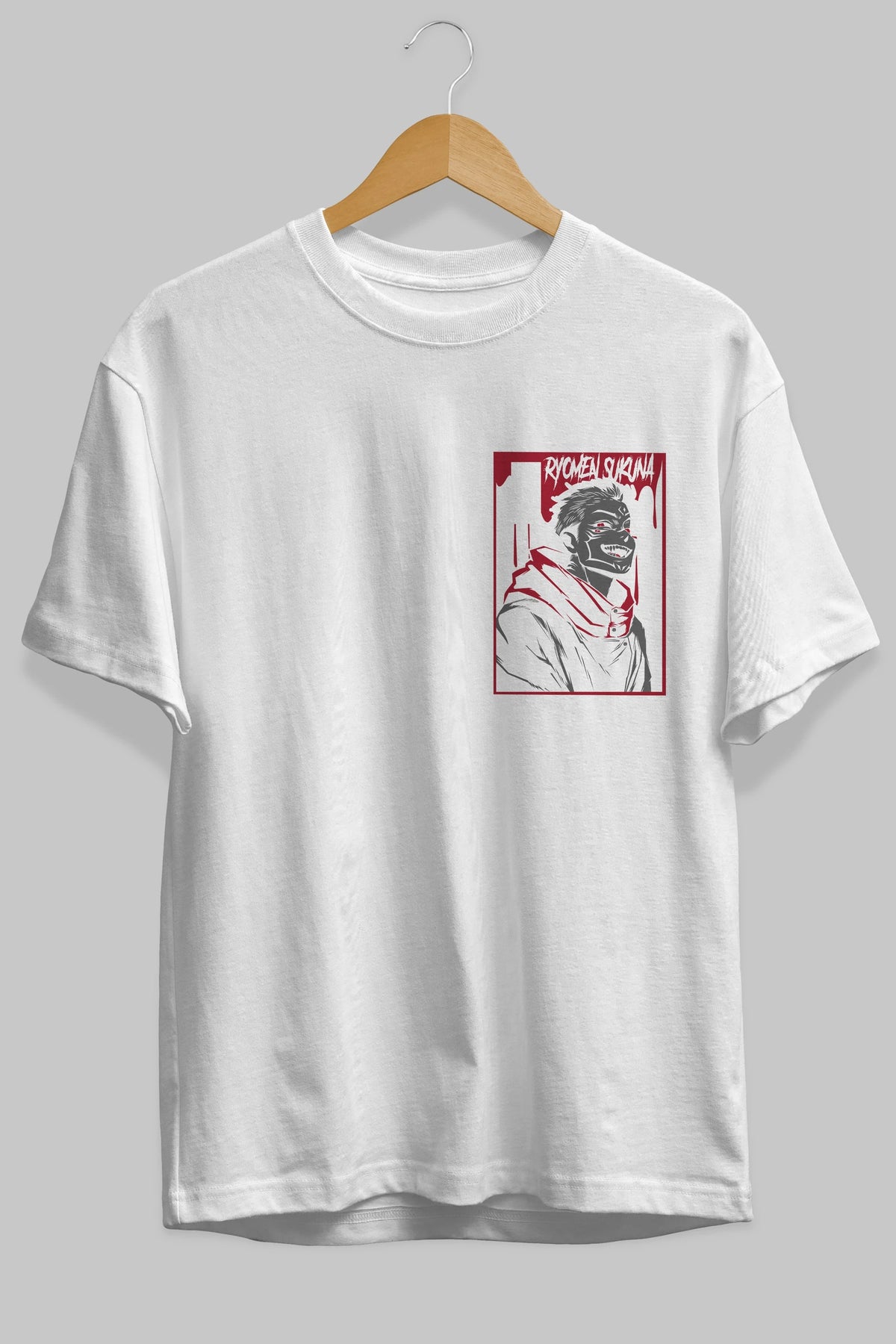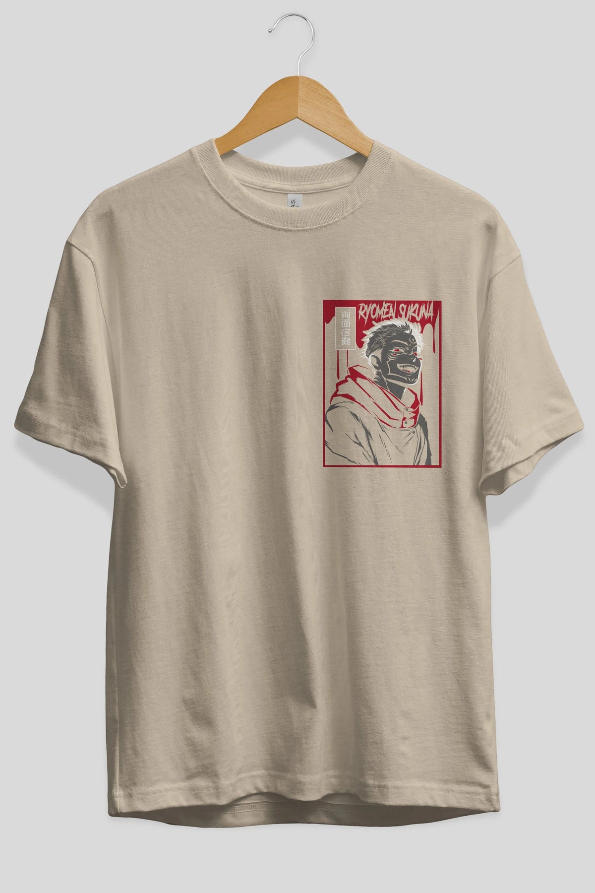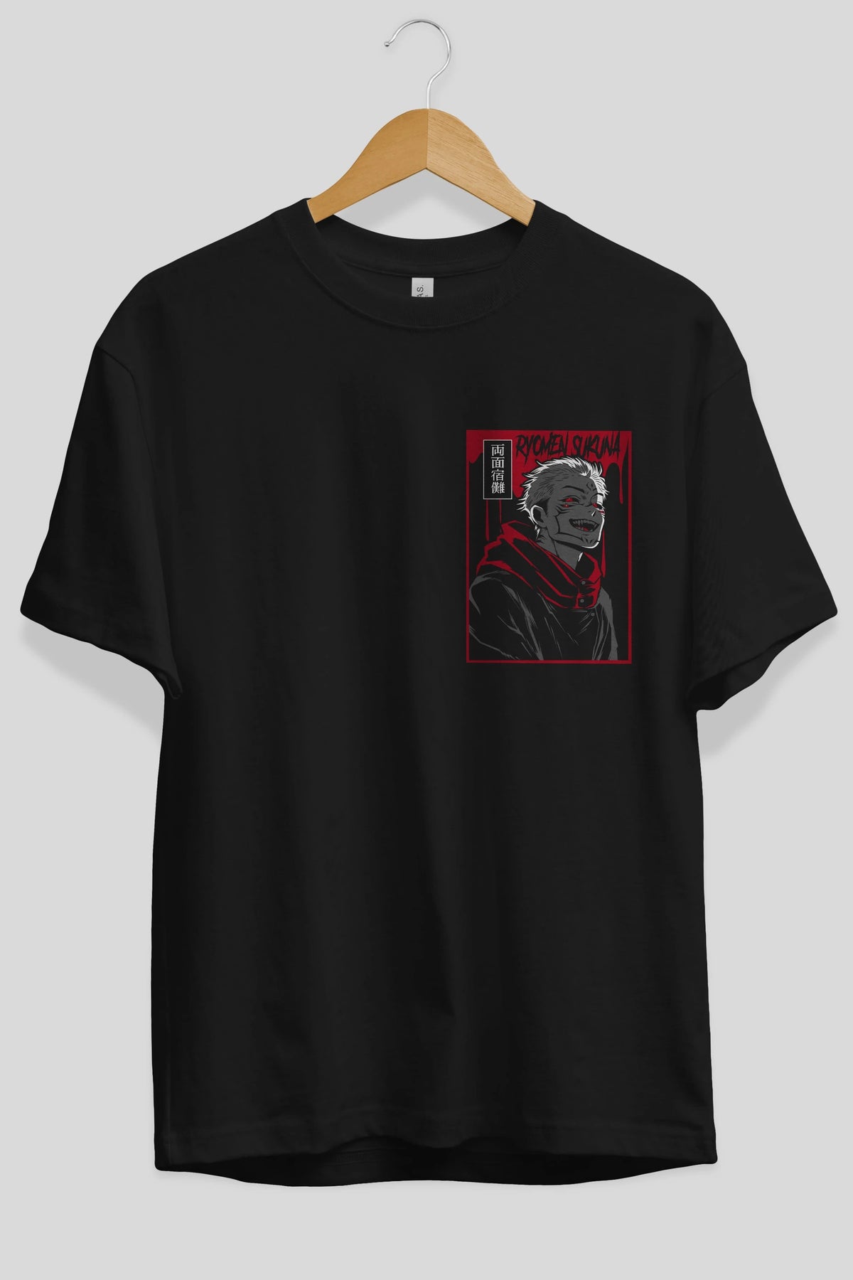 SUKUNA Ön Sol Baskılı Oversize t-shirt Erkek Kadın Unisex %100 Pamuk Bisiklet Yaka tişort