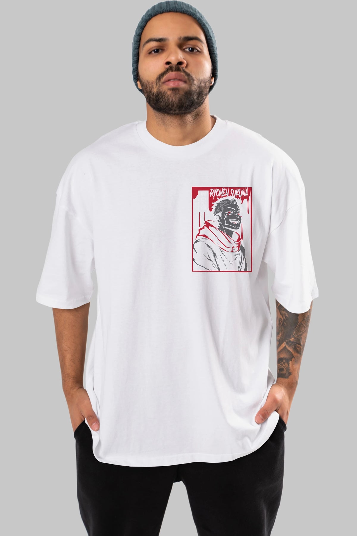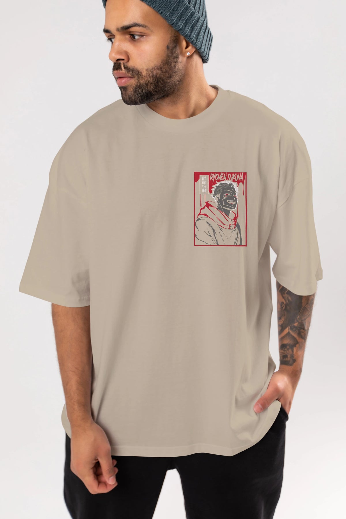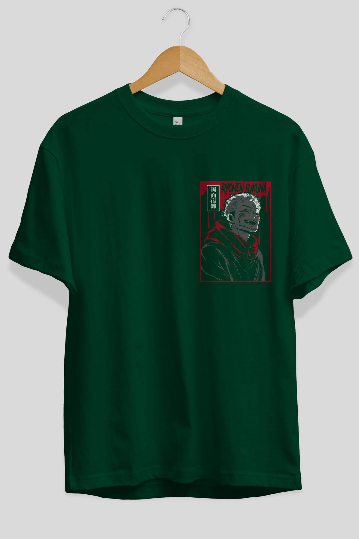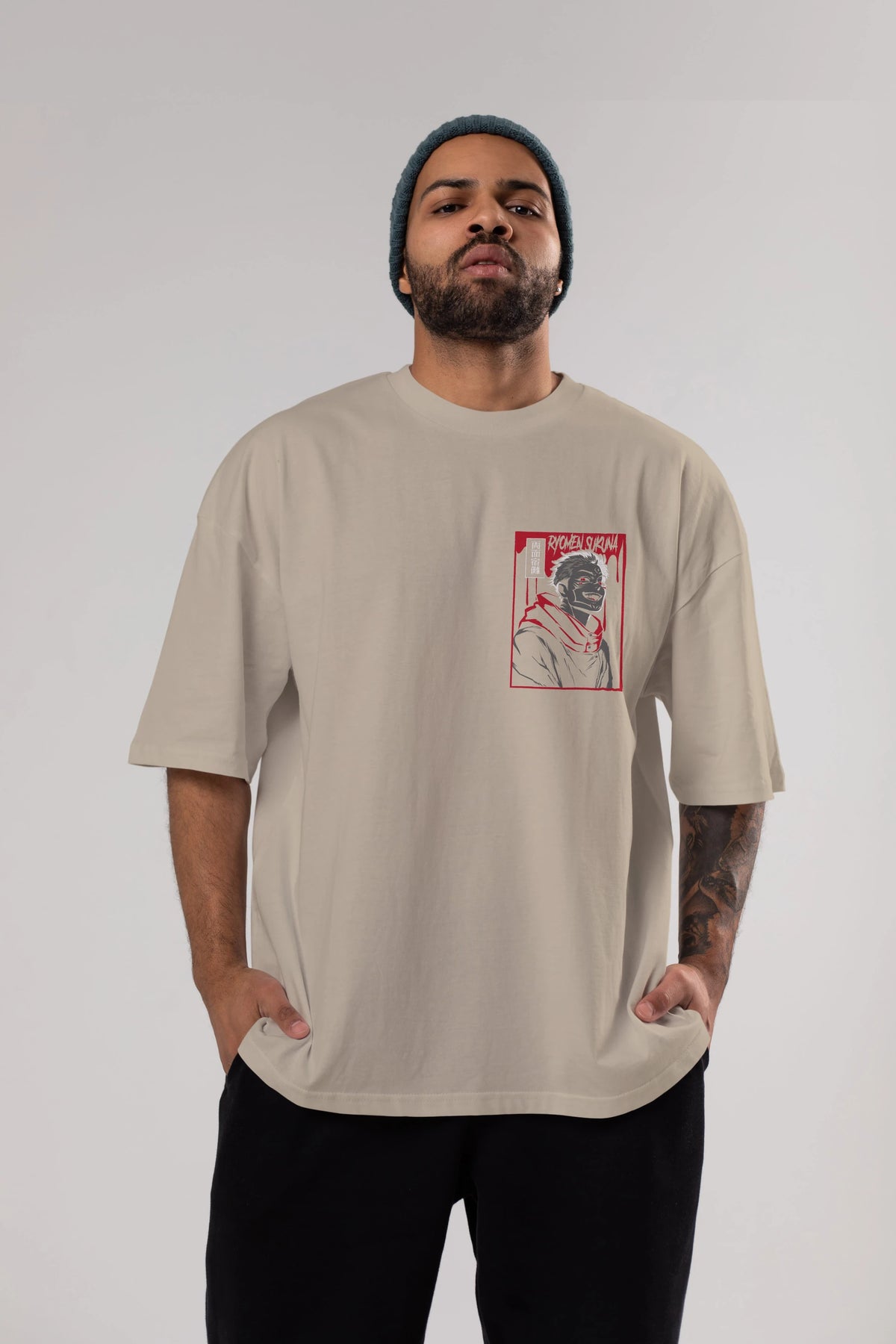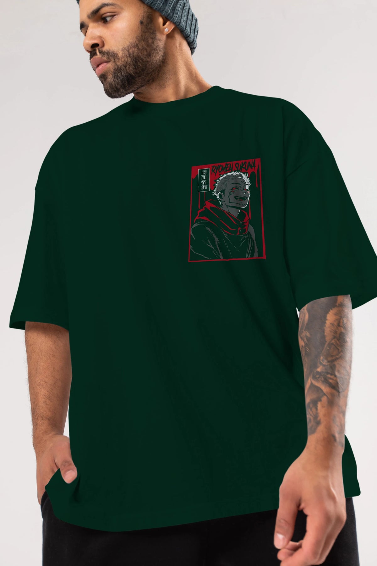 SUKUNA Ön Sol Baskılı Oversize t-shirt Erkek Kadın Unisex %100 Pamuk Bisiklet Yaka tişort