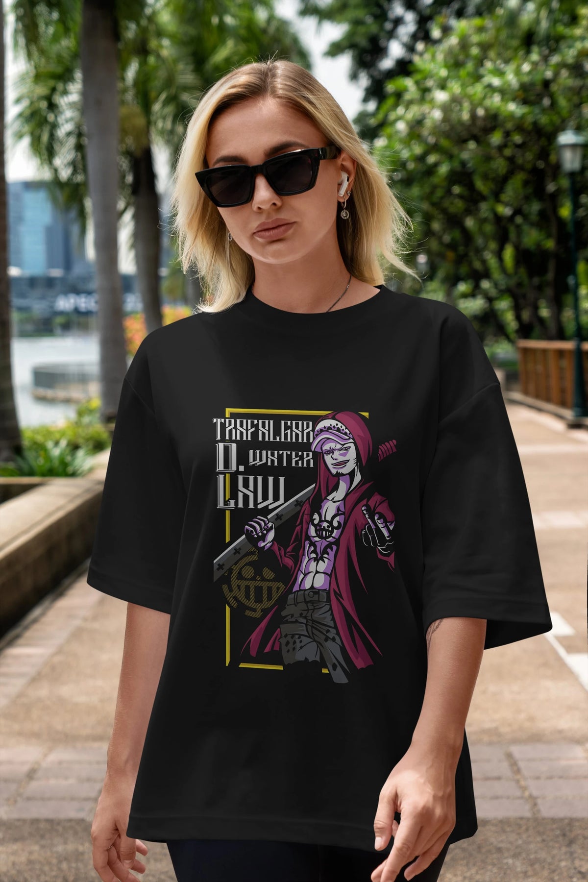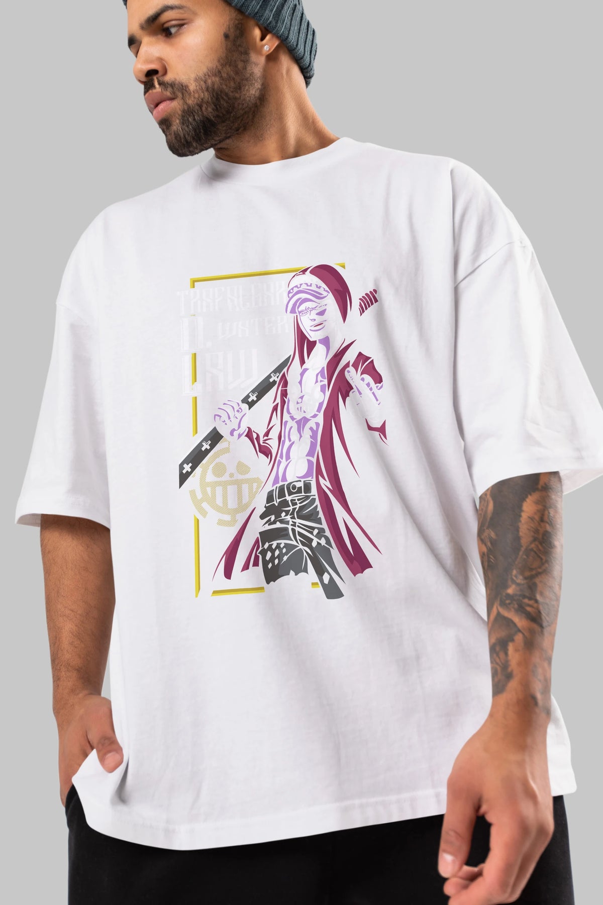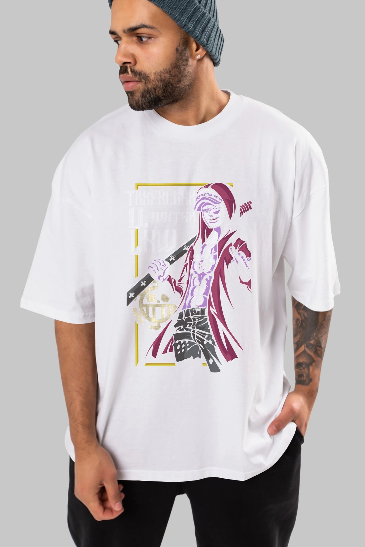 Trafalgar D. Water Law Anime Ön Baskılı Oversize t-shirt Erkek Kadın Unisex
