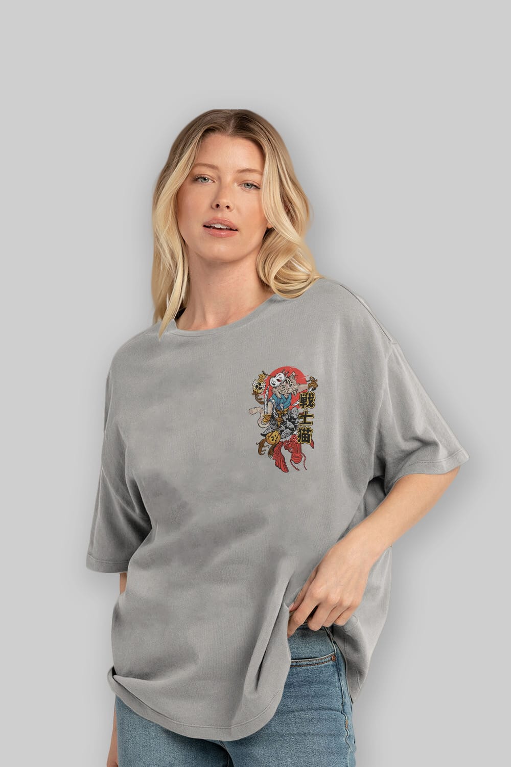 Hem erkekler hem de kadınlar için uygun, taze, modern bir baskıya sahip baskılı oversize t-shirt.