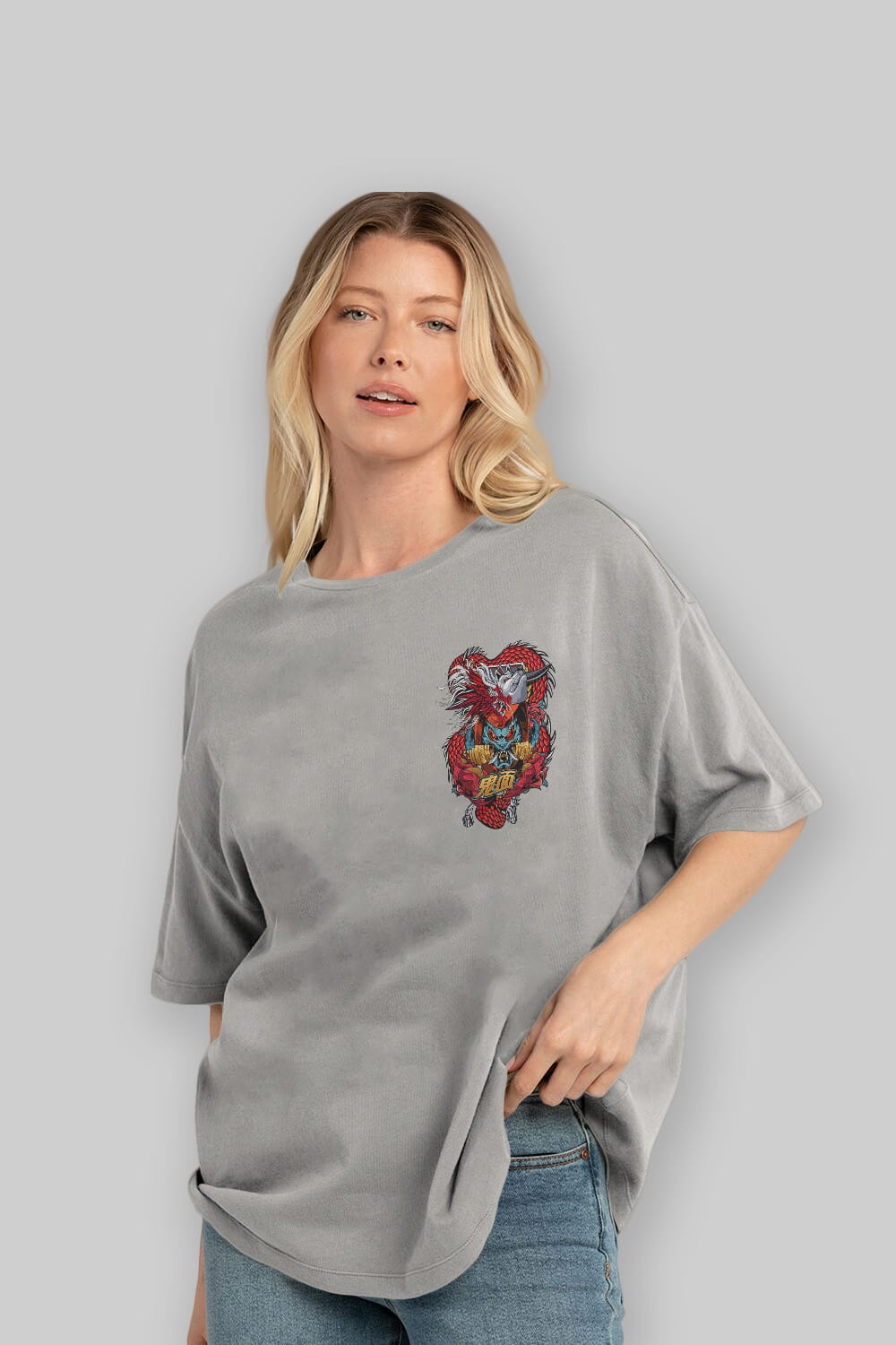 Hem erkekler hem de kadınlar için uygun, taze, modern bir baskıya sahip baskılı oversize t-shirt.