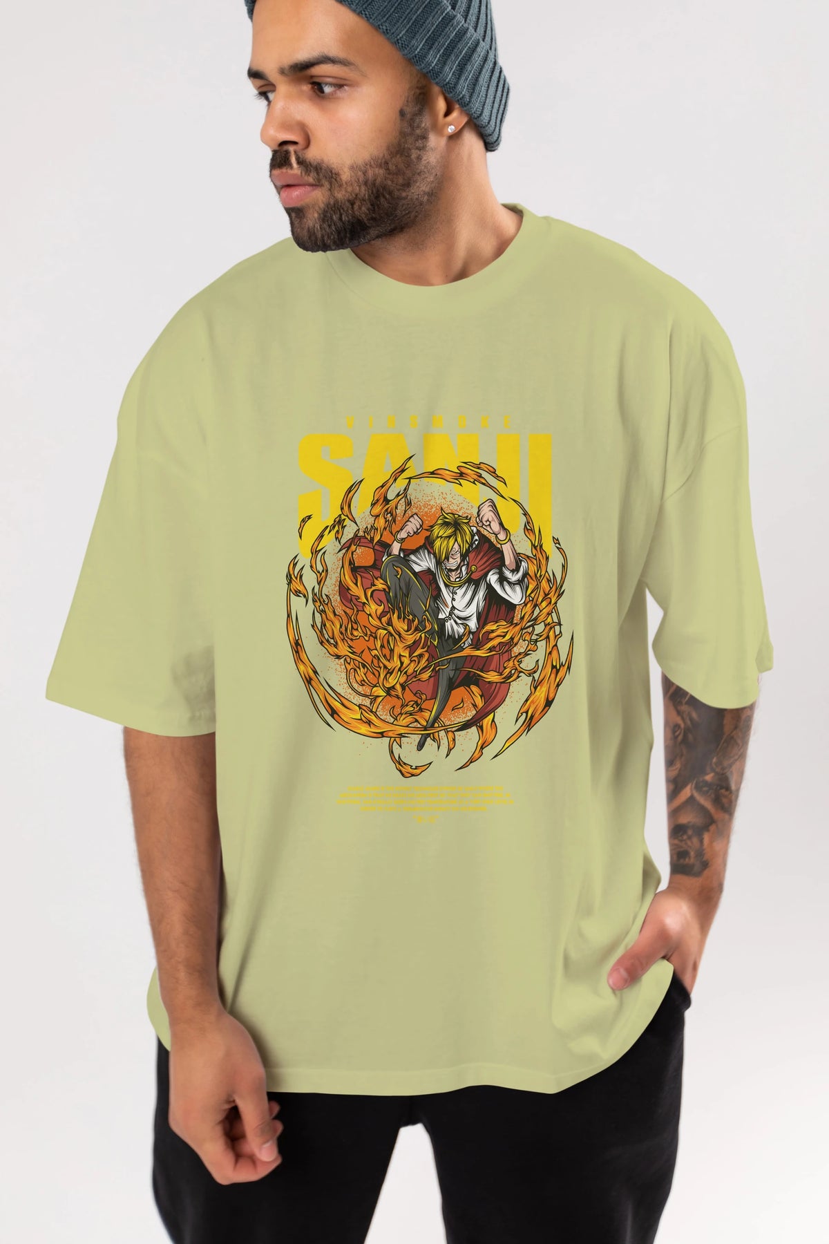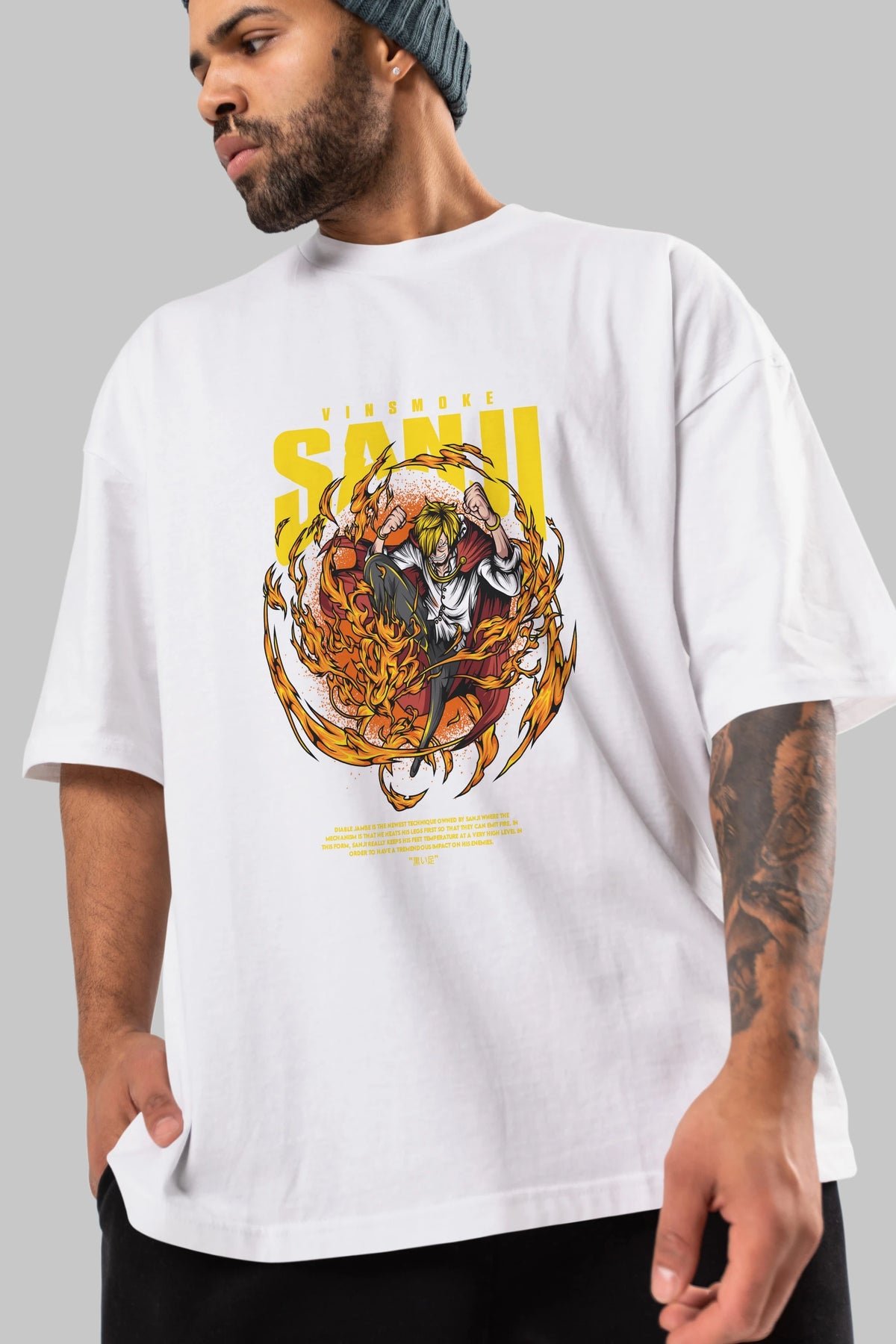 Vinsmoke Sanji Anime Ön Baskılı Oversize t-shirt %100 pamuk Erkek Kadın Unisex
