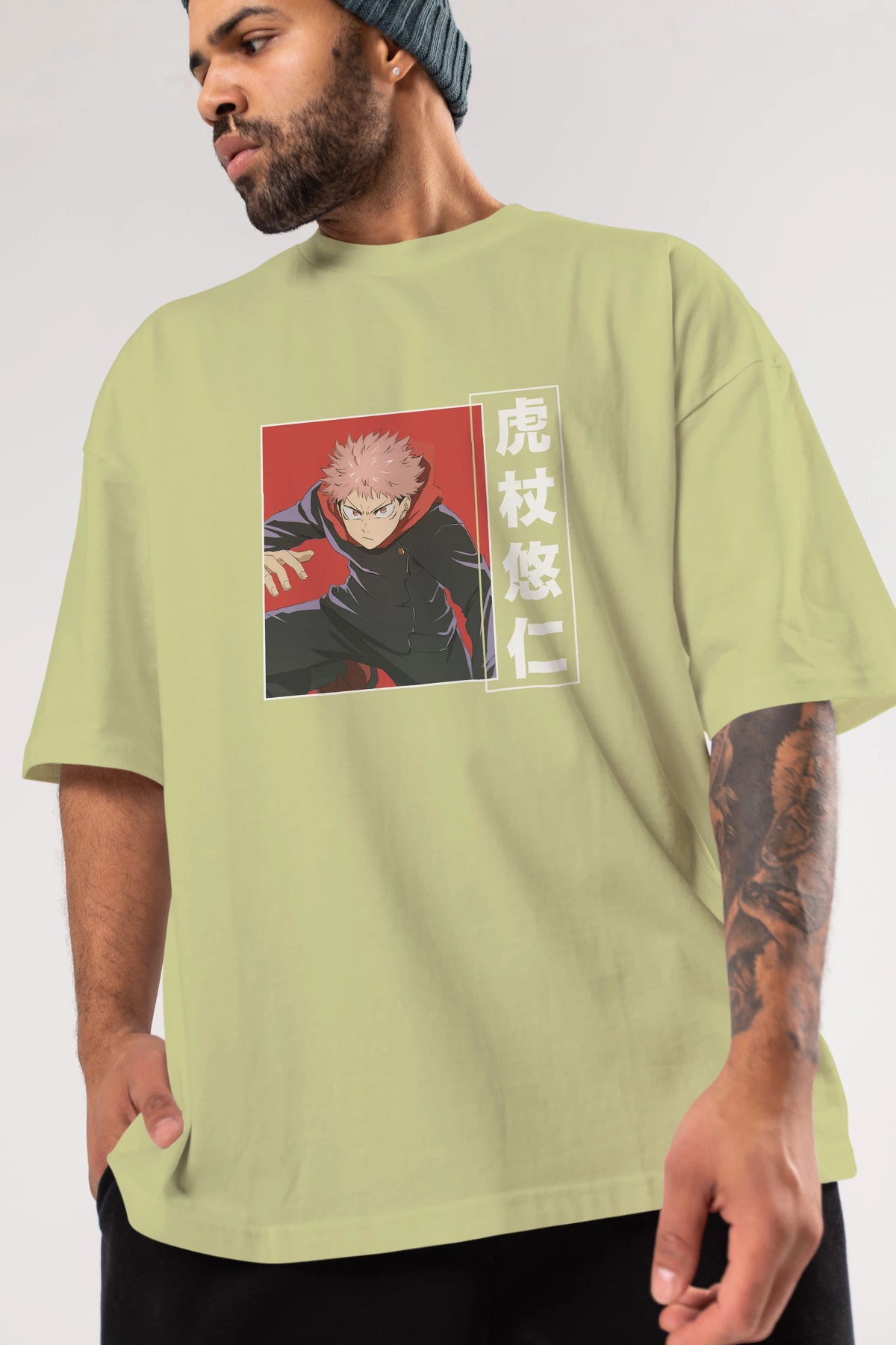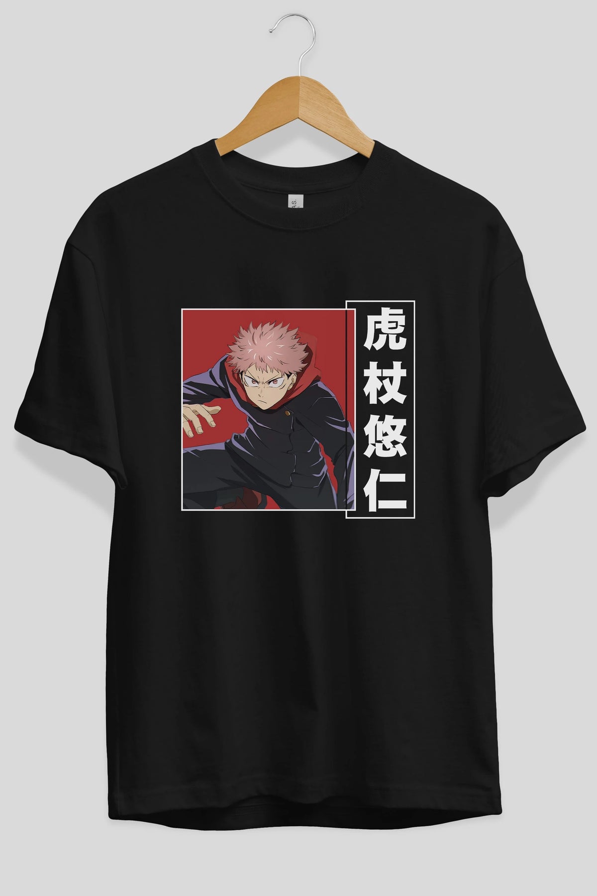 Yuuji Itadori 2 Anime Ön Baskılı Oversize t-shirt %100 pamuk Erkek Kadın Unisex