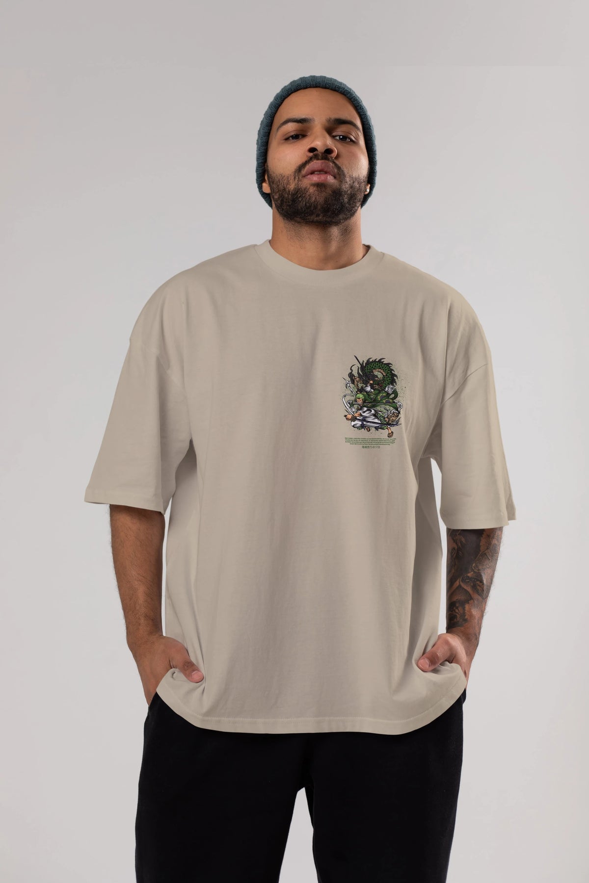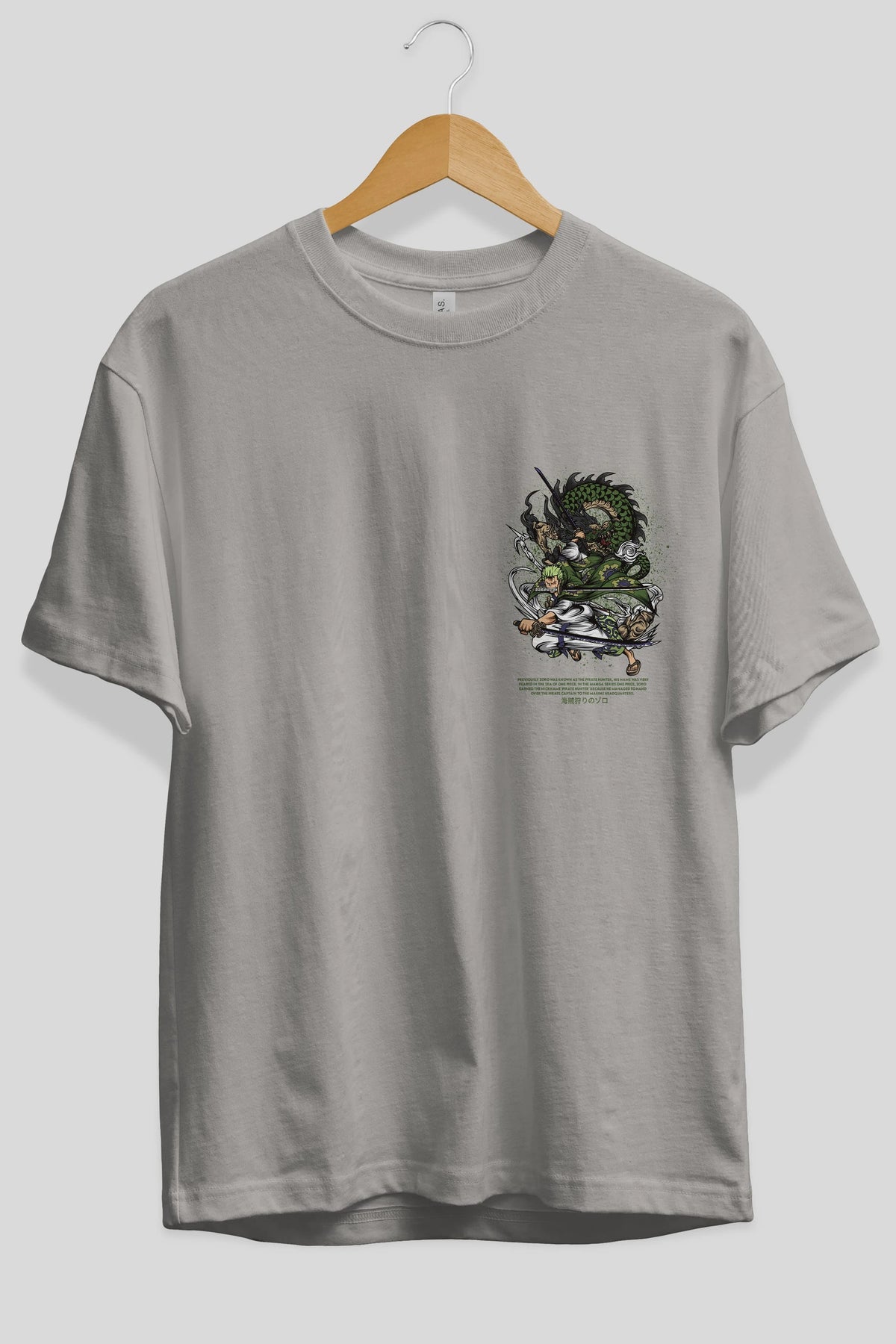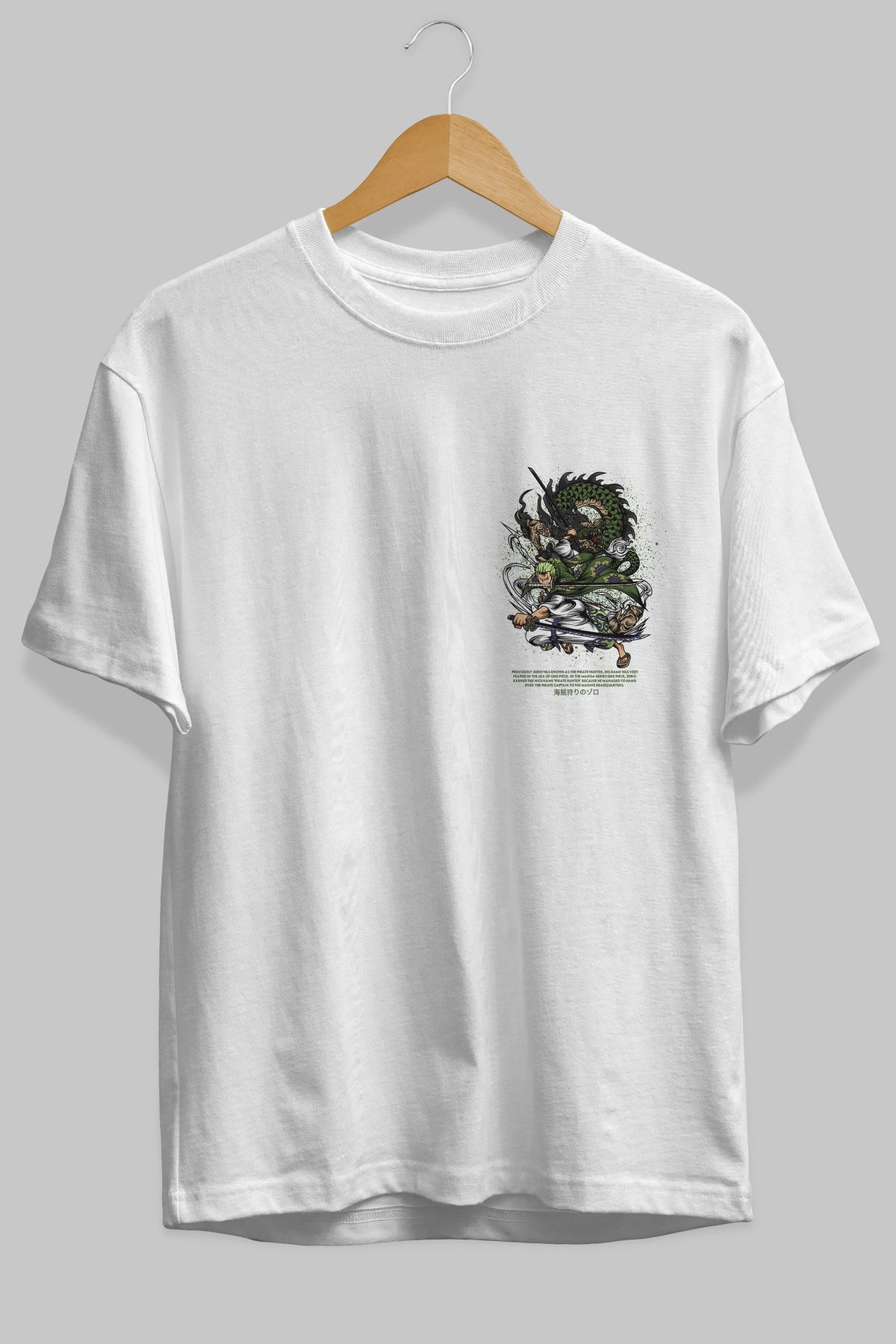Zoro-ONE PIECE Ön Sol Baskılı Oversize t-shirt Erkek Kadın Unisex %100 Pamuk Bisiklet Yaka tişort